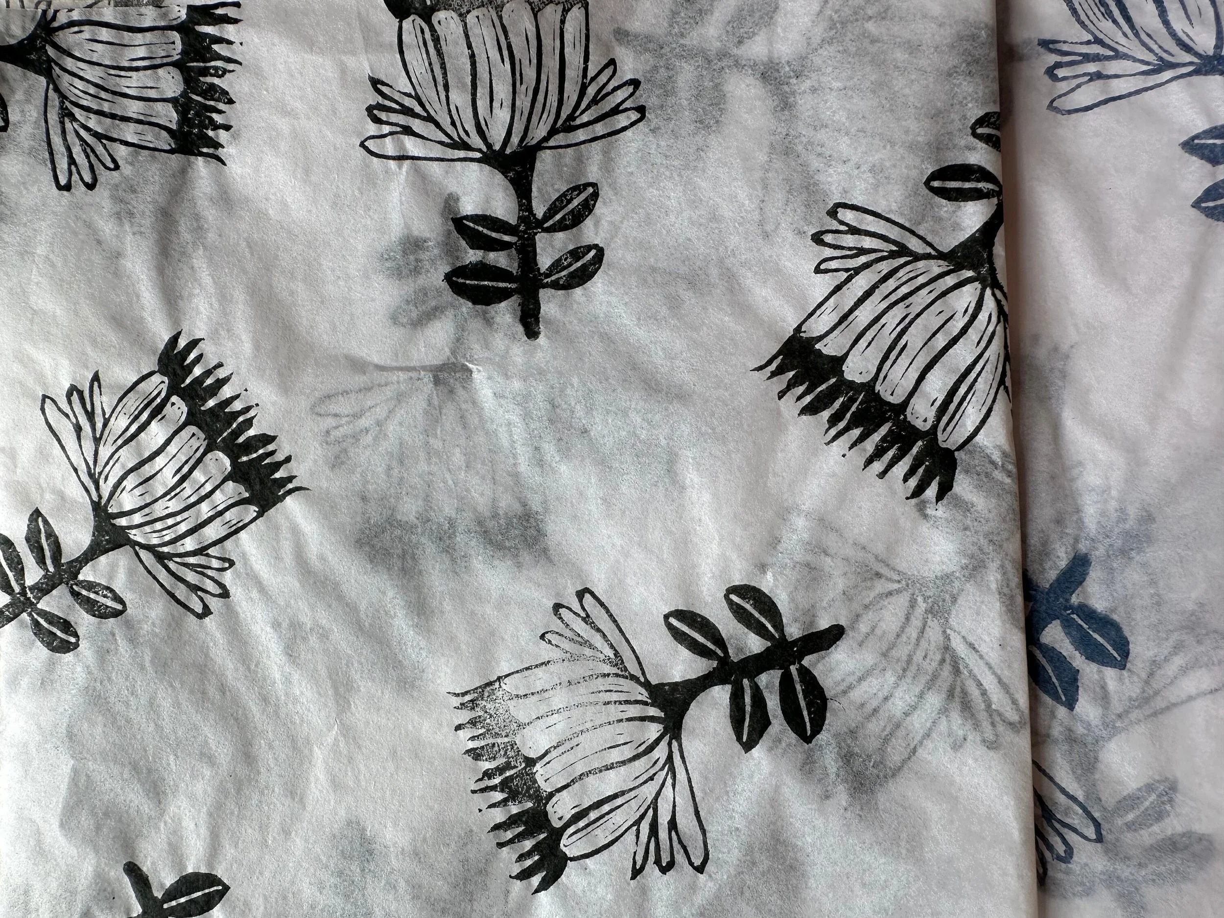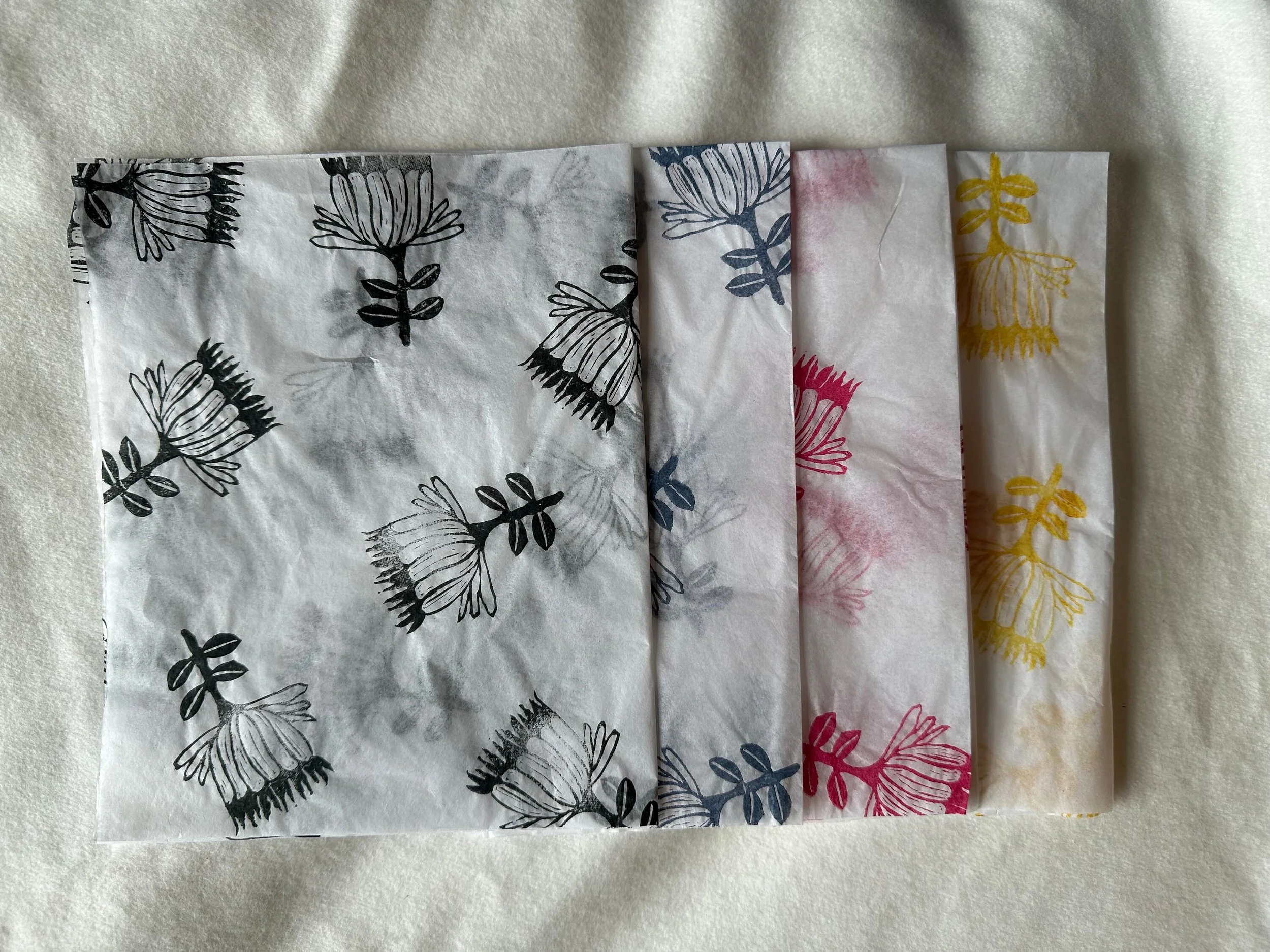3 x abstract flower Handprinted Eco Tissue paper, tissue paper, gift wrap, packaging, pretty packaging.