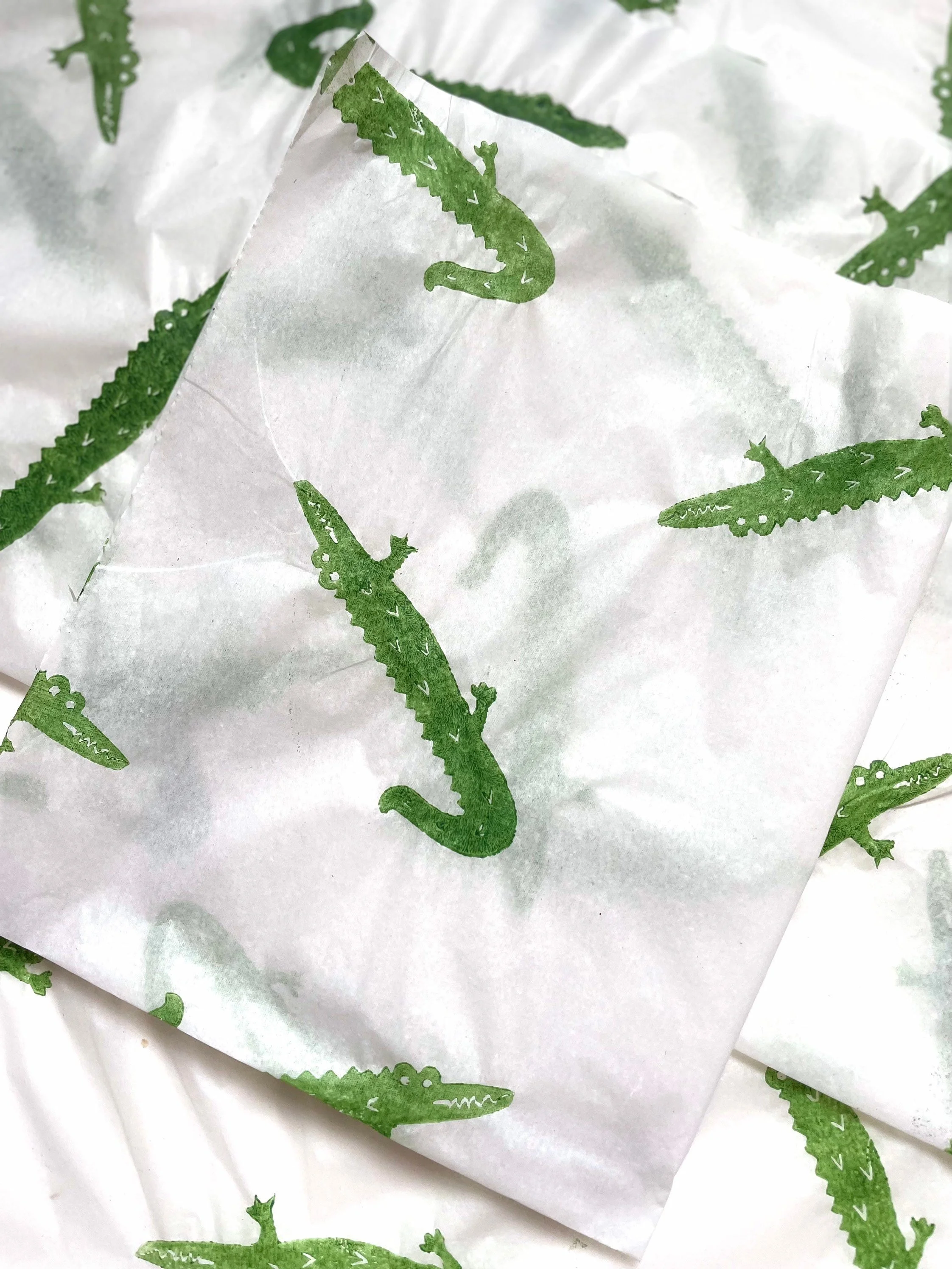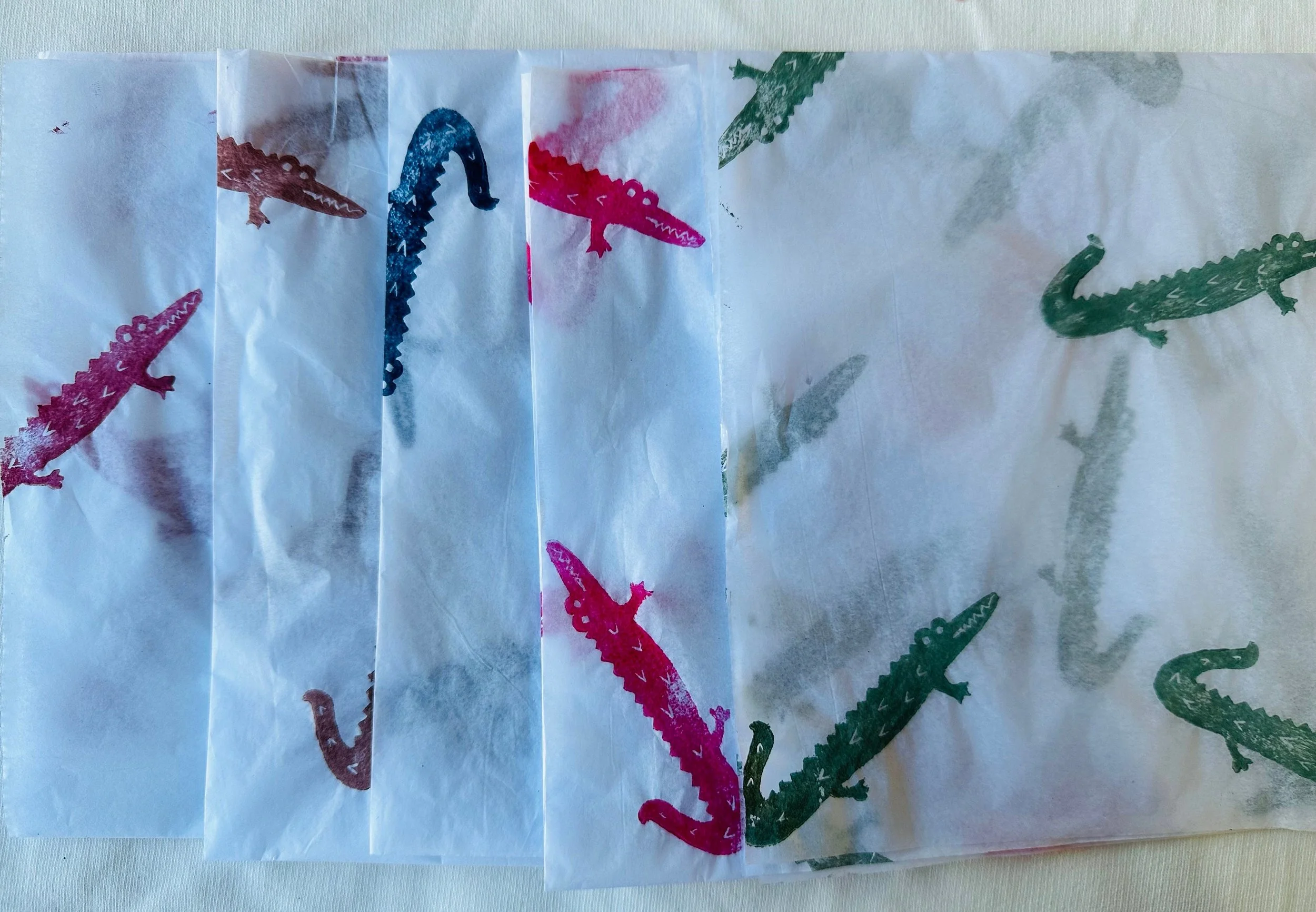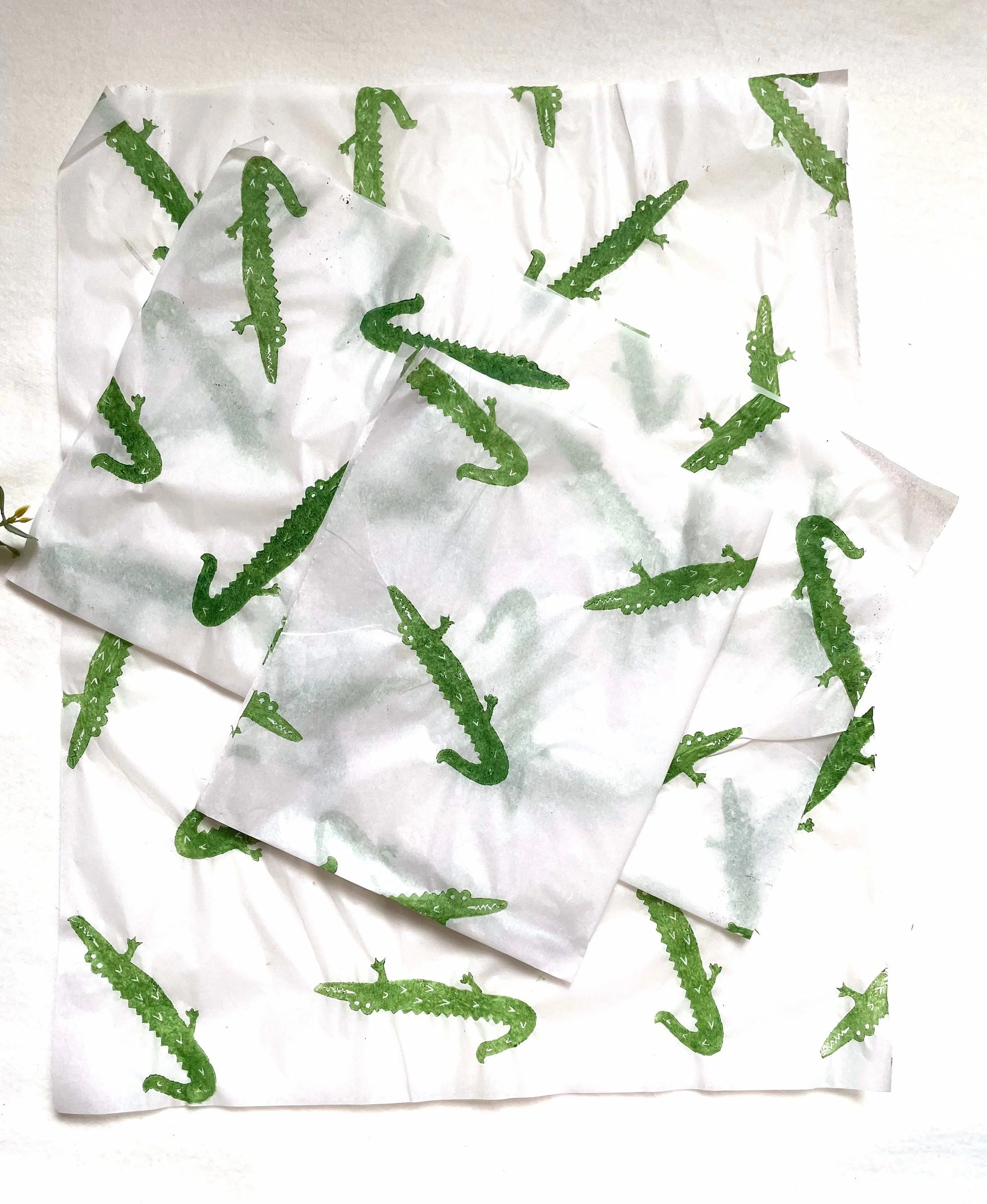 3 x Alligator Handprinted Eco Tissue paper, tissue paper, gift wrap, packaging, pretty packaging.