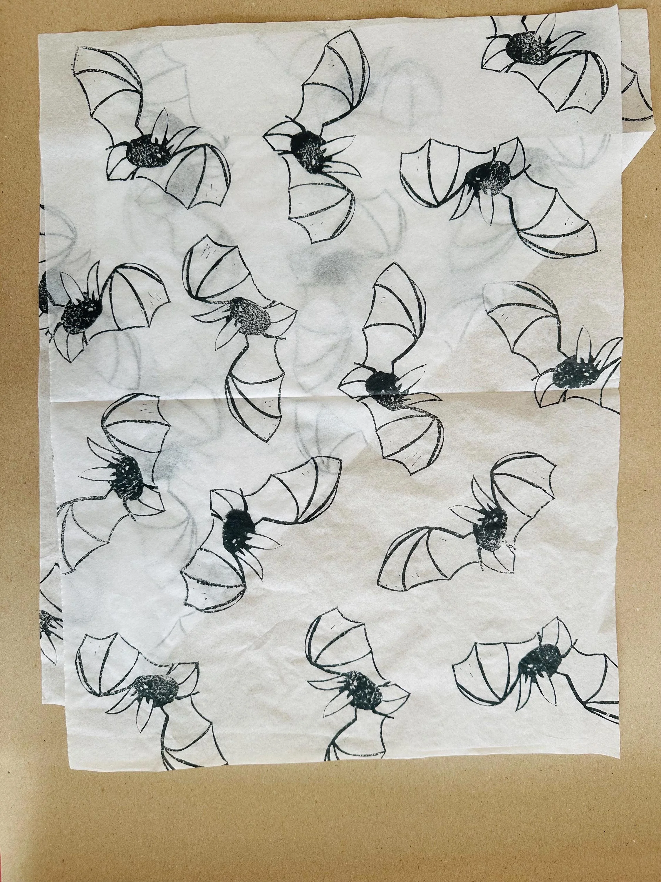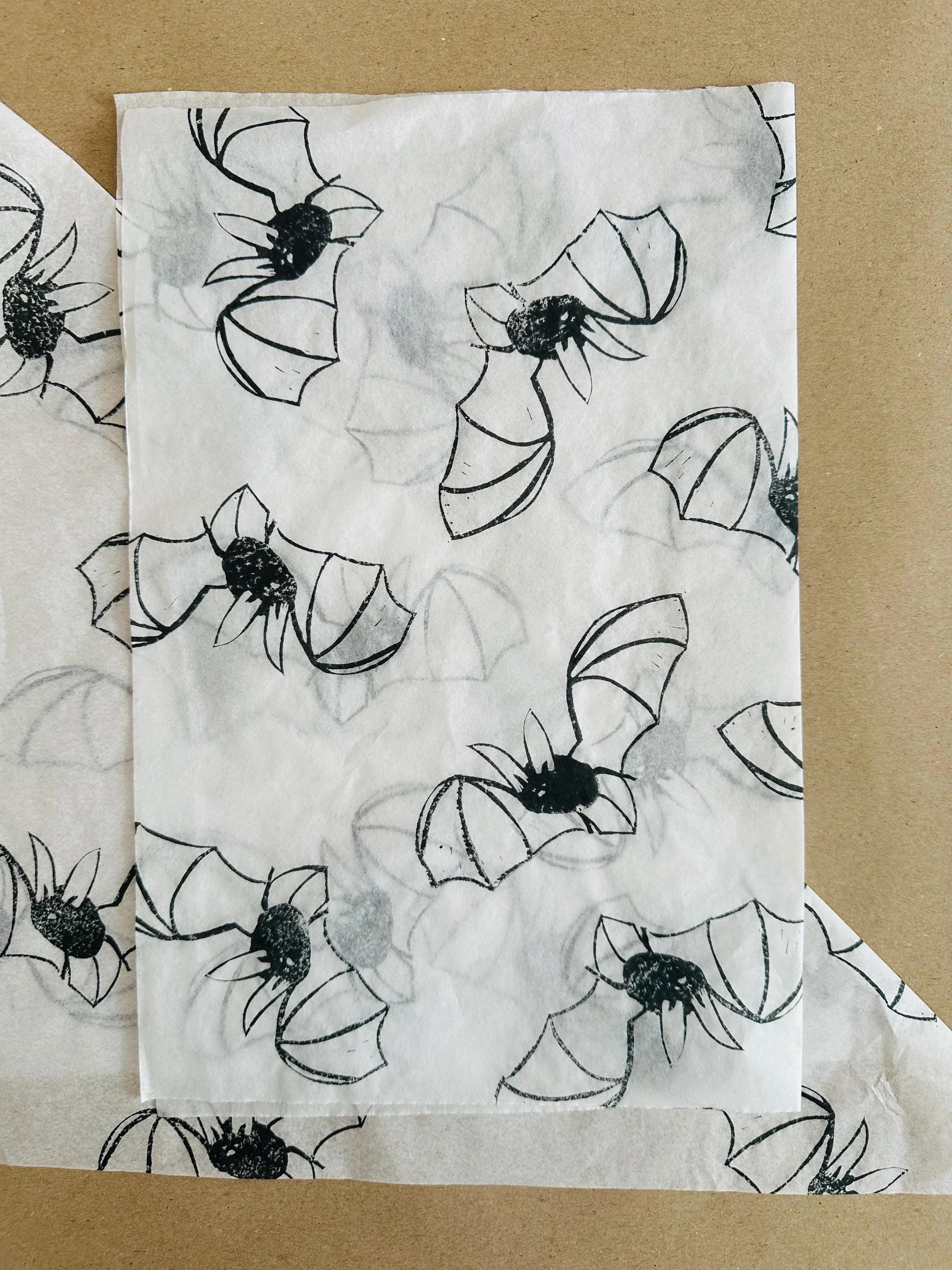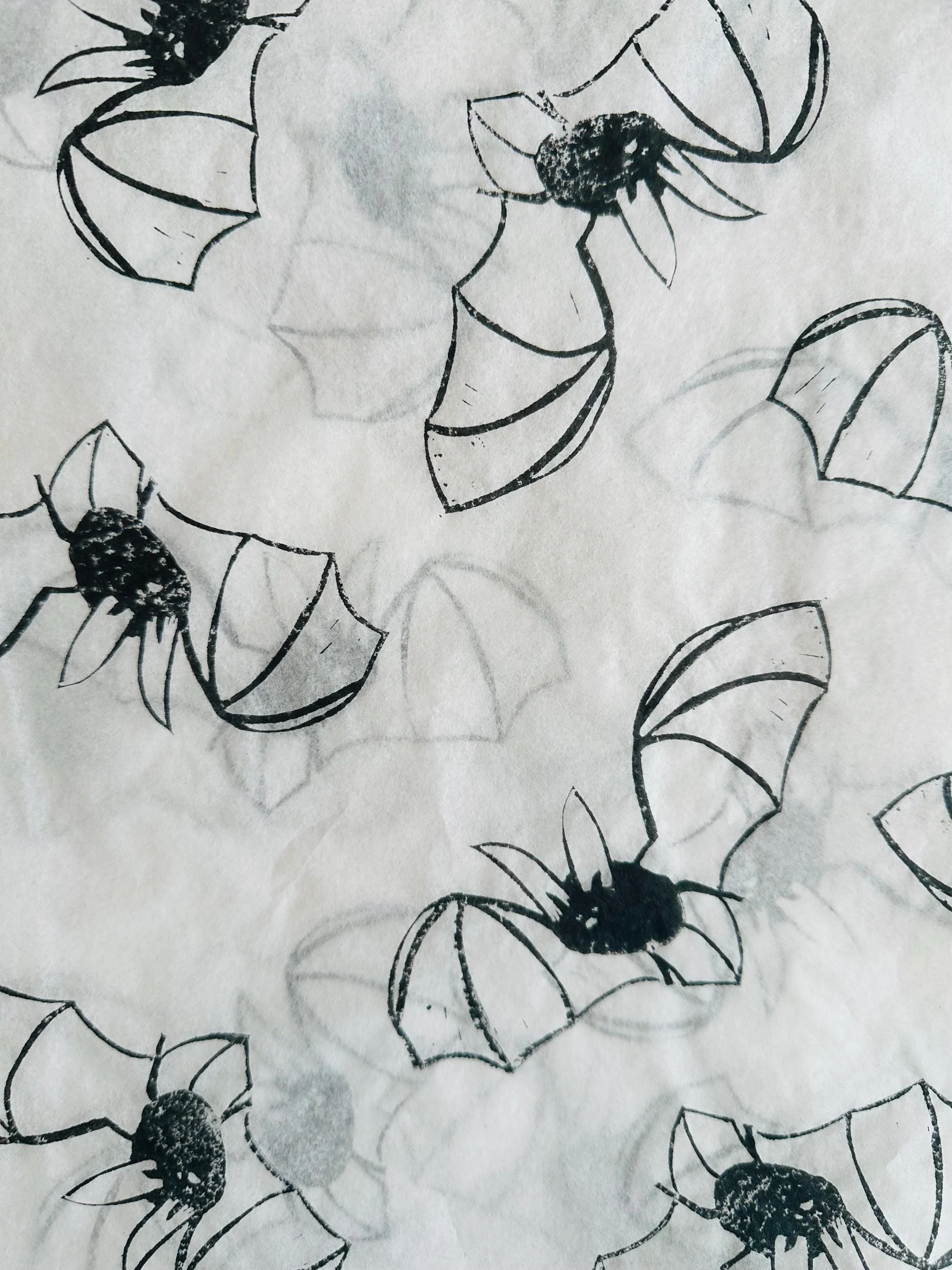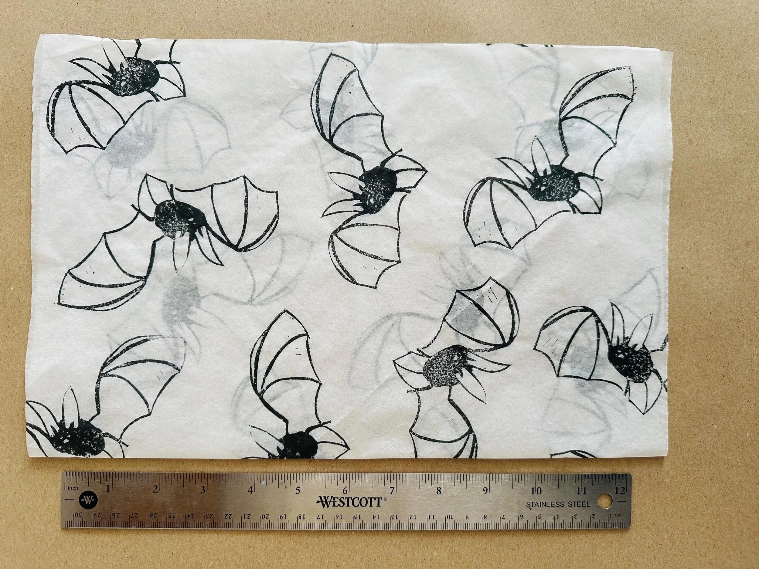 3 x Bat Handprinted Eco Tissue paper, tissue paper, gift wrap, packaging, pretty packaging.