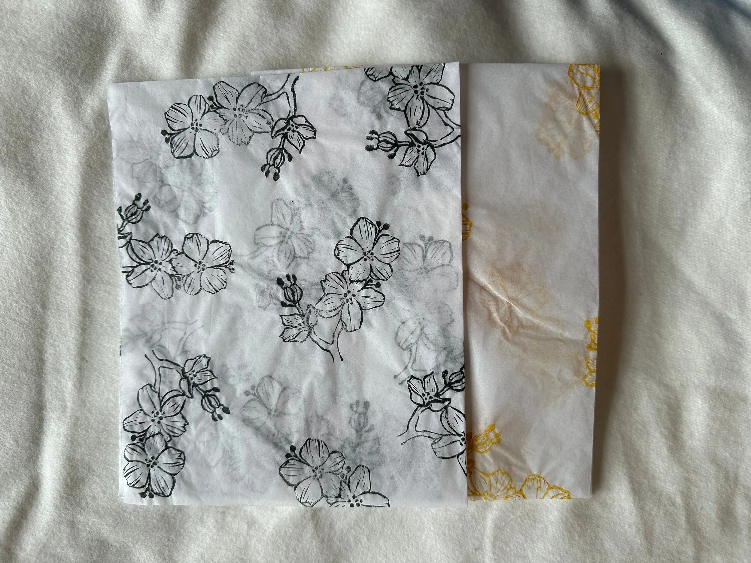 Introducing our eco-friendly tissue paper, handprinted with care and sustainability in mind. Each sheet of this exquisite tissue paper is meticulously crafted, using only the finest natural materials and eco-conscious printing methods.