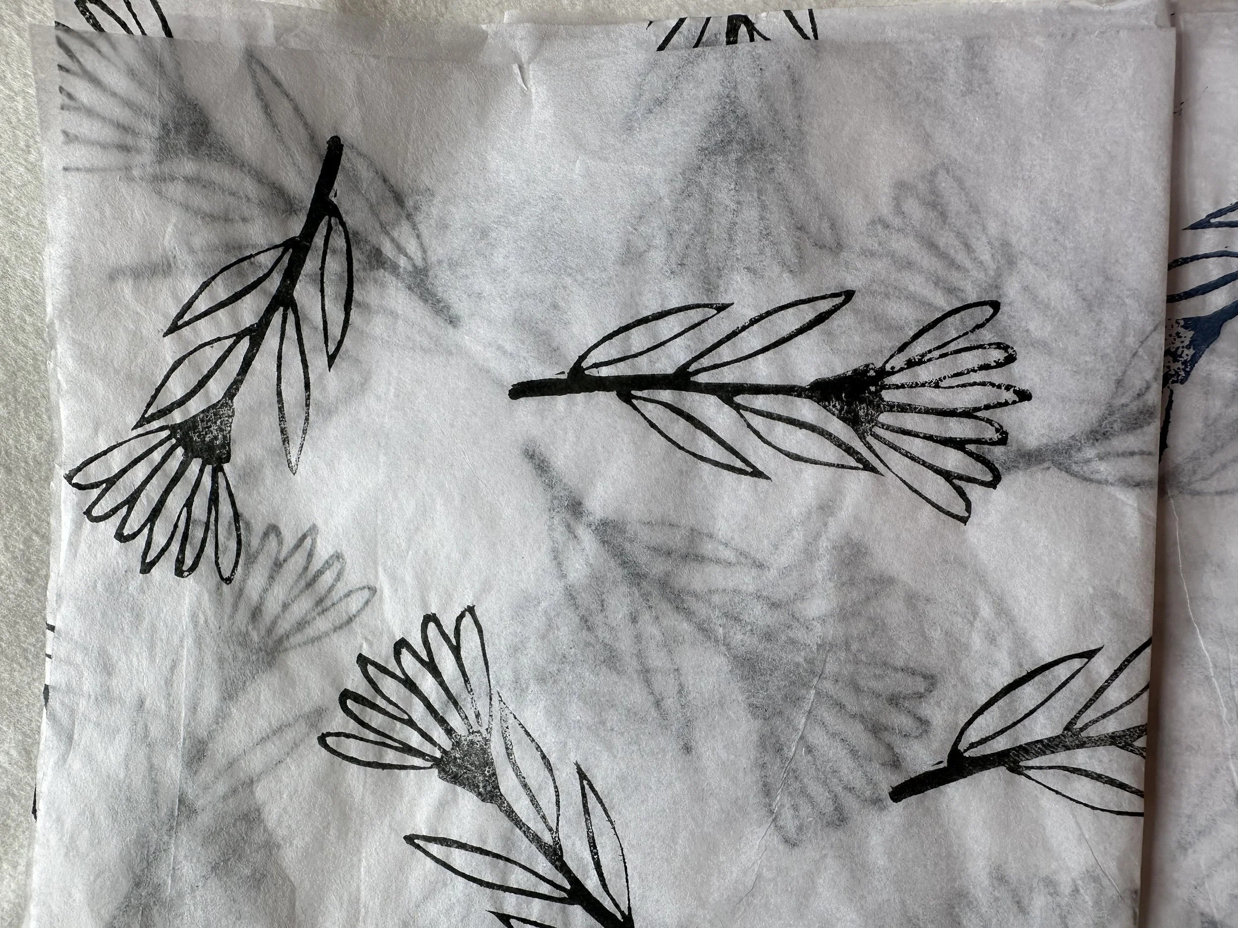 3 x corn flower Handprinted Eco Tissue paper, tissue paper, gift wrap, packaging, pretty packaging.