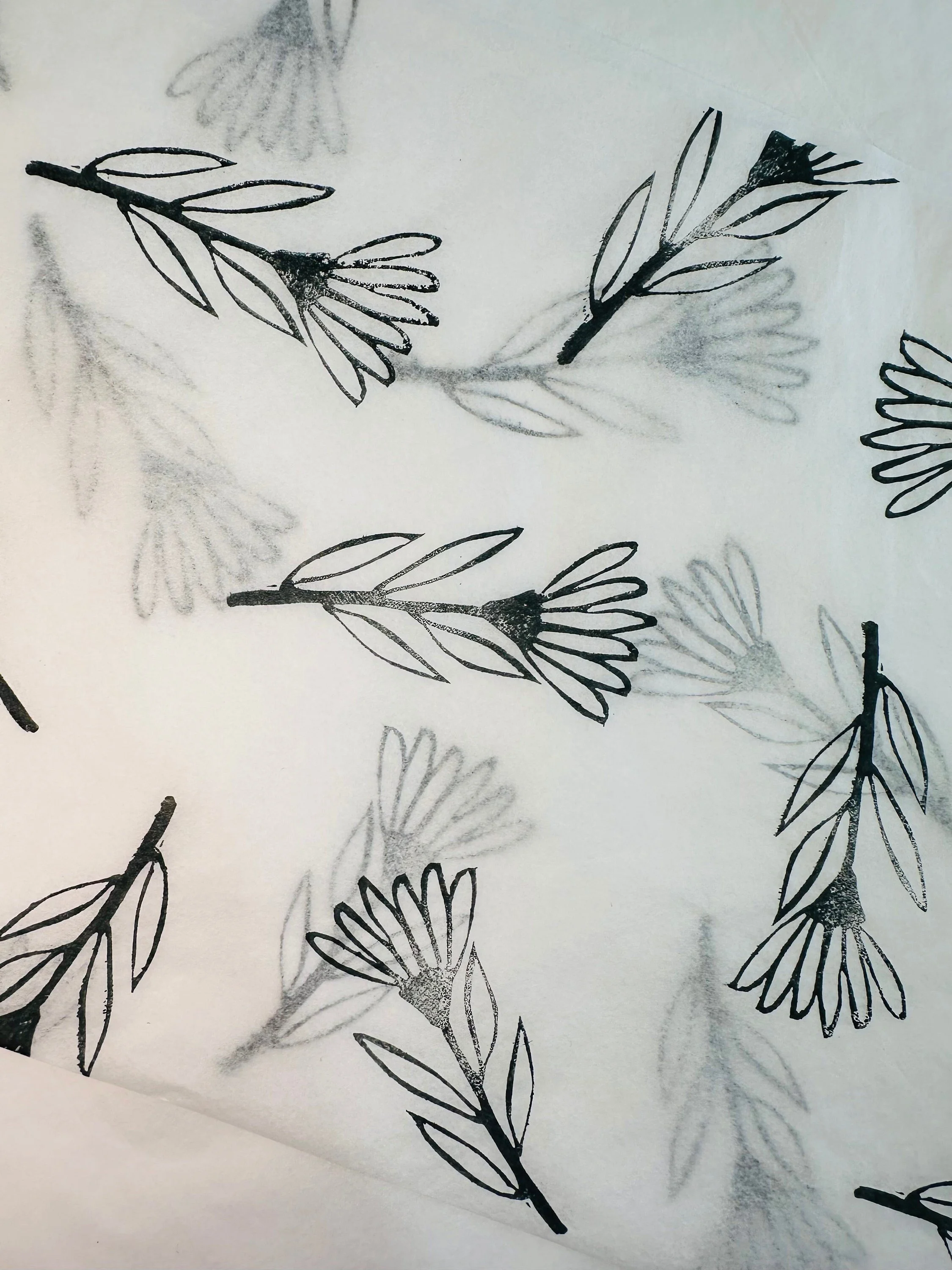Introducing our eco-friendly tissue paper, handprinted with care and sustainability in mind. Each sheet of this exquisite tissue paper is meticulously crafted, using only the finest natural materials and eco-conscious printing methods.