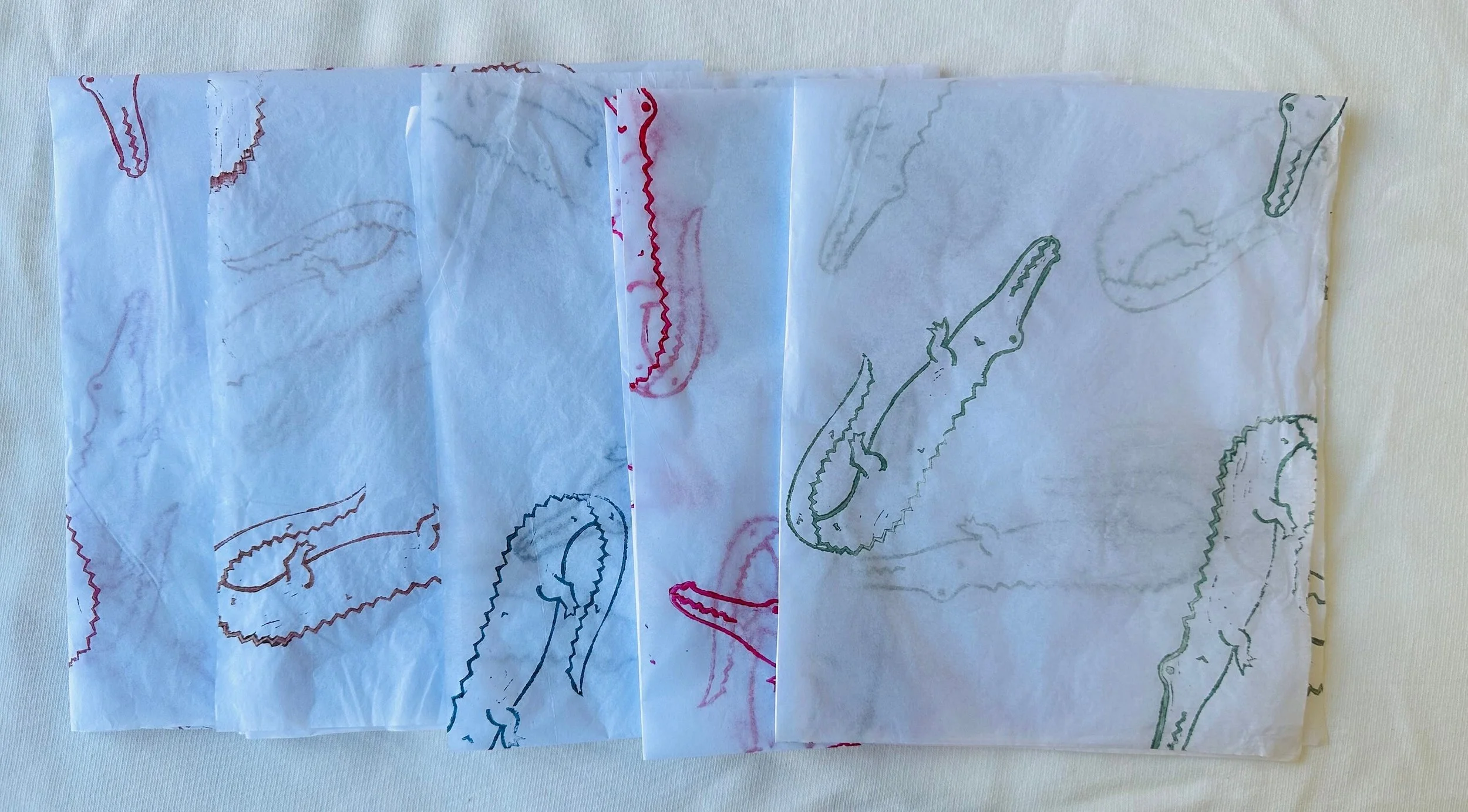 3 x Crocodile Handprinted Eco Tissue paper, tissue paper, gift wrap, packaging, pretty packaging.