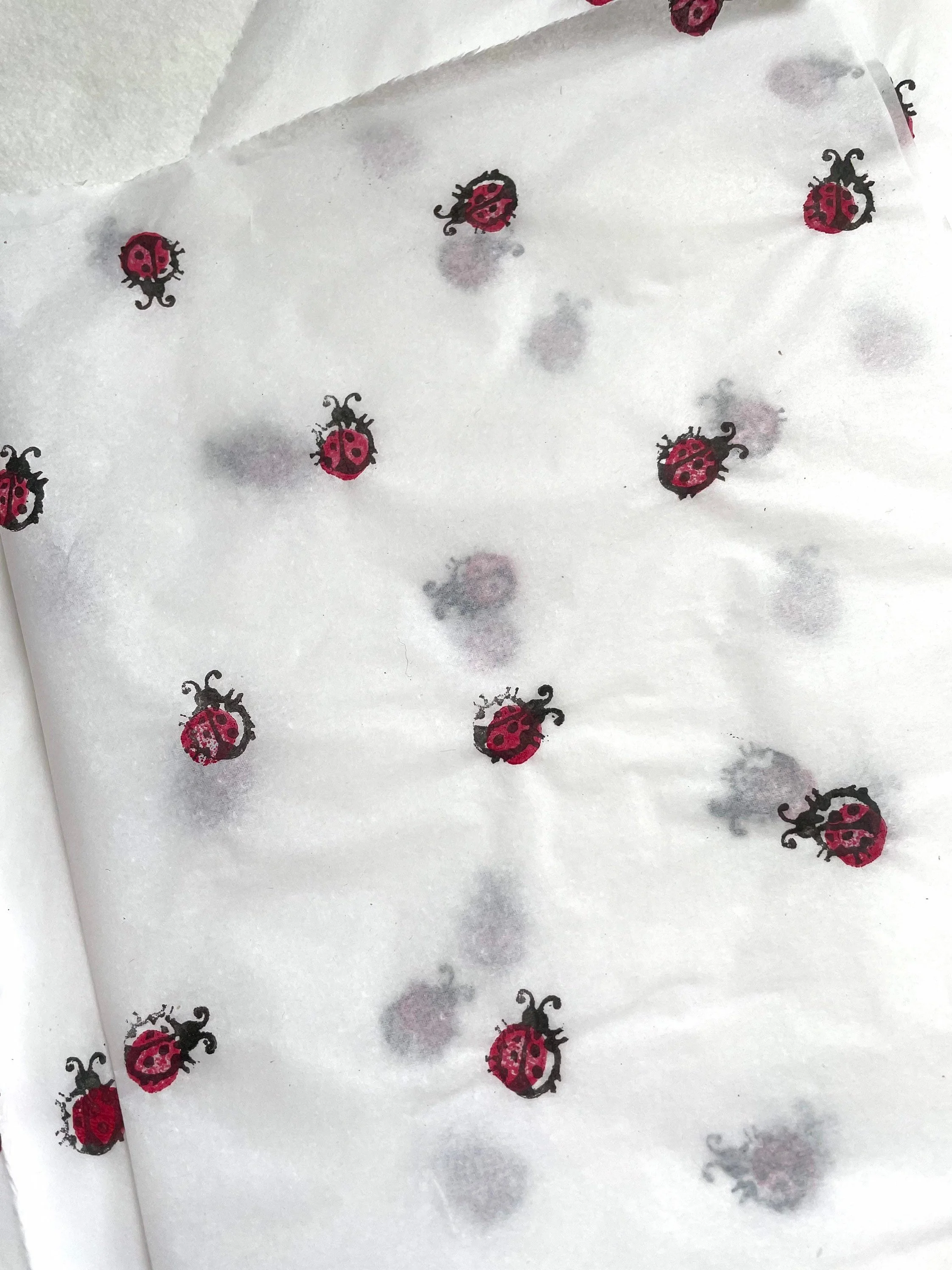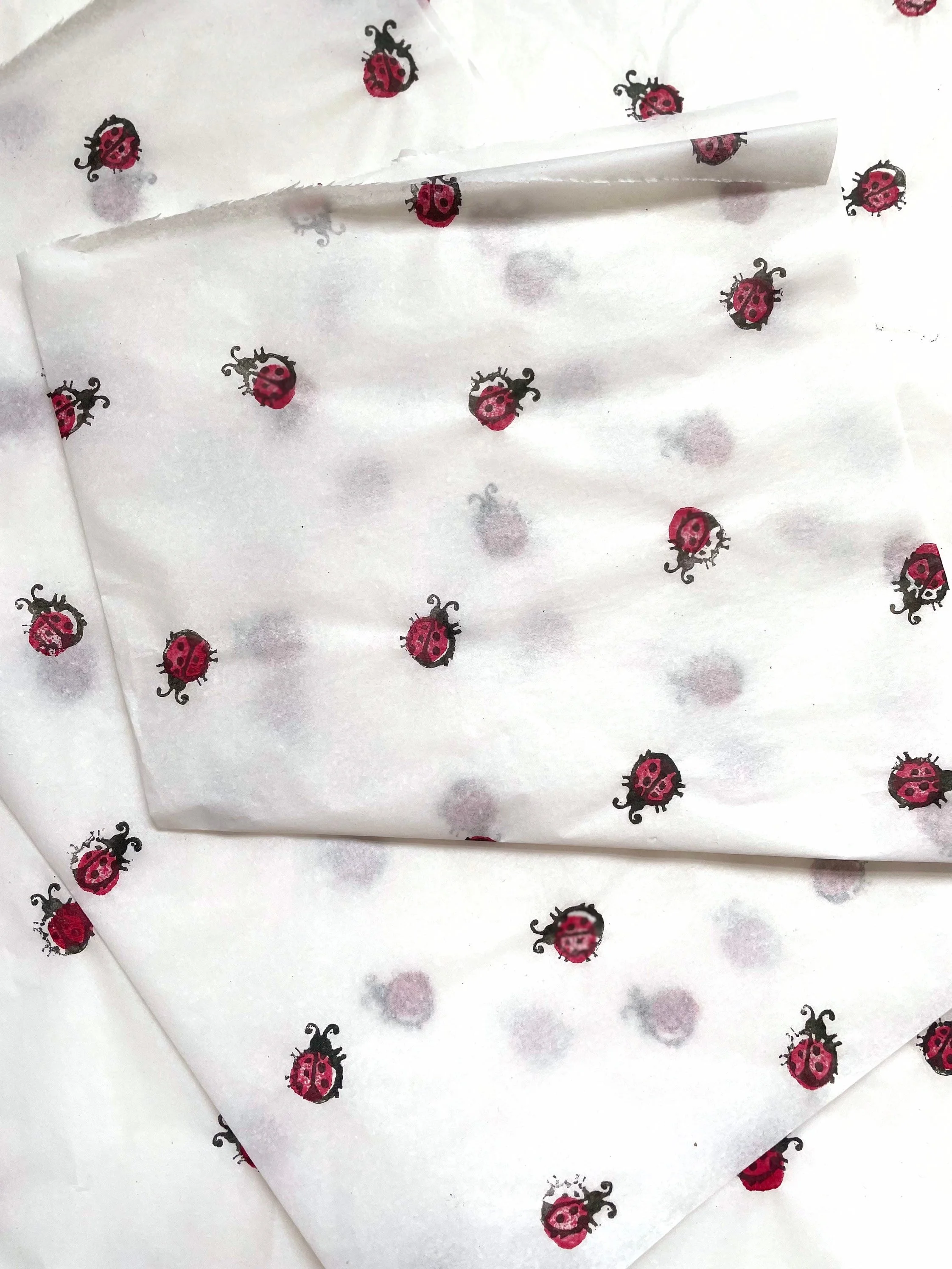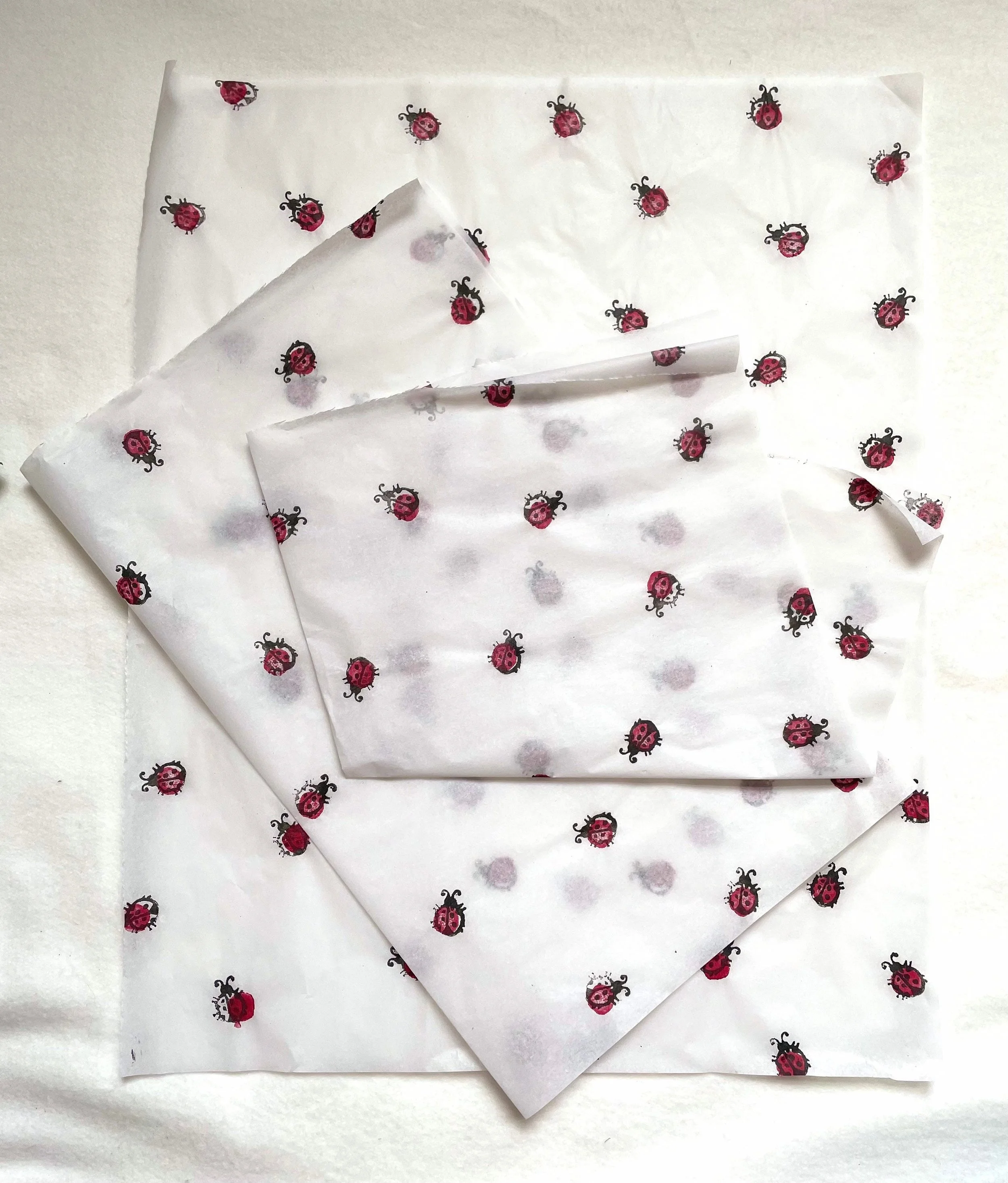 3 x Lady bird Handprinted Eco Tissue paper, tissue paper, gift wrap, packaging, pretty packaging.
