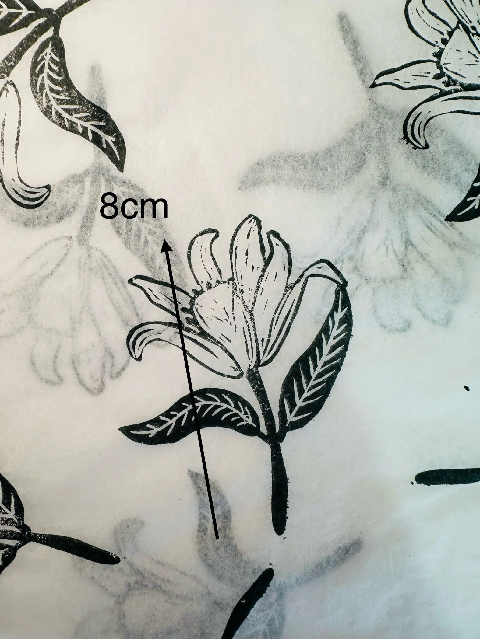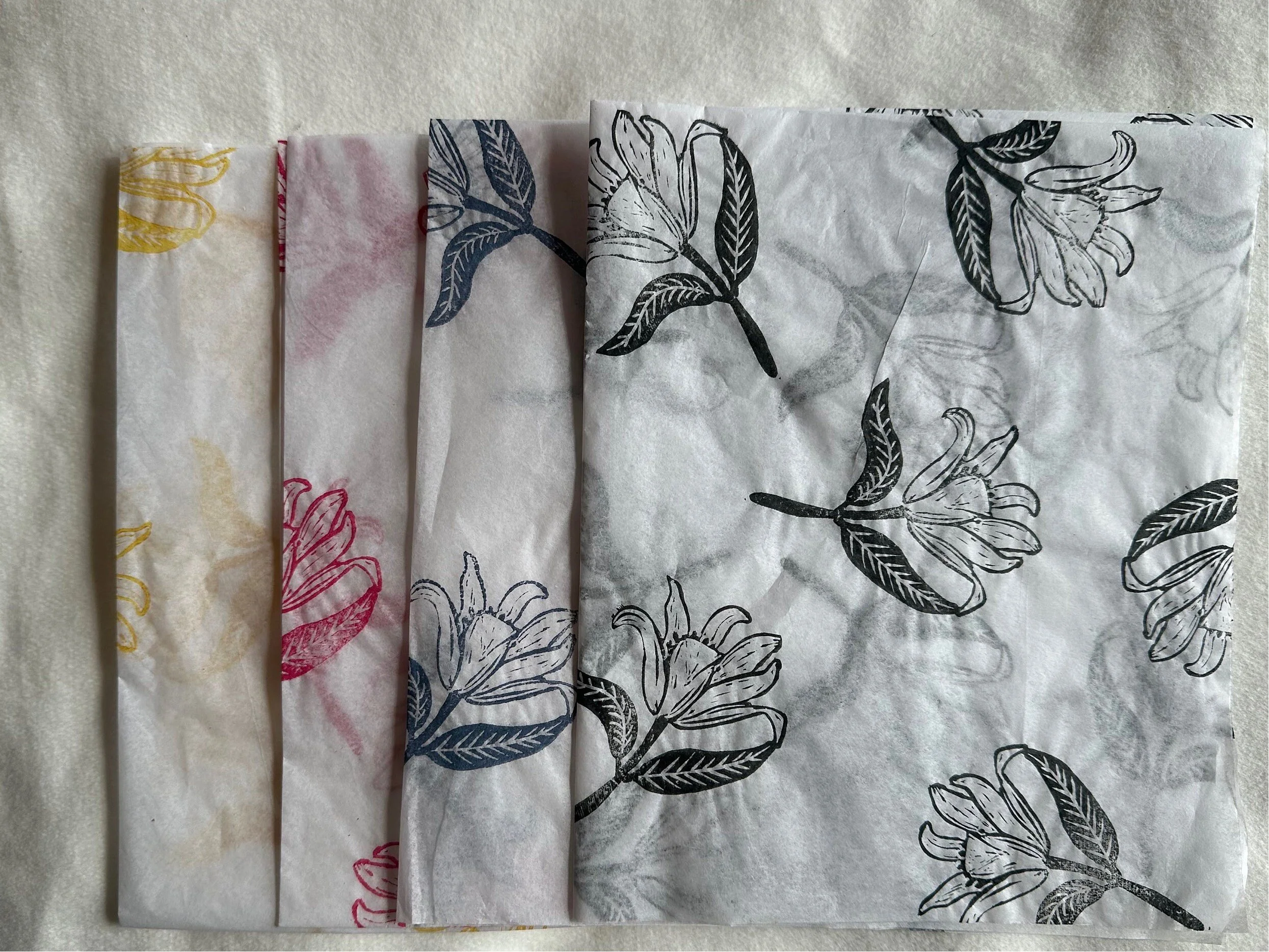 3 x lily flower Handprinted Eco Tissue paper, tissue paper, gift wrap, packaging, pretty packaging.