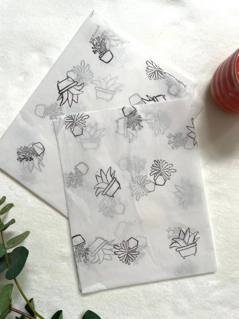 3 x mixed succulents Handprinted Eco Tissue paper, tissue paper, gift wrap, packaging, pretty packaging.