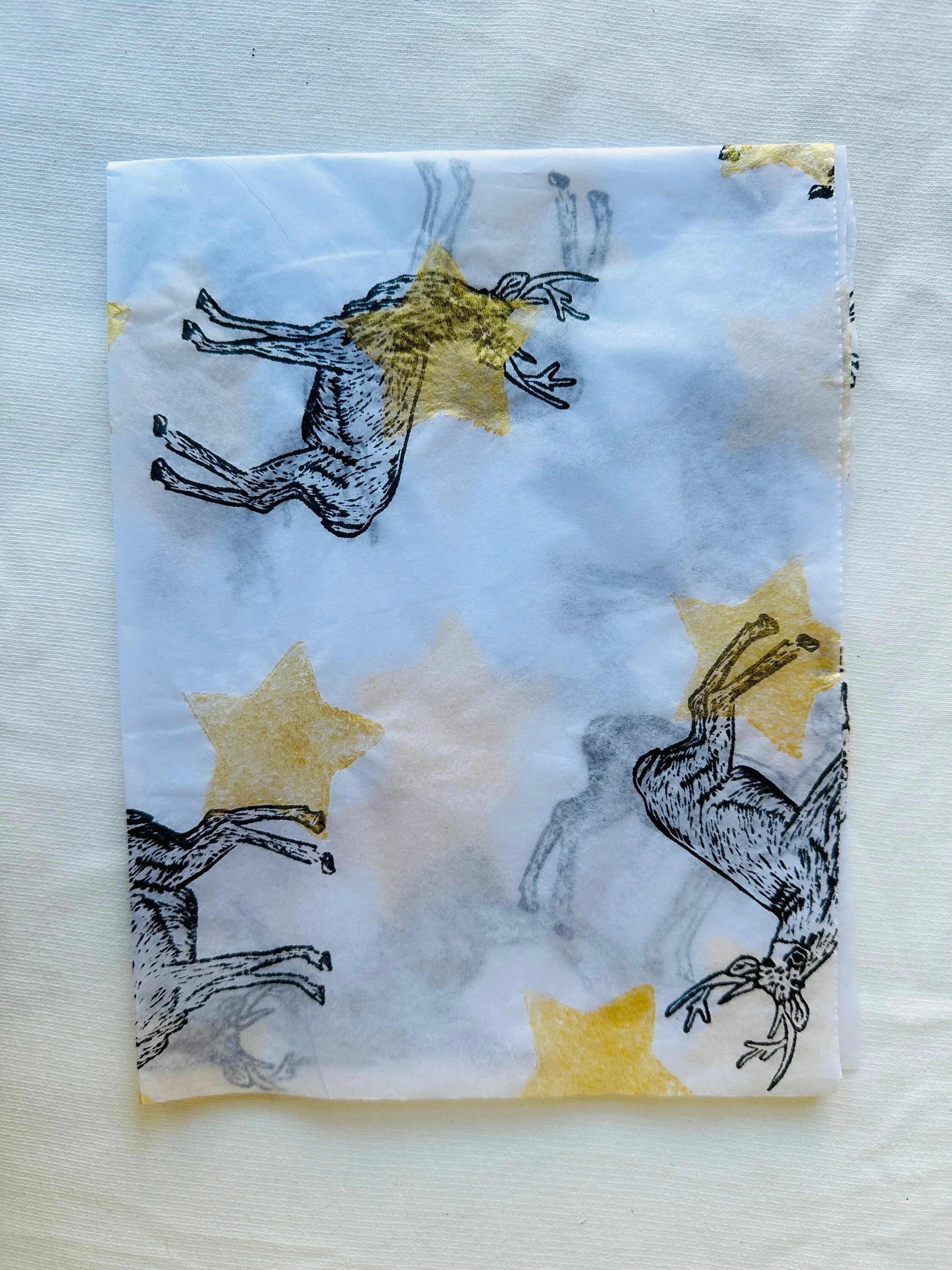 3 x star and stag Handprinted Eco Tissue paper, tissue paper, gift wrap, packaging, pretty packaging Christmas paper