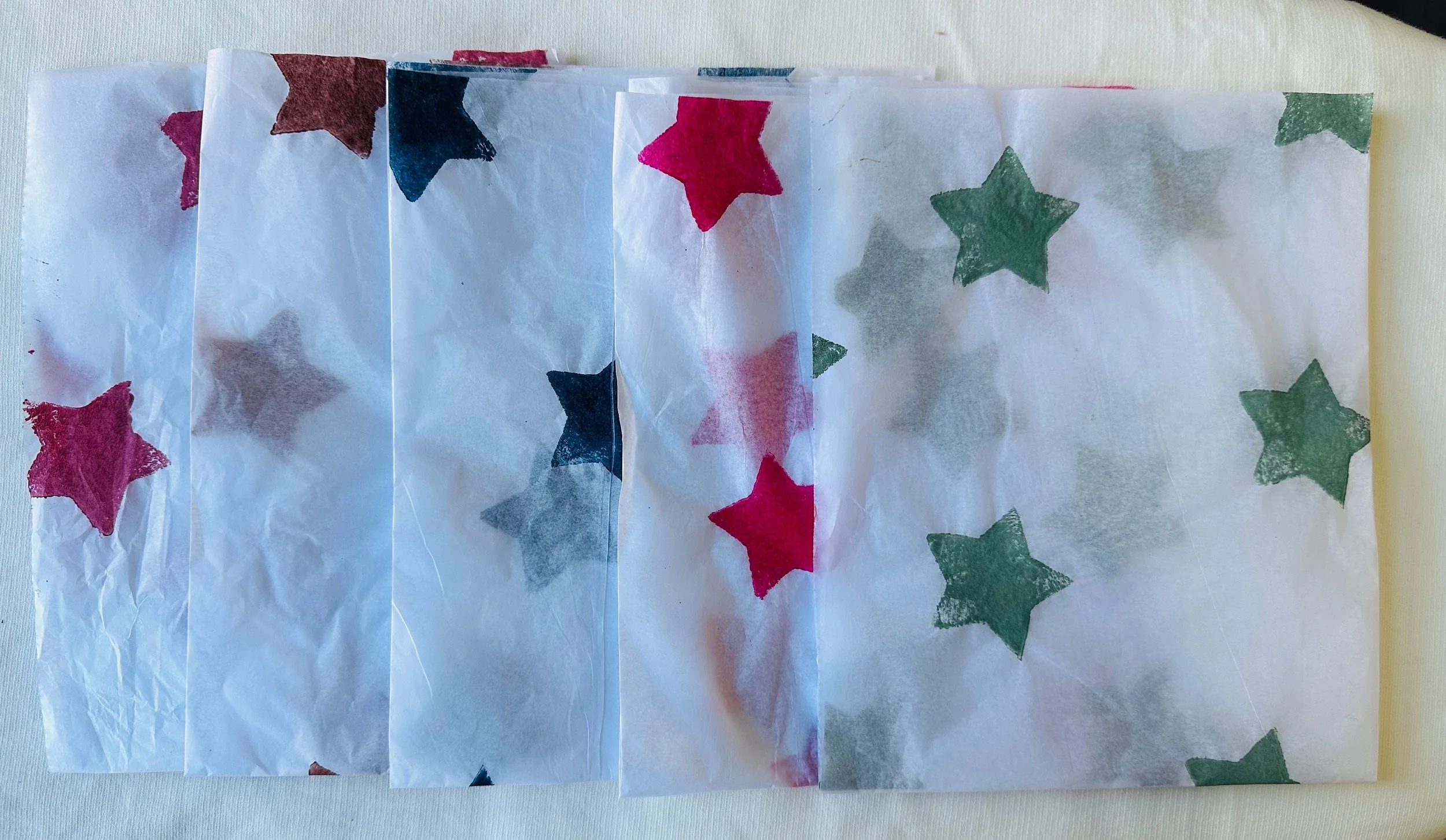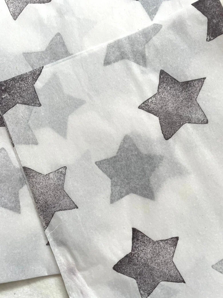 3 x star Handprinted Eco Tissue paper, tissue paper, gift wrap, packaging, pretty packaging.