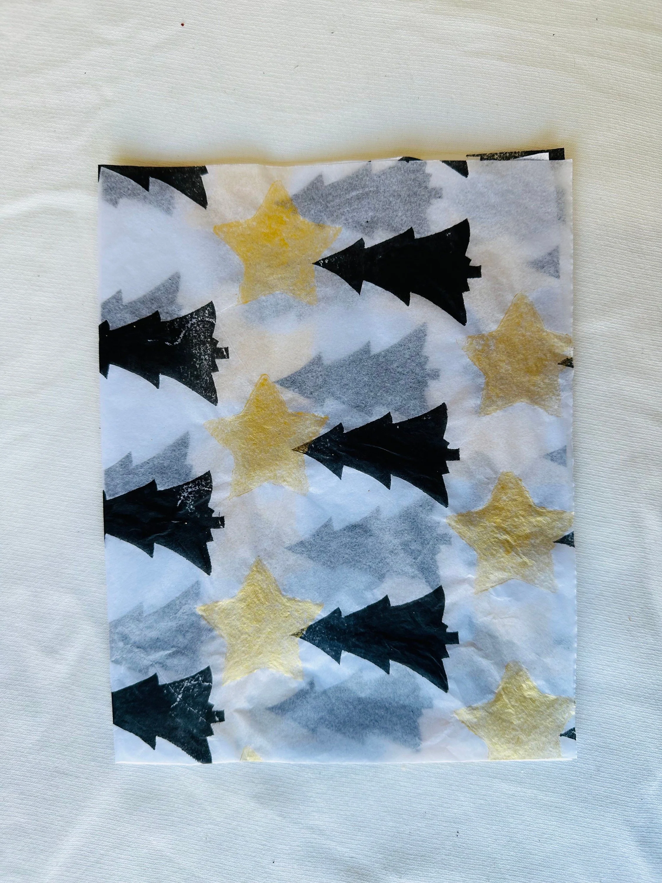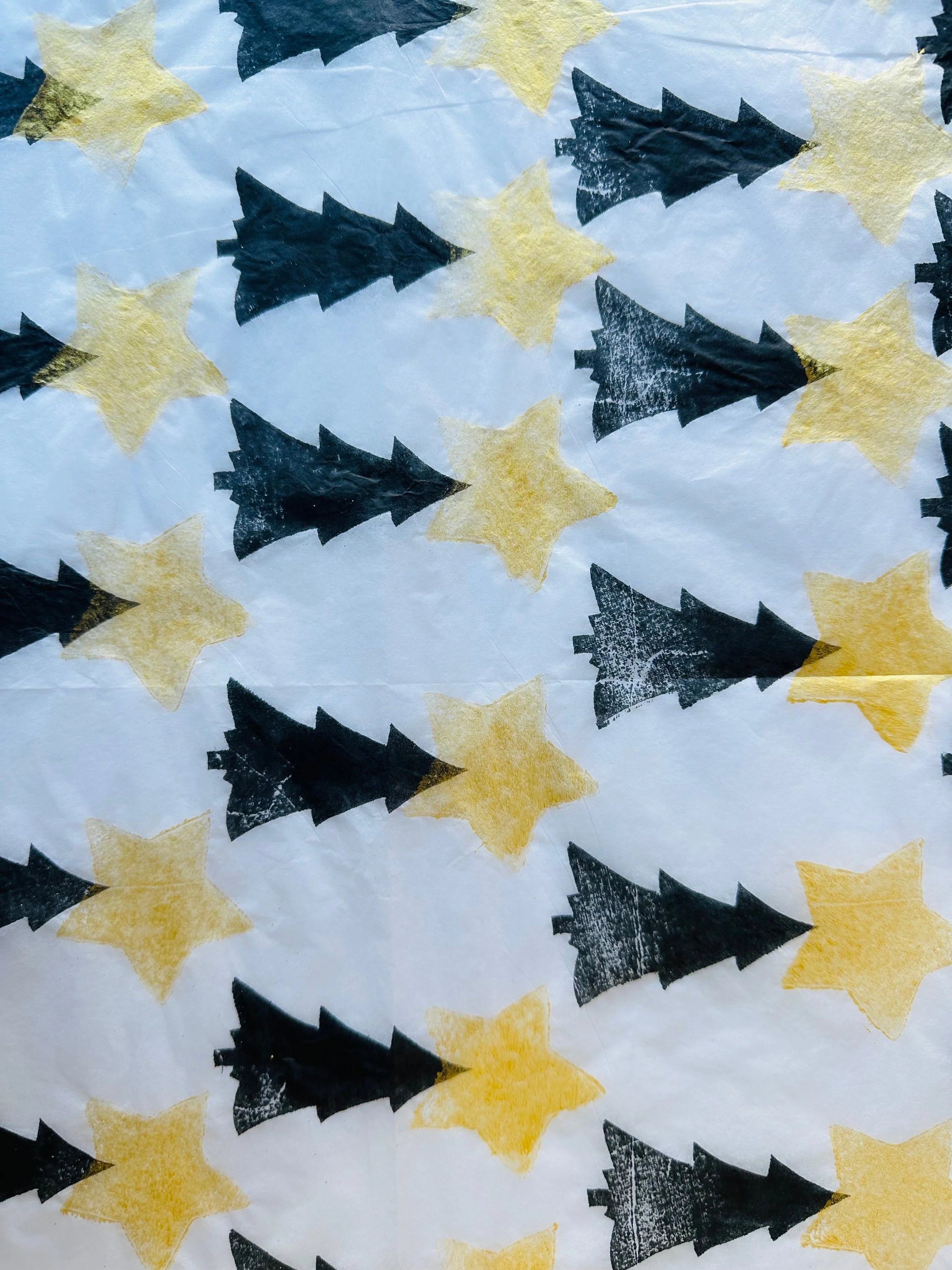 3 x star trees Handprinted Eco Tissue paper, tissue paper, gift wrap, packaging, pretty packaging.