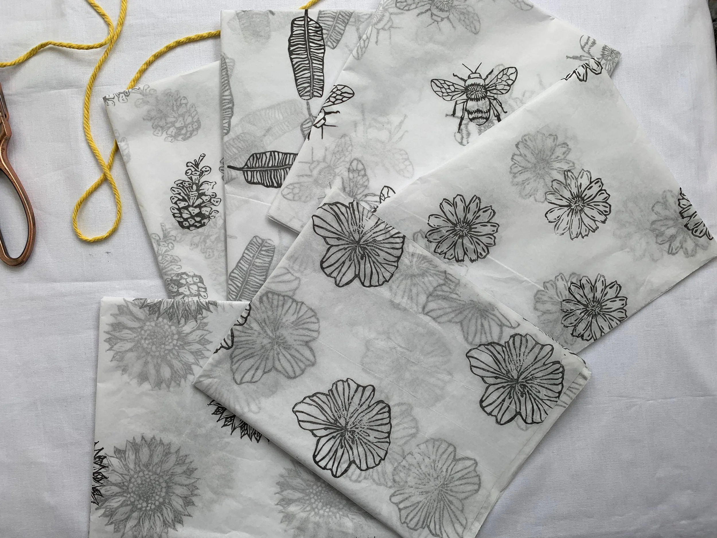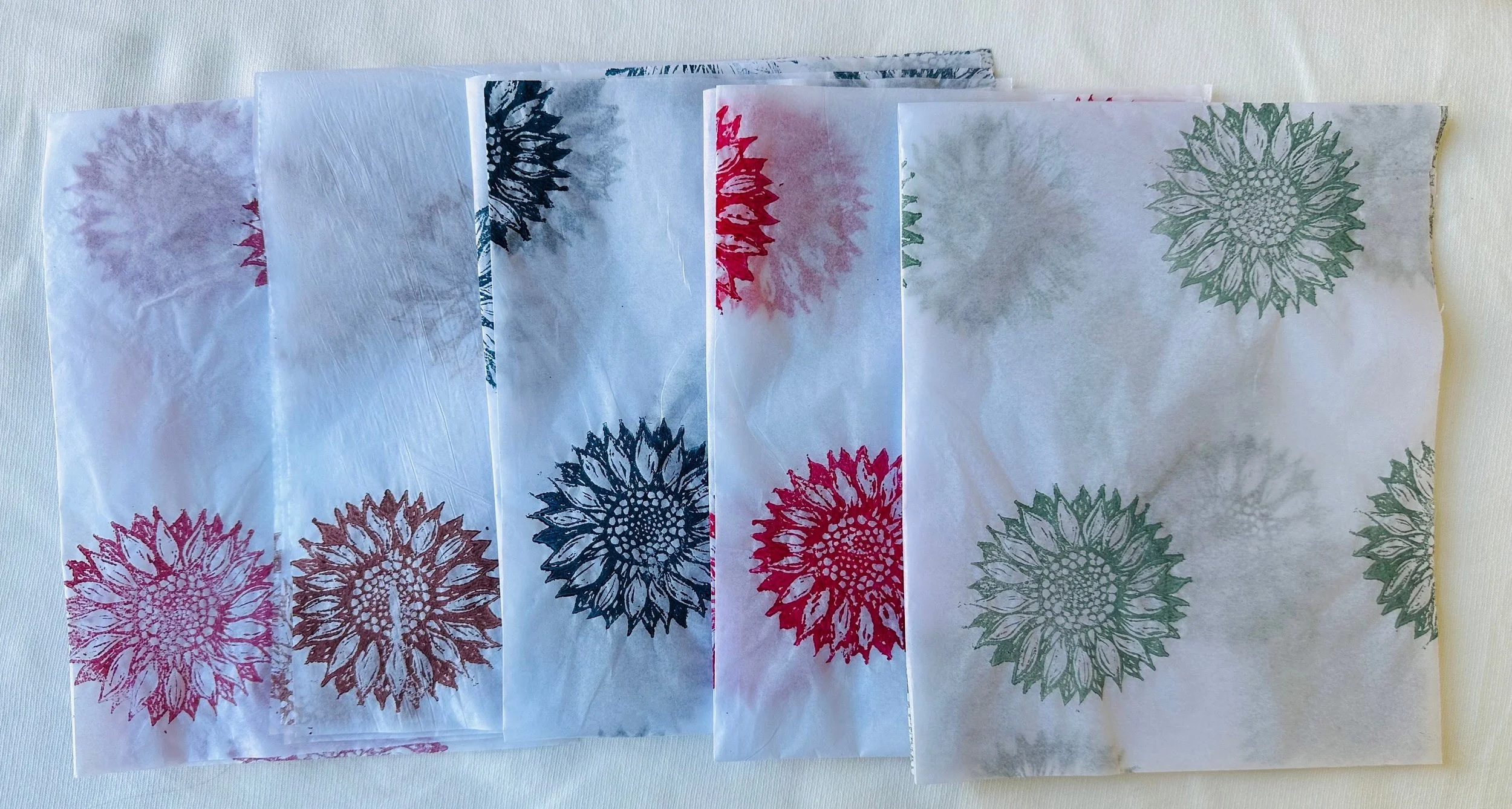 3 x Sunflower , Handprinted Eco Tissue paper, tissue paper, gift wrap, packaging, pretty packaging.