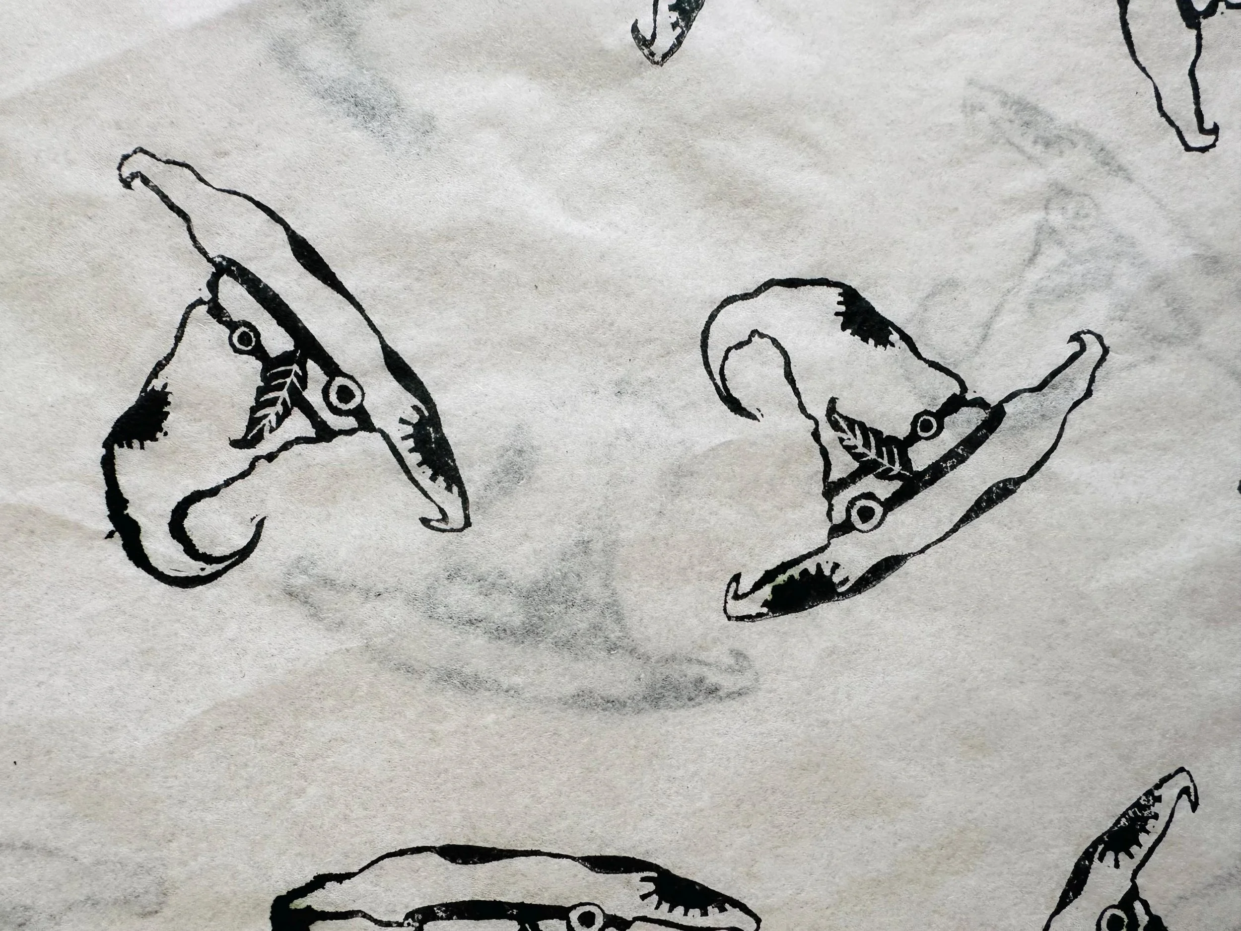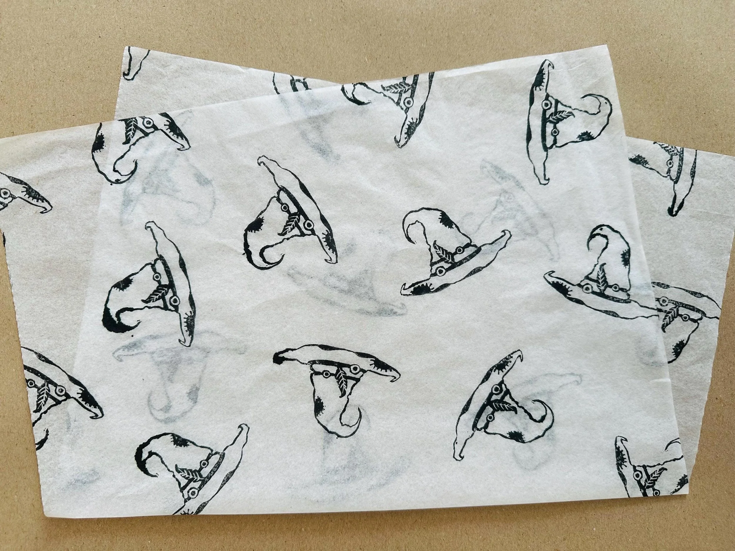 3 x witches hat Handprinted Eco Tissue paper, tissue paper, gift wrap, packaging, pretty packaging.
