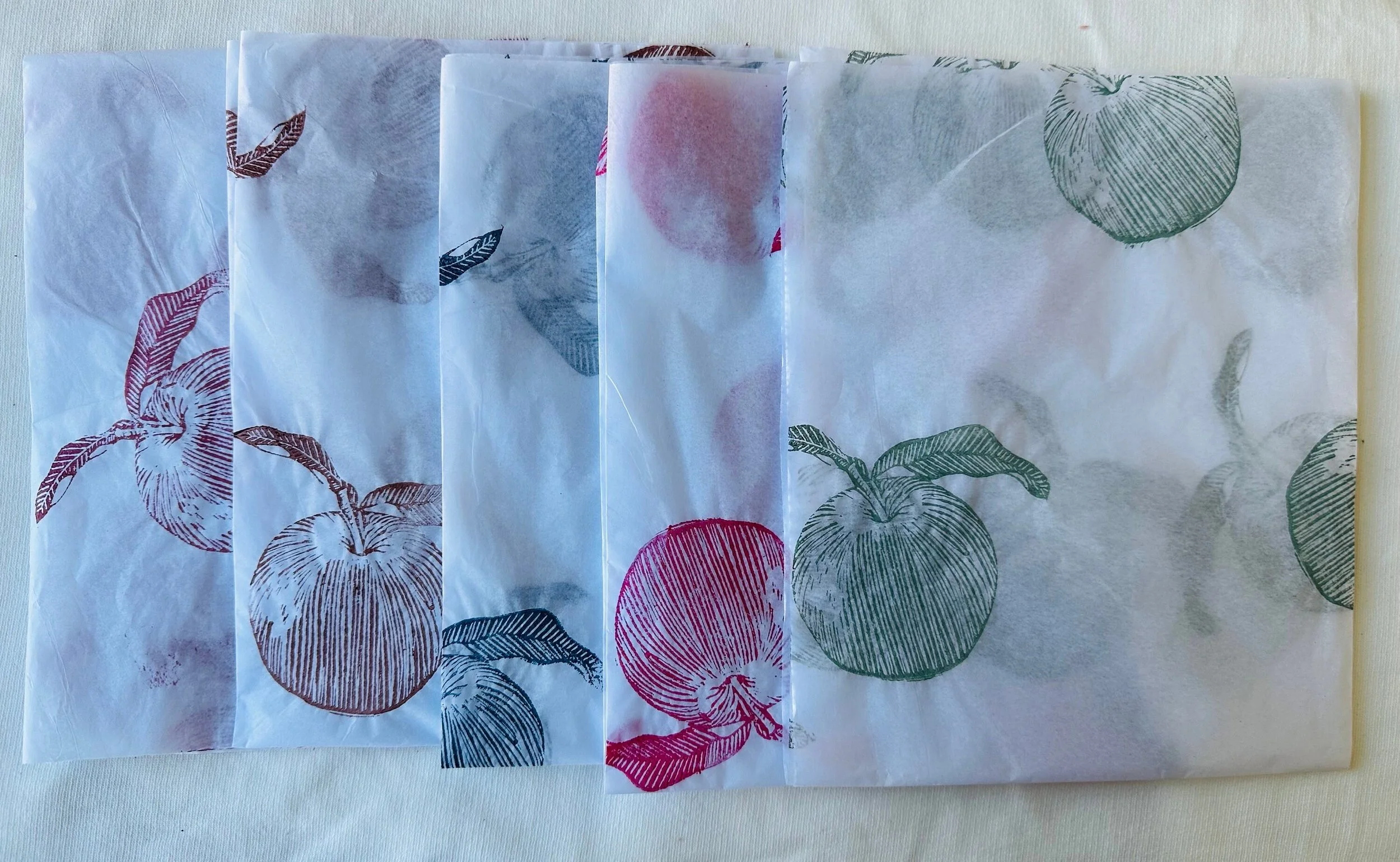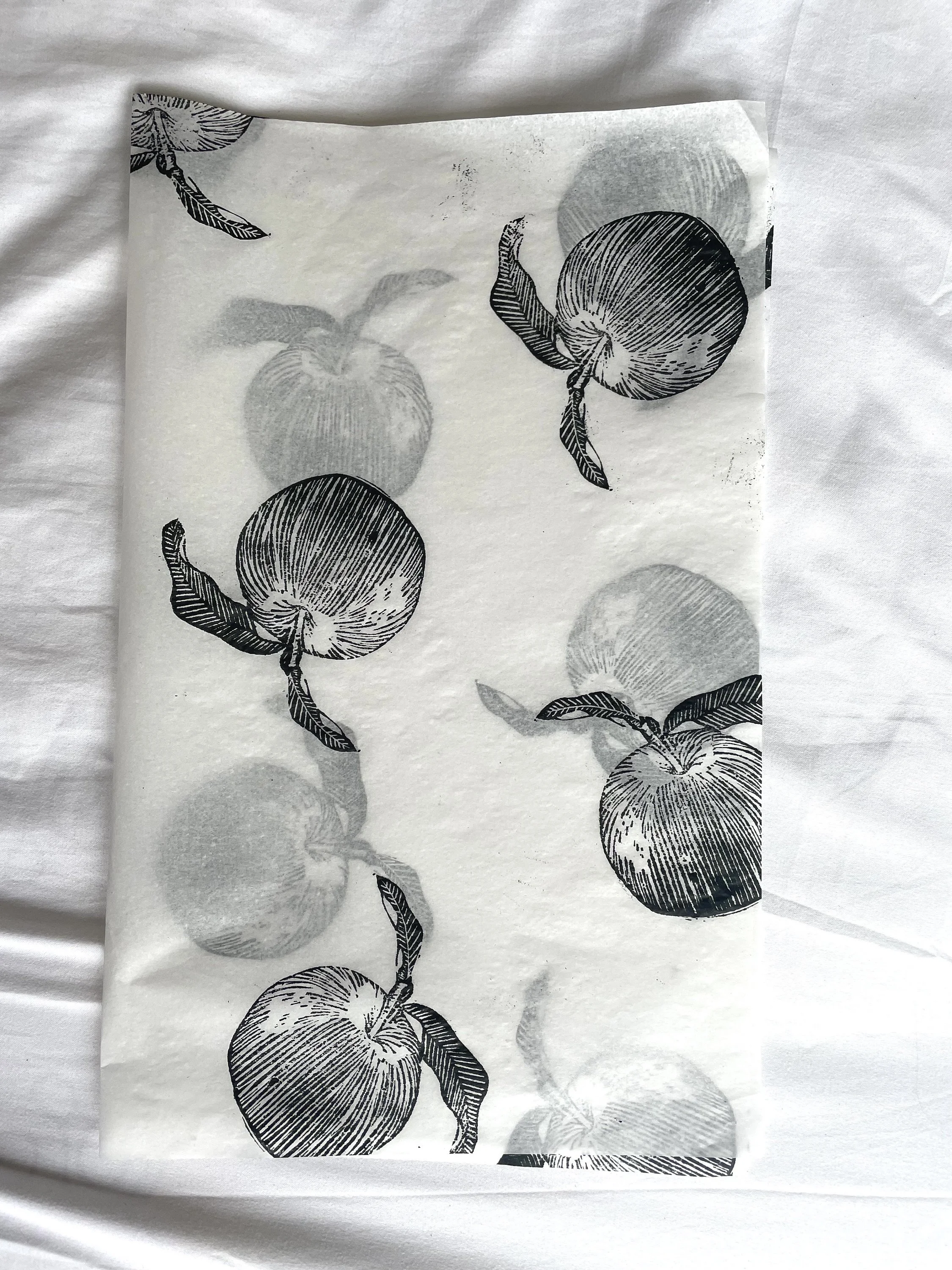 3x Apple , Handprinted Eco Tissue paper, tissue paper, gift wrap, packaging, pretty packaging