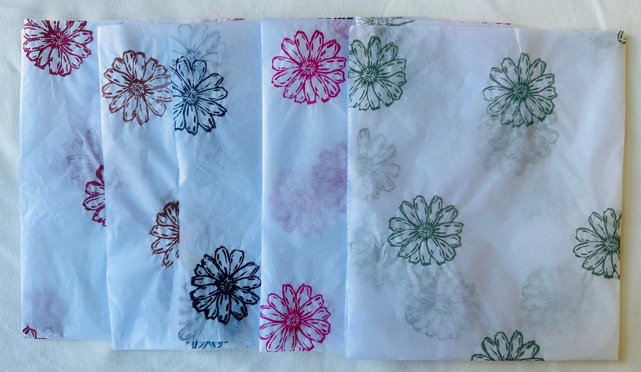 3x Daisy, Handprinted Eco Tissue paper, tissue paper, gift wrap, packaging, pretty packaging.