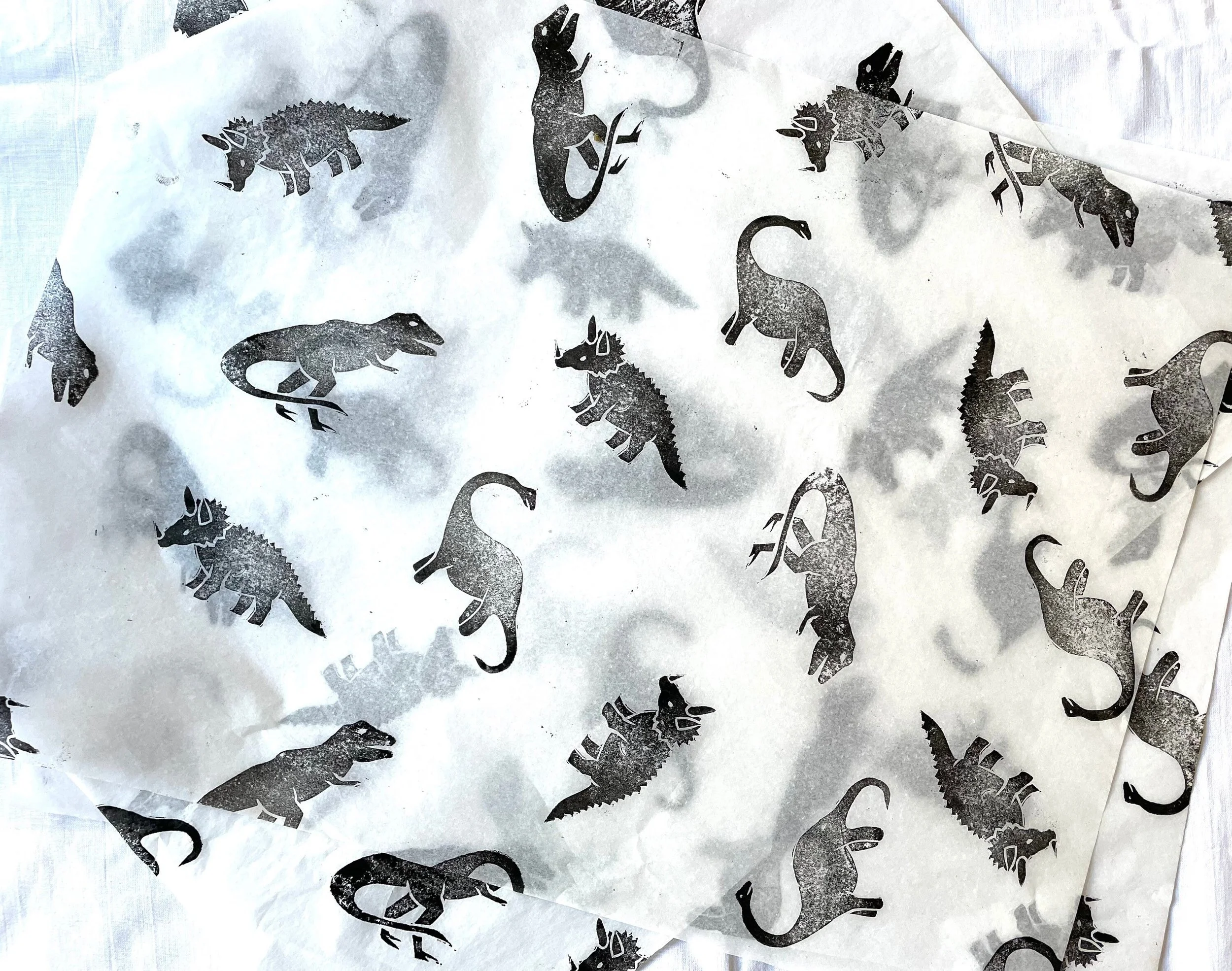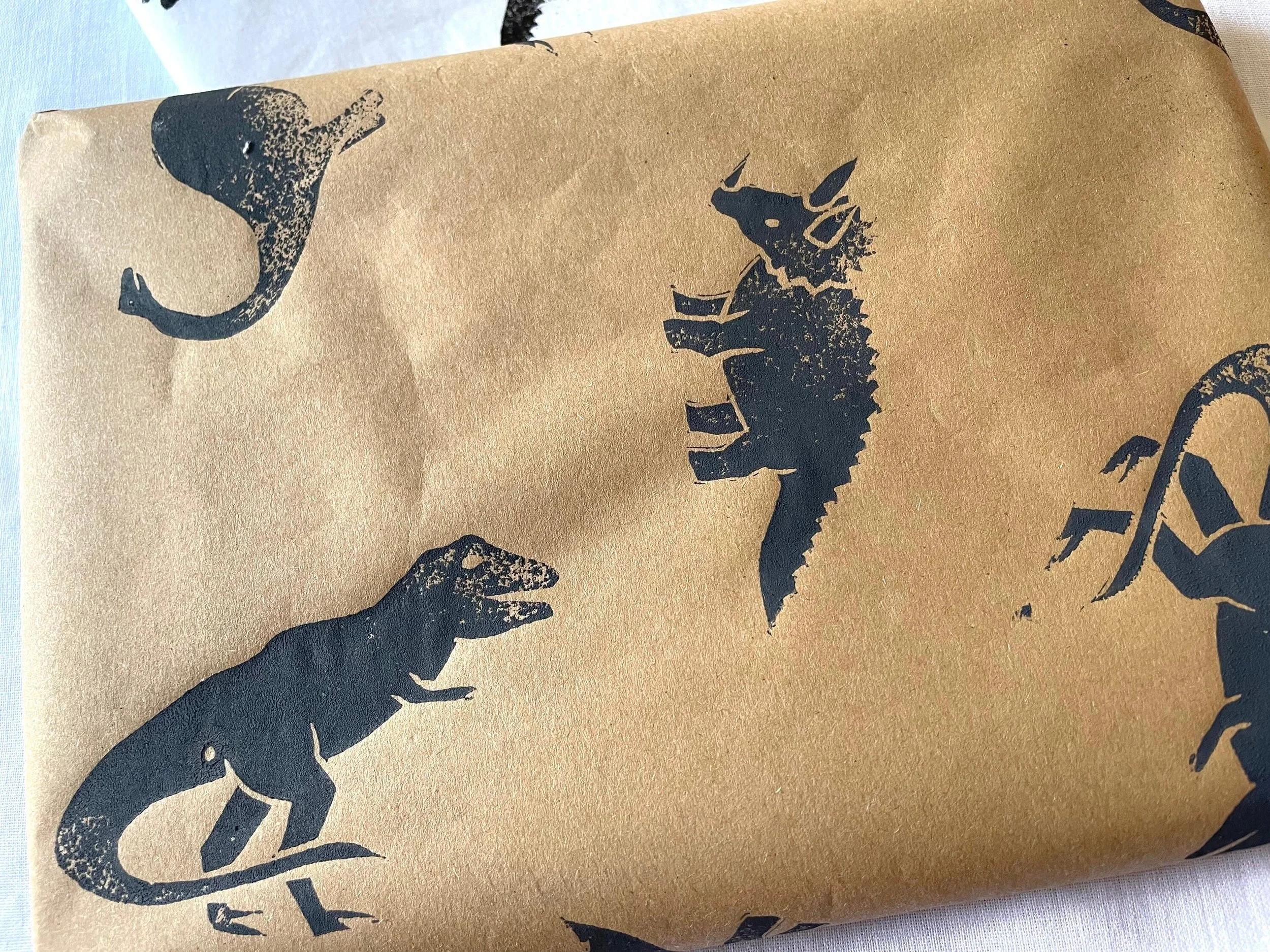 Handprinted with our 3 Dino stamps.