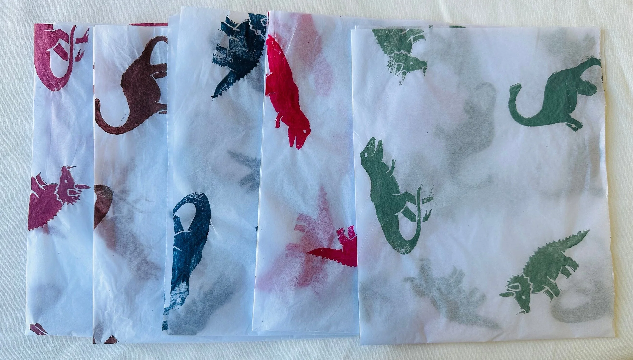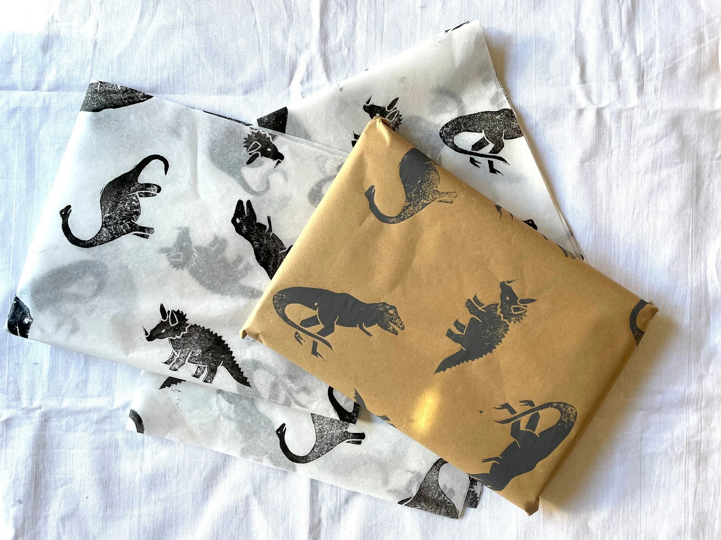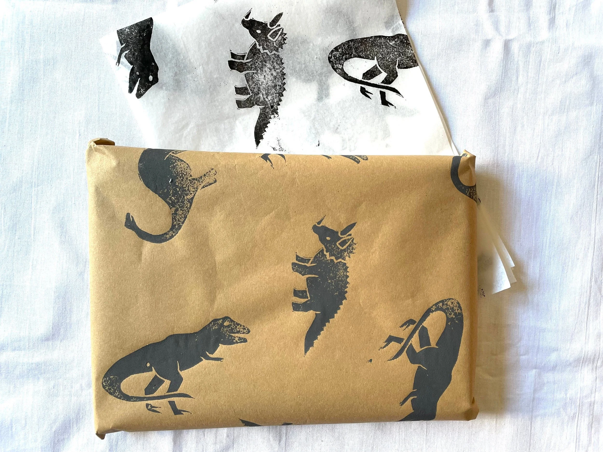 3x Dino Handprinted Eco Tissue paper, tissue paper, gift wrap, packaging, pretty packaging.
