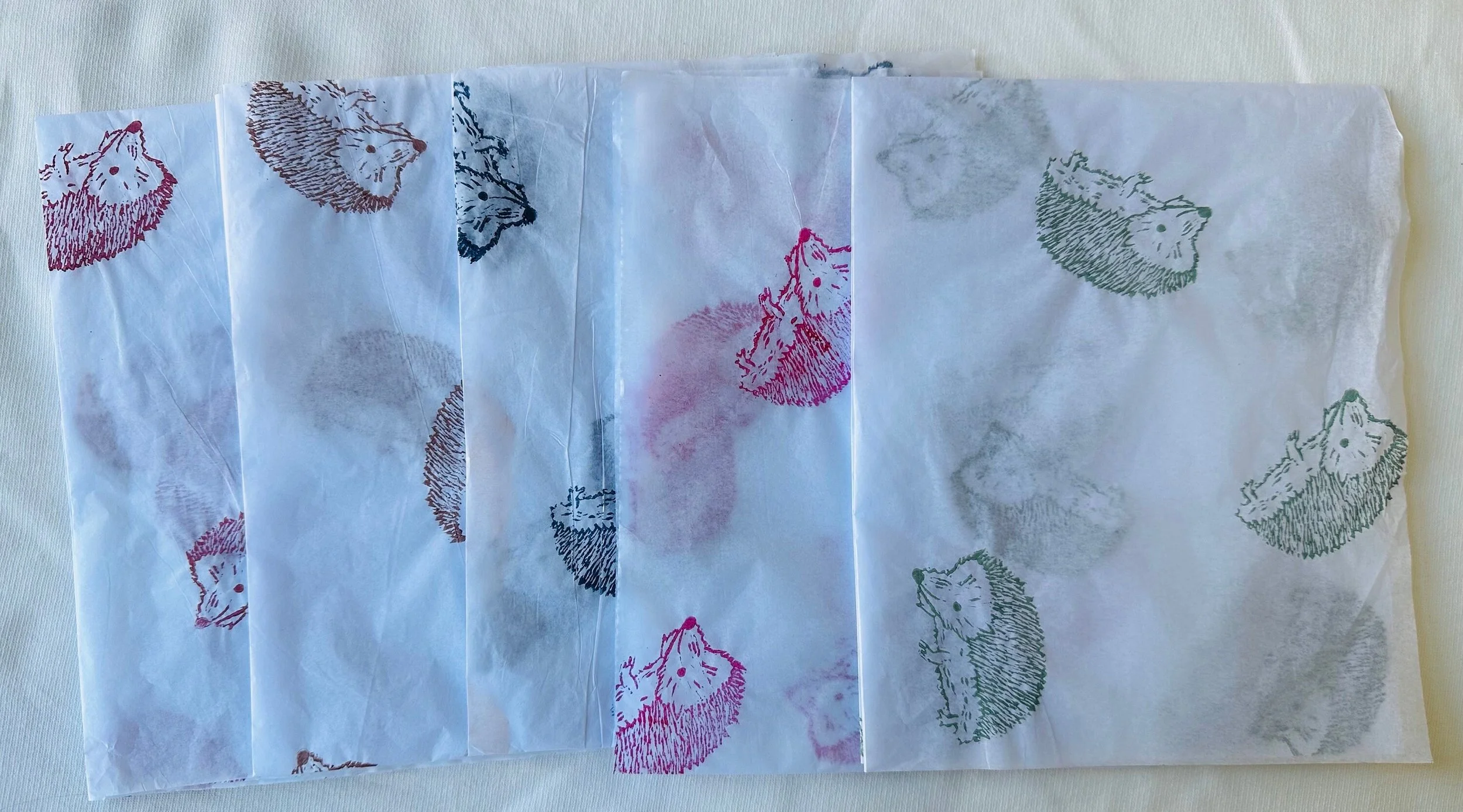 3x Hedgehog , Handprinted Eco Tissue paper, tissue paper, gift wrap, packaging, pretty packaging