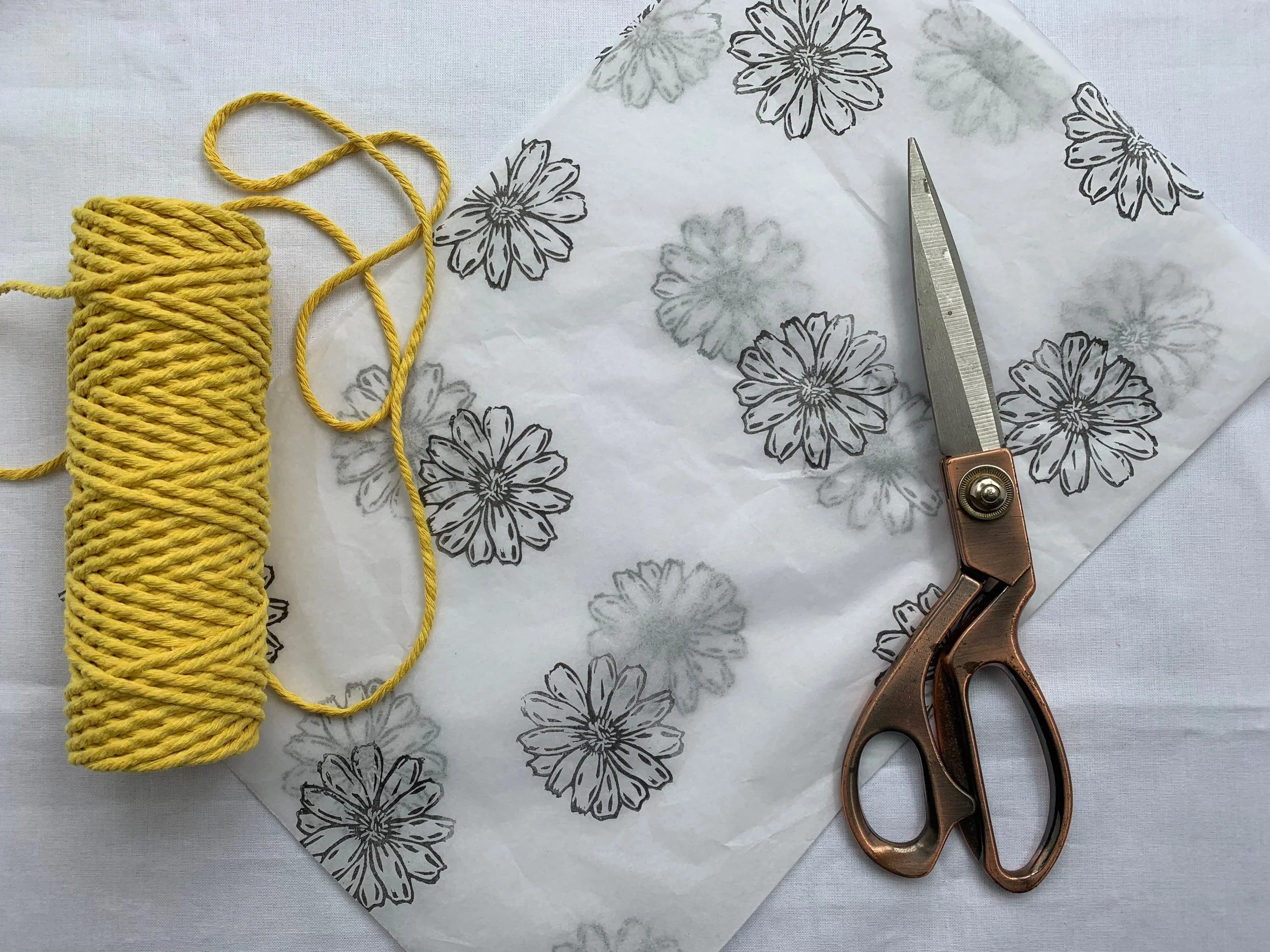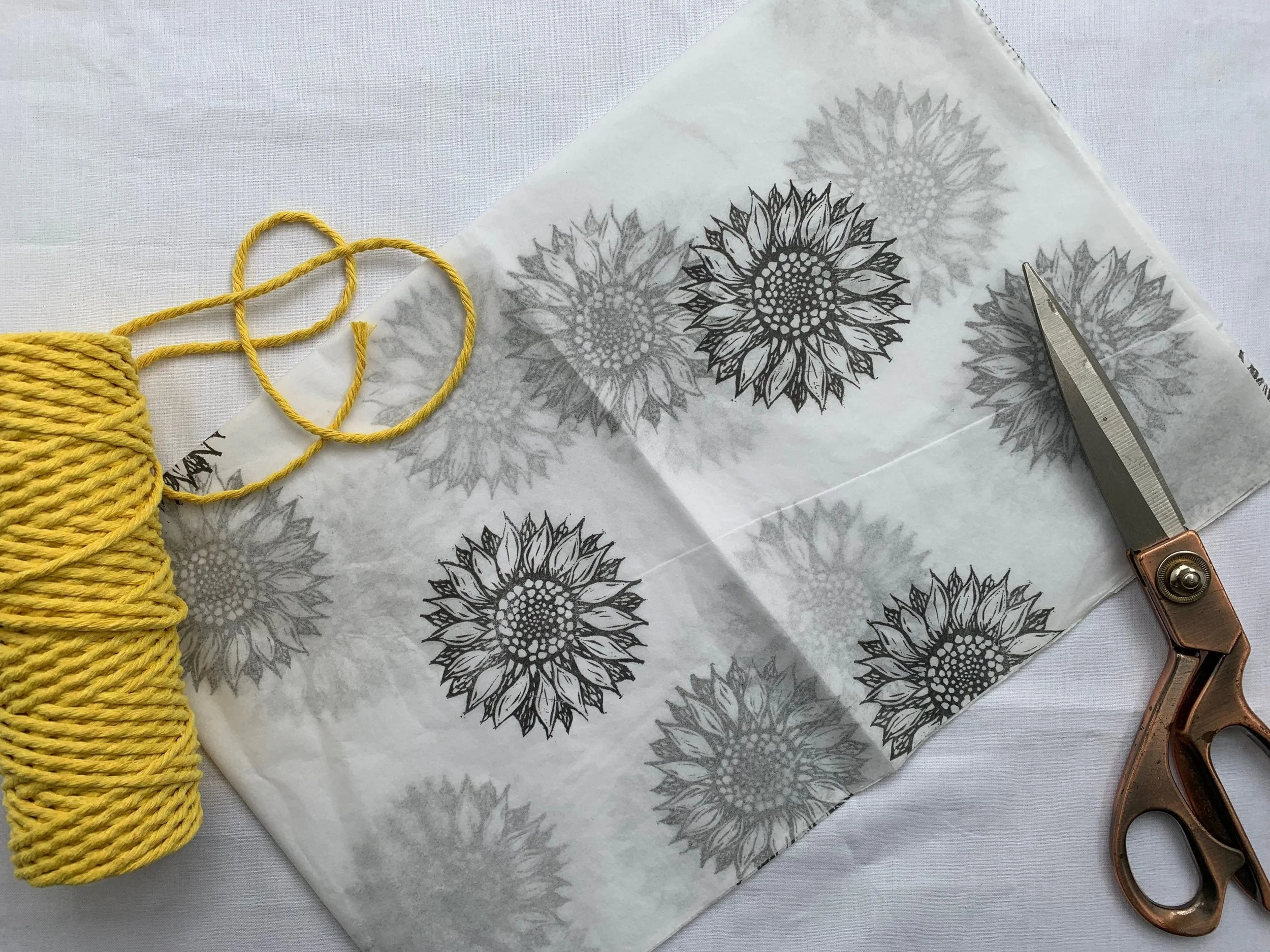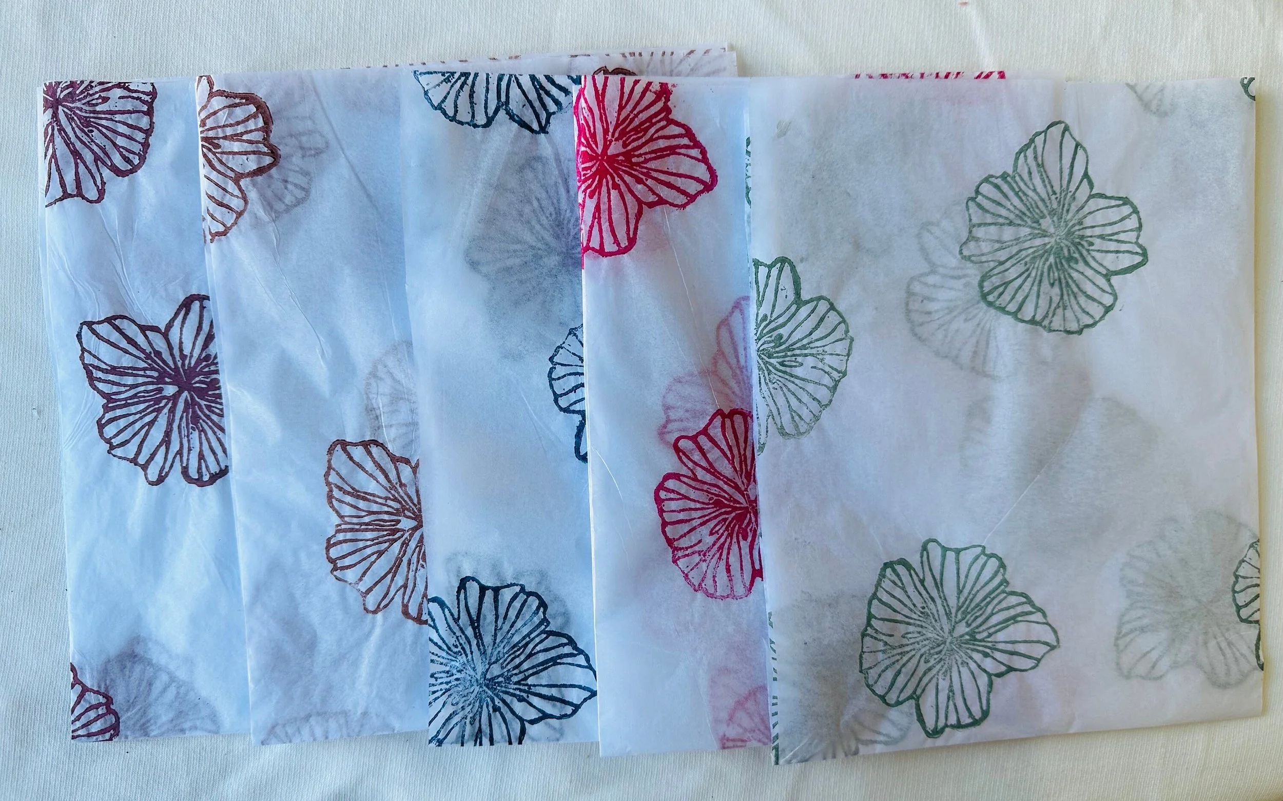 3x Hibiscus Flower, Handprinted Eco Tissue paper, tissue paper, gift wrap, packaging, pretty packaging.