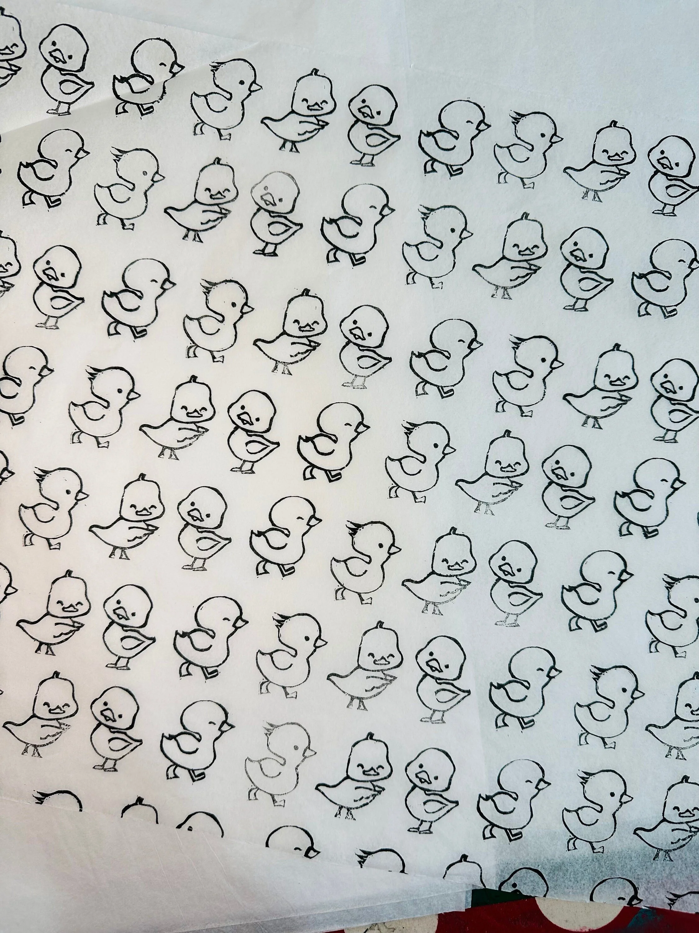 3x mini duckling paper, Handprinted Eco Tissue paper, tissue paper, gift wrap, packaging, pretty packaging, Easter paper