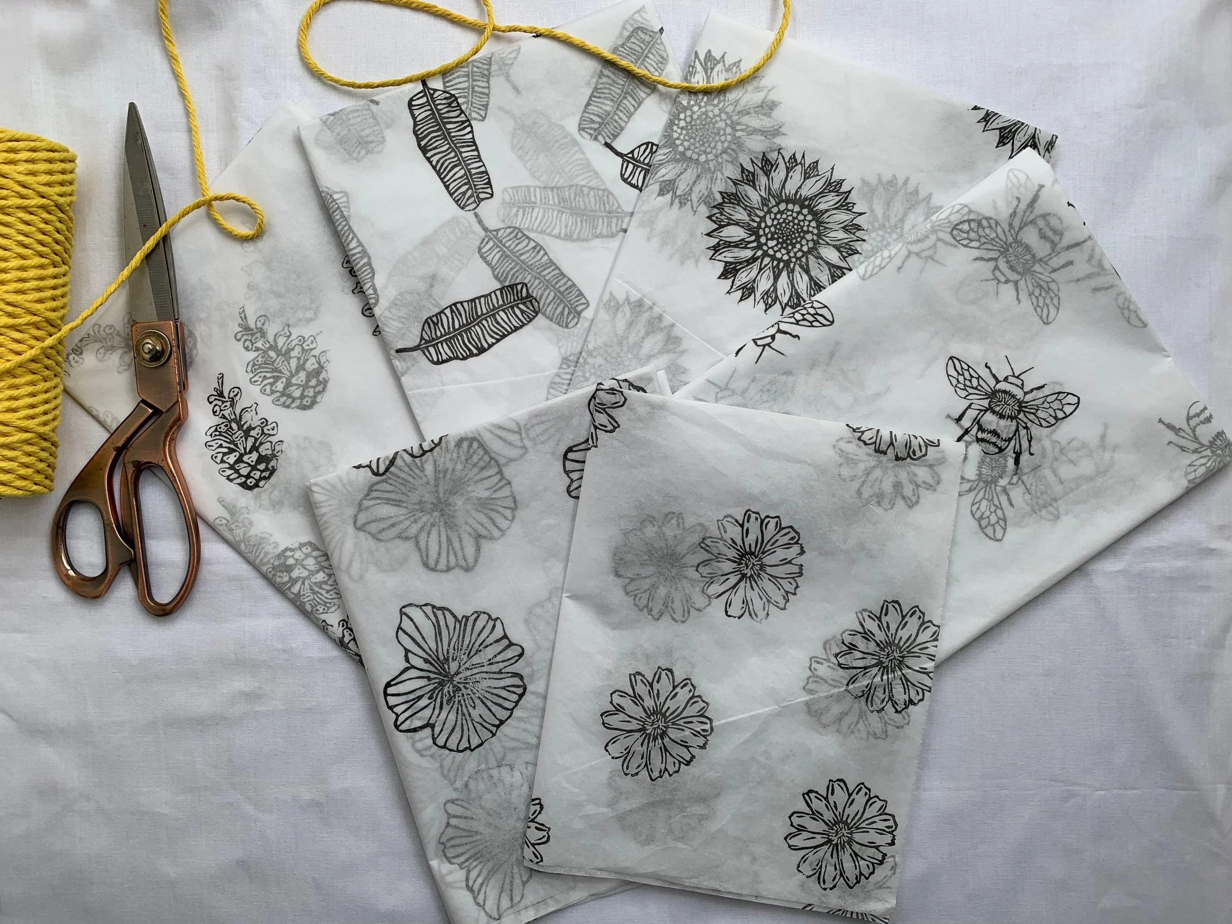3x Pinecone , Handprinted Eco Tissue paper, tissue paper, gift wrap, packaging, pretty packaging.