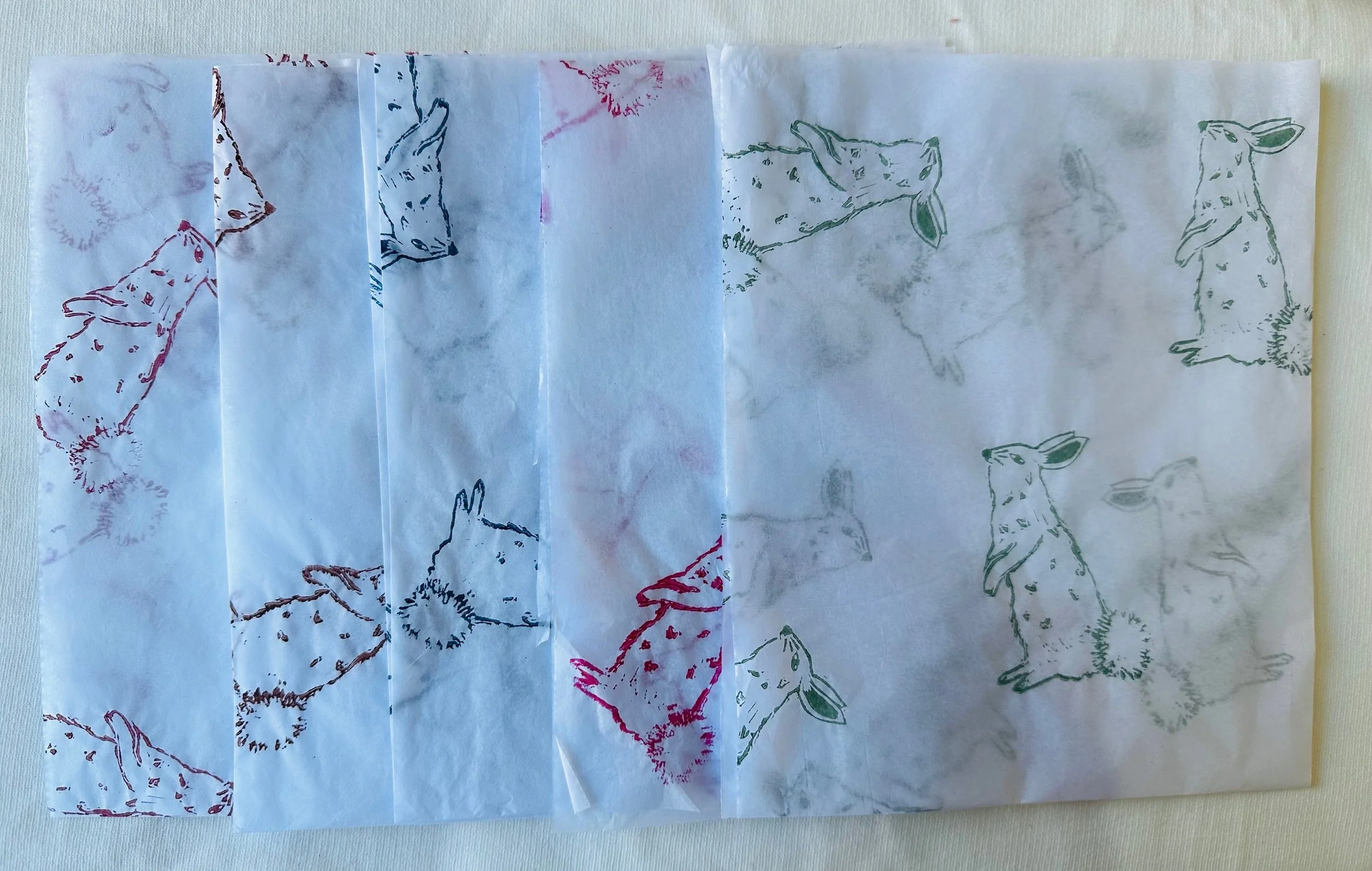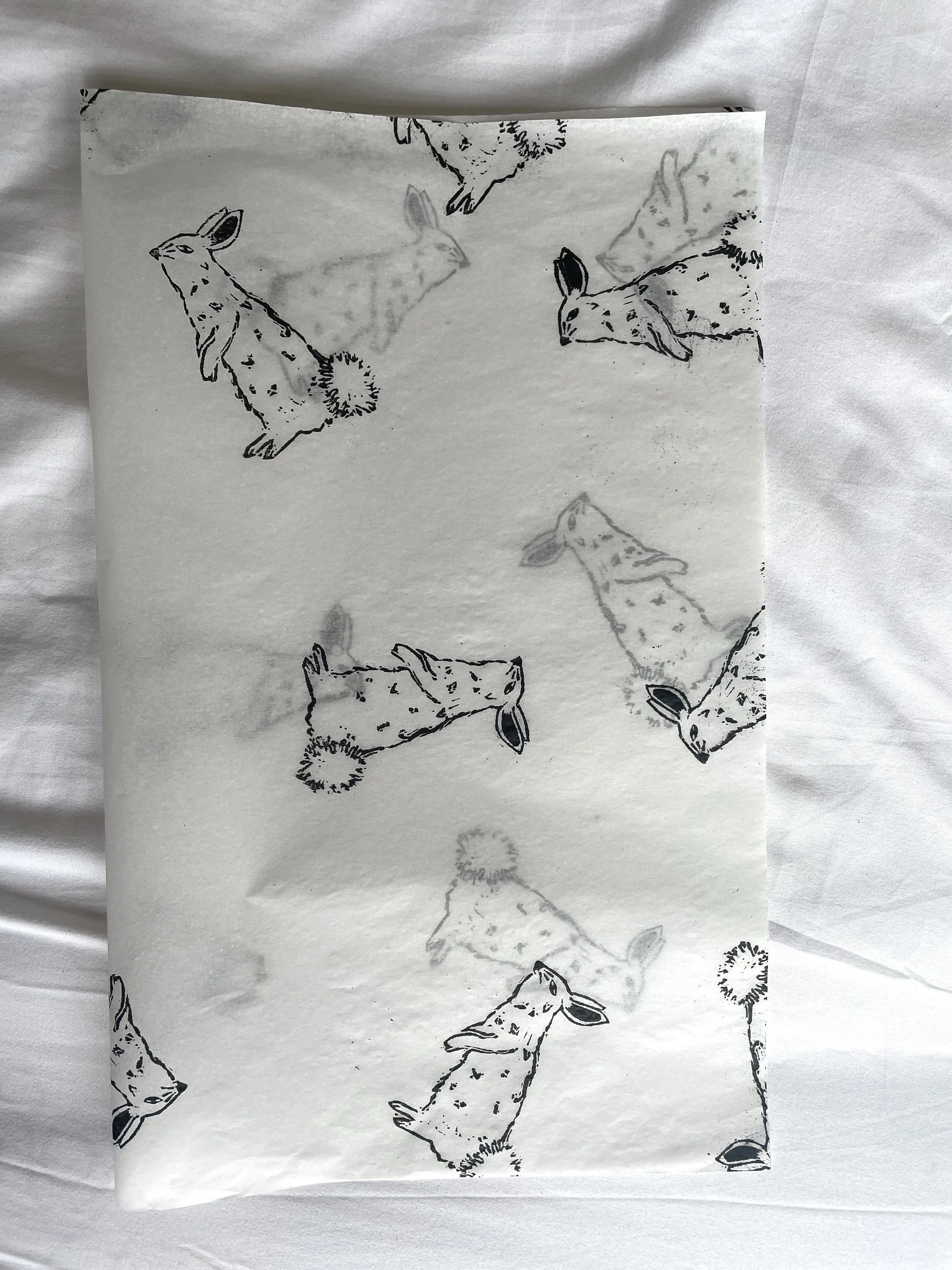 3x small bunny , Handprinted Eco Tissue paper, tissue paper, gift wrap, packaging, pretty packaging