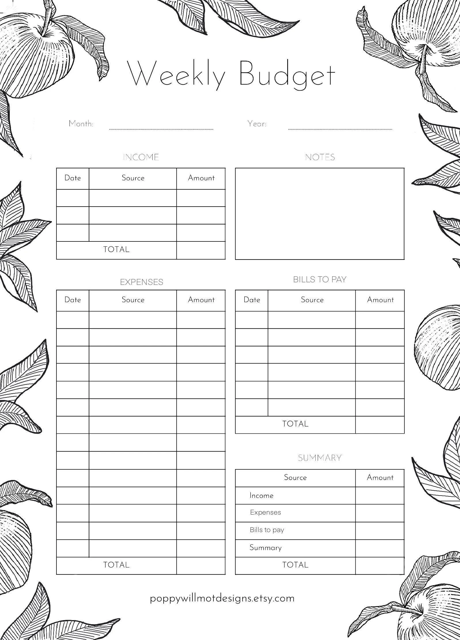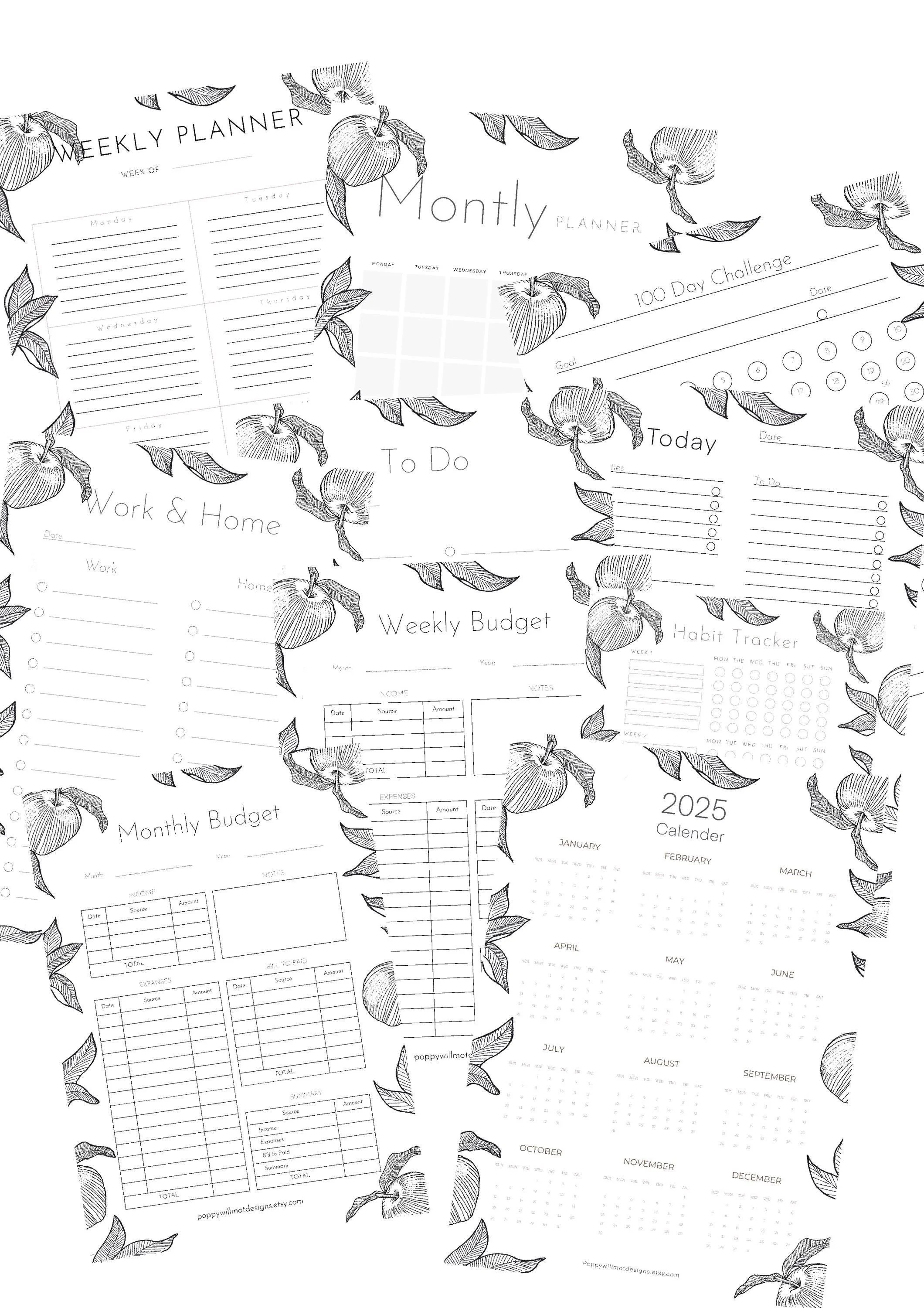 Apples | life planning package | 9+ downloads | budgeting | Minimalist Printable PDF Template | Organisation and Planning | A4