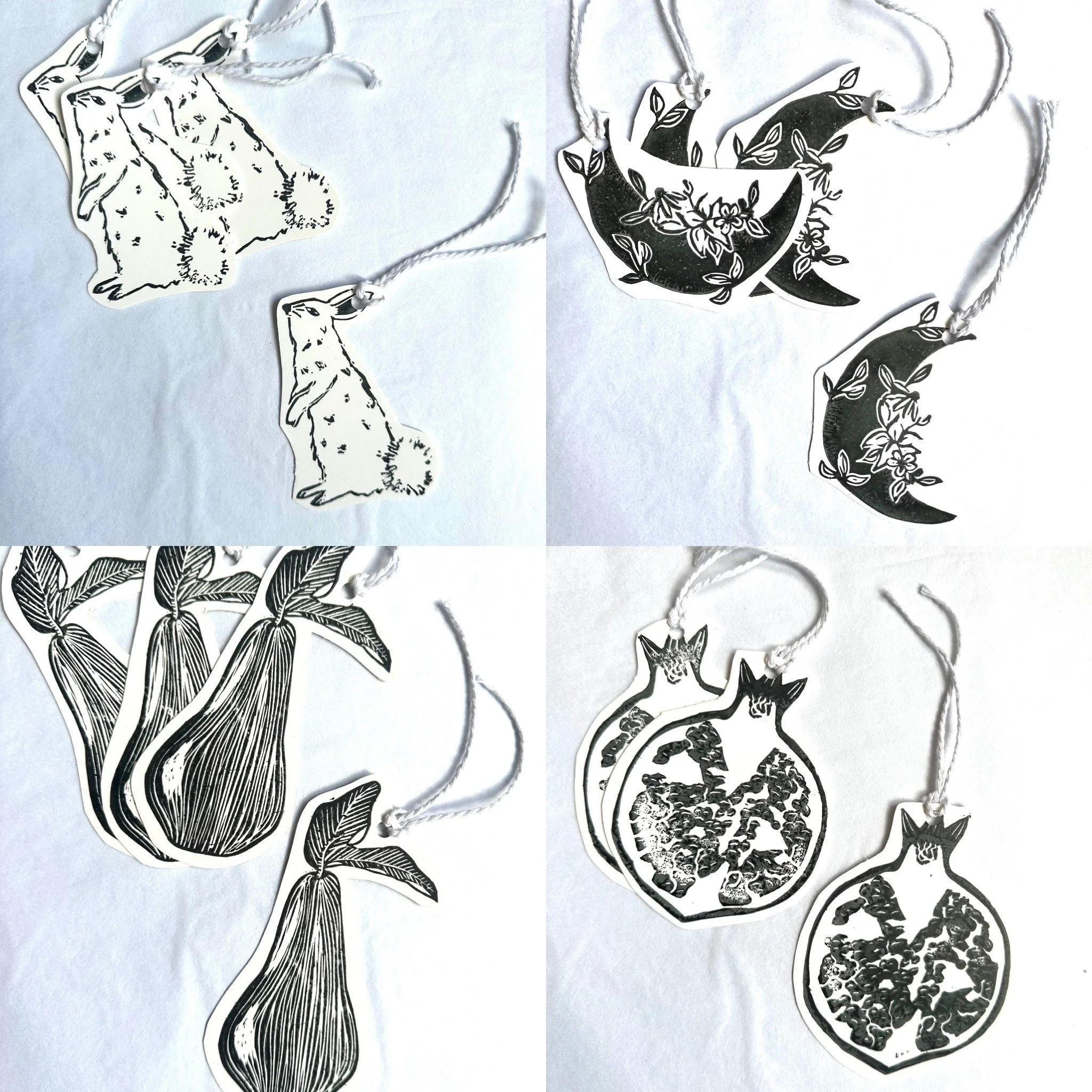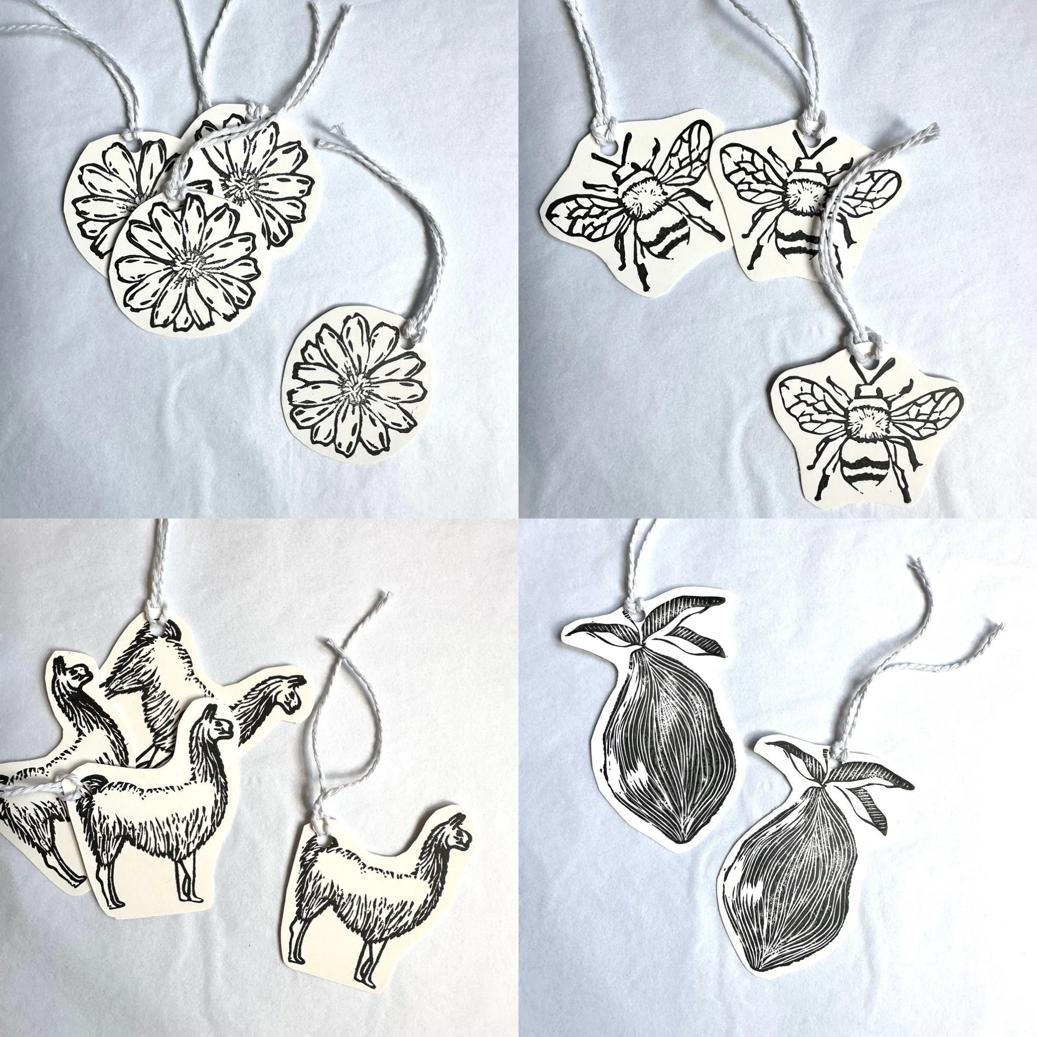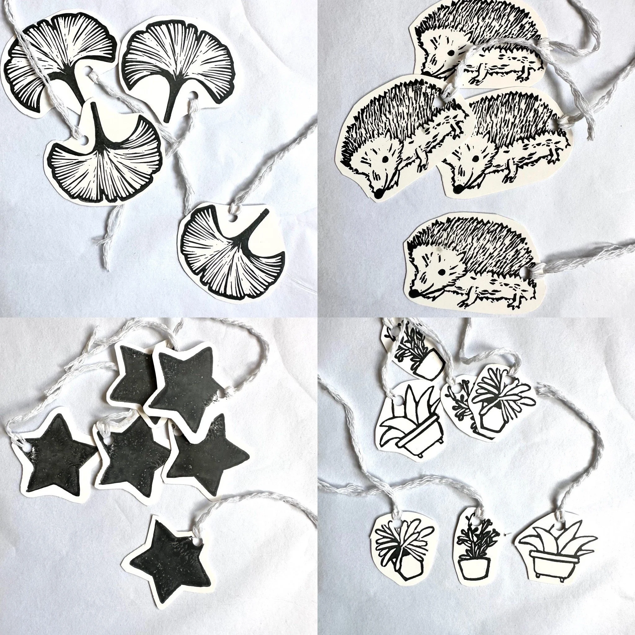 Card, gift tags. Swing tags, present tags , Gingko leaf , hedgehog , pear , llama and more