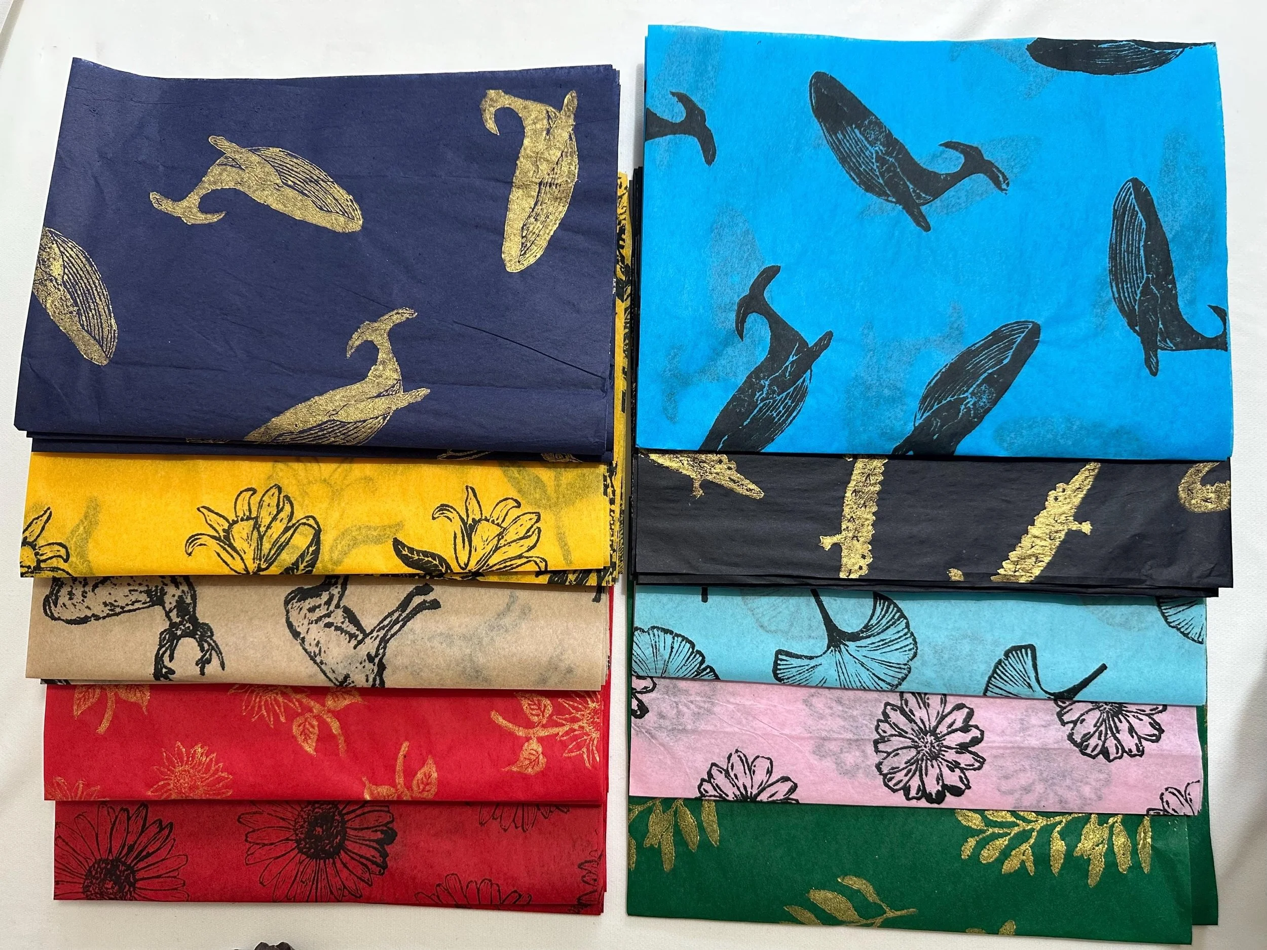 Whether you're wrapping a birthday present, adorning a gift basket, or adding a decorative touch to your crafting projects, our handprinted eco tissue paper will elevate your creations. Each sheet is carefully inspected to ensure a flawless product, ensuring that your gift recipients or customers will appreciate the attention to detail.