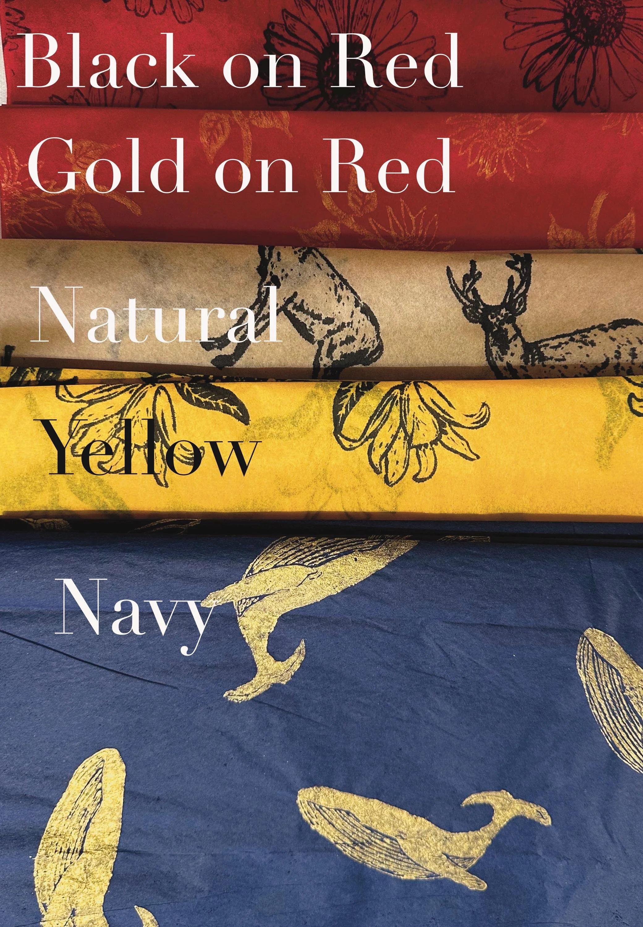 Introducing our eco-friendly tissue paper, handprinted with care and sustainability in mind. Each sheet of this exquisite tissue paper is meticulously crafted, using only the finest natural materials and eco-conscious printing methods.