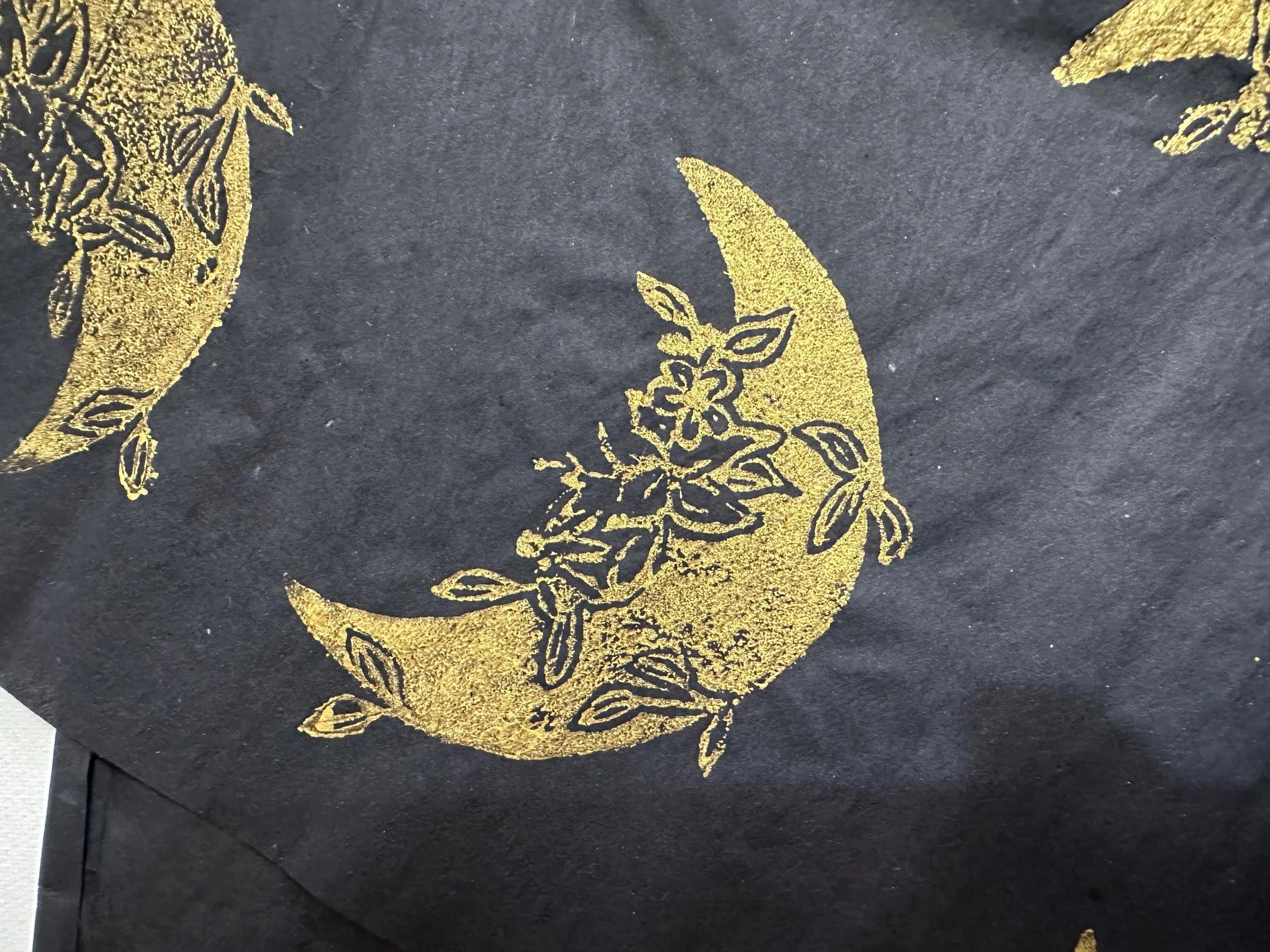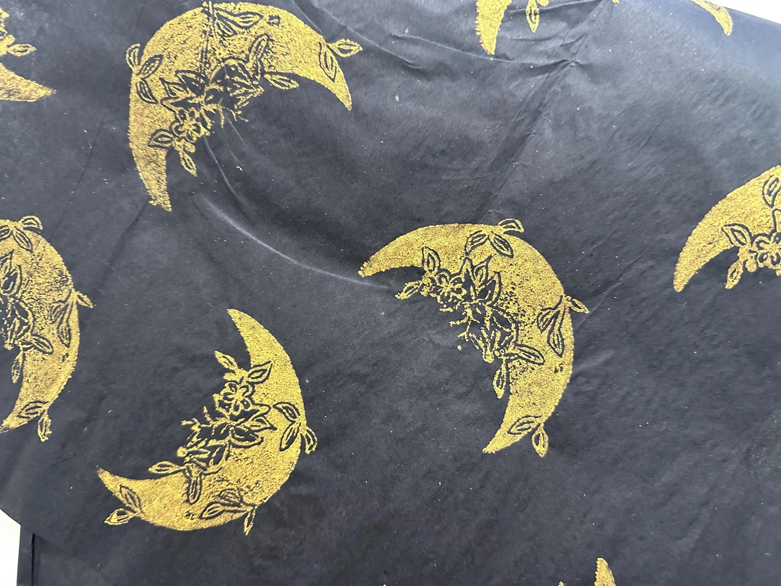 Handprinted with our Flower Moon stamp on a variety of colours.