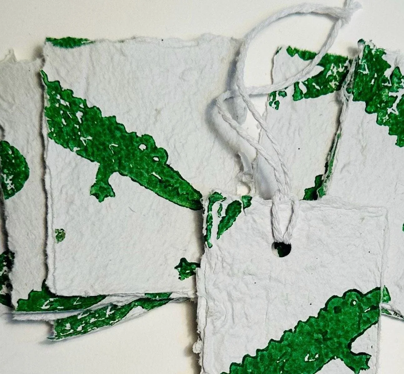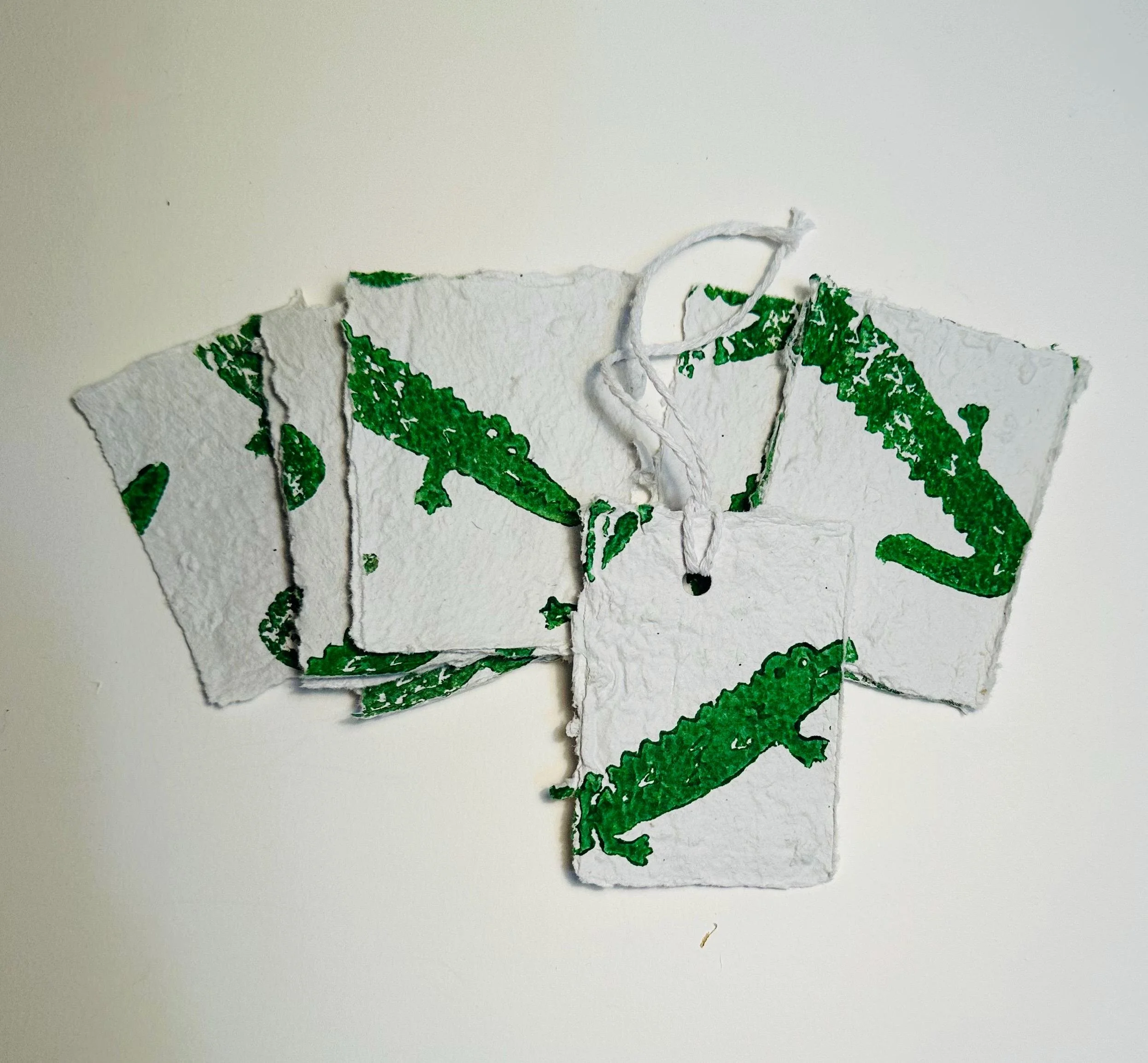Gift tags, handmade paper tags, swing tags, recycled paper| coloured x 4 | crocodile tags