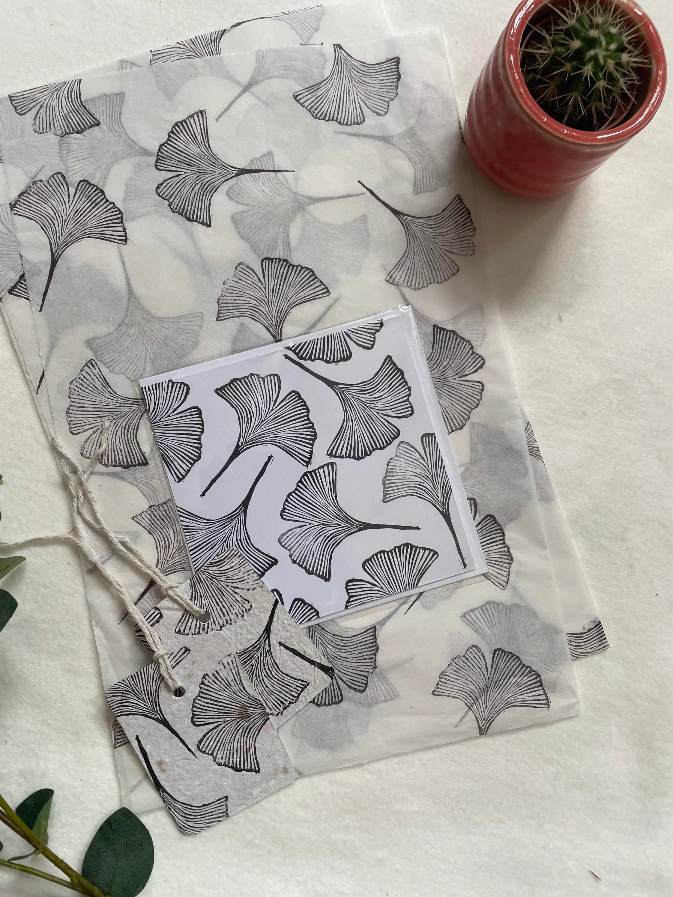 Gift wrap set | card | Tags | Tissue paper | ginkgo leaf
