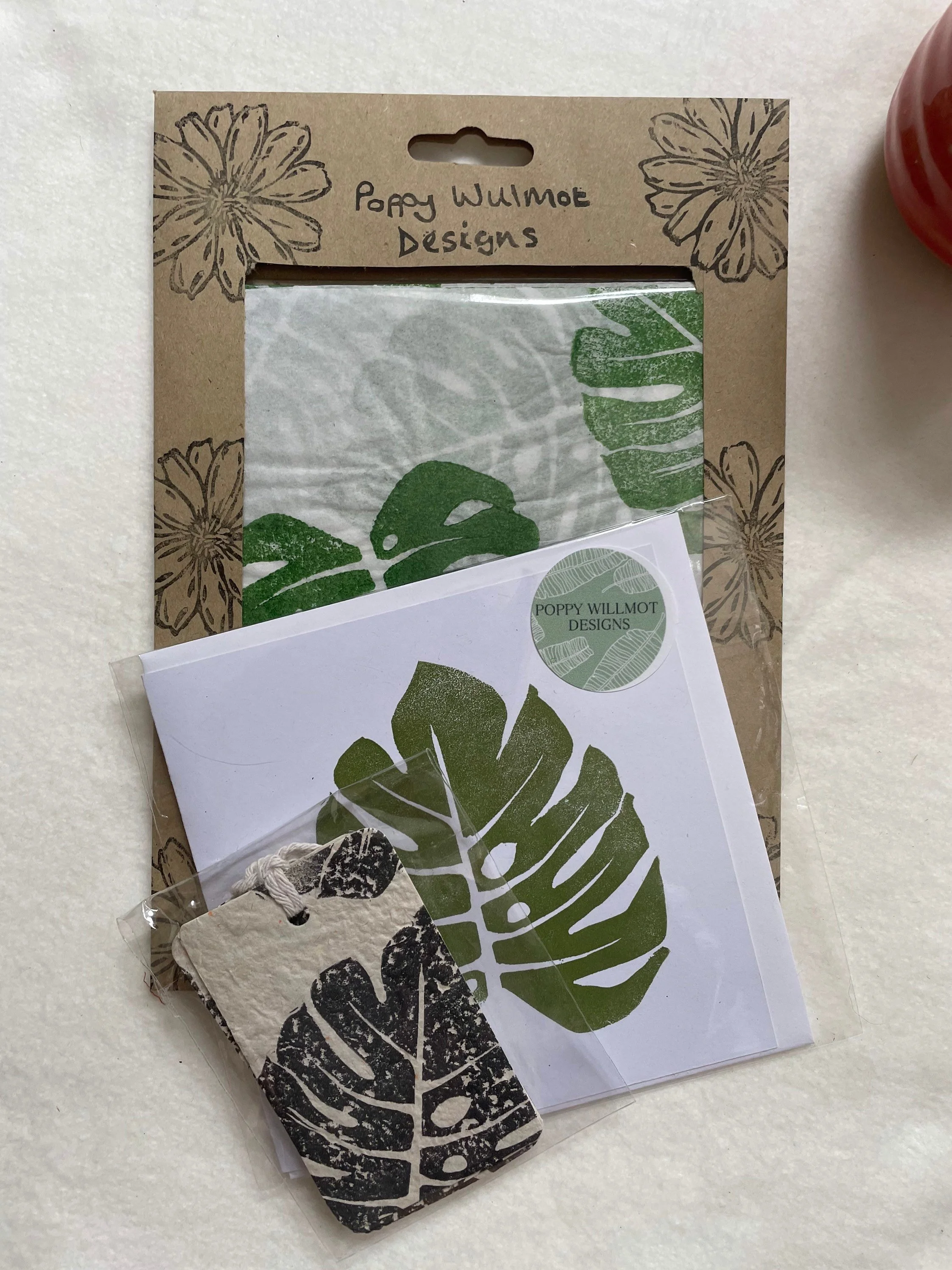 Gift wrap set | card | Tags | Tissue paper | monstera