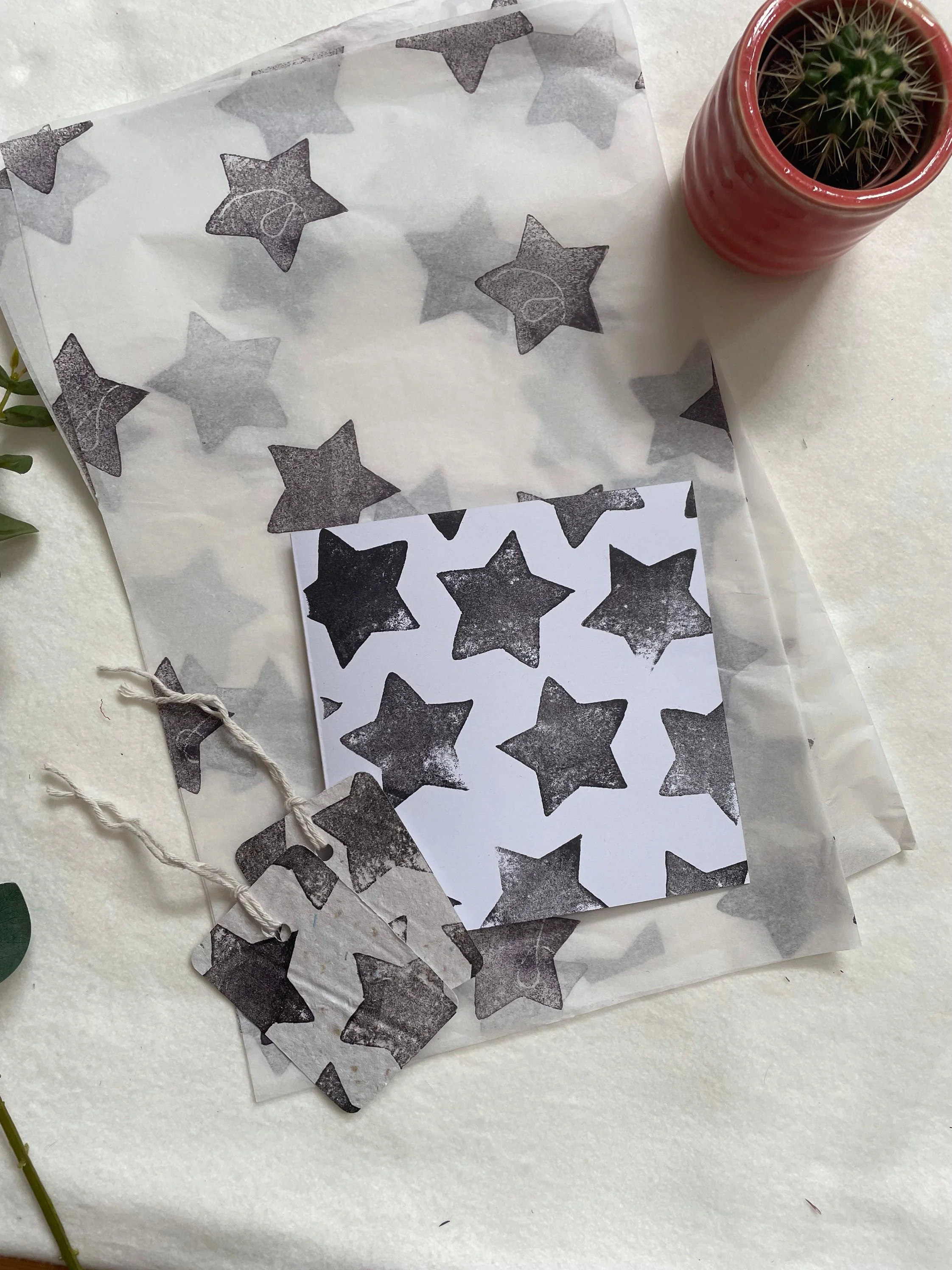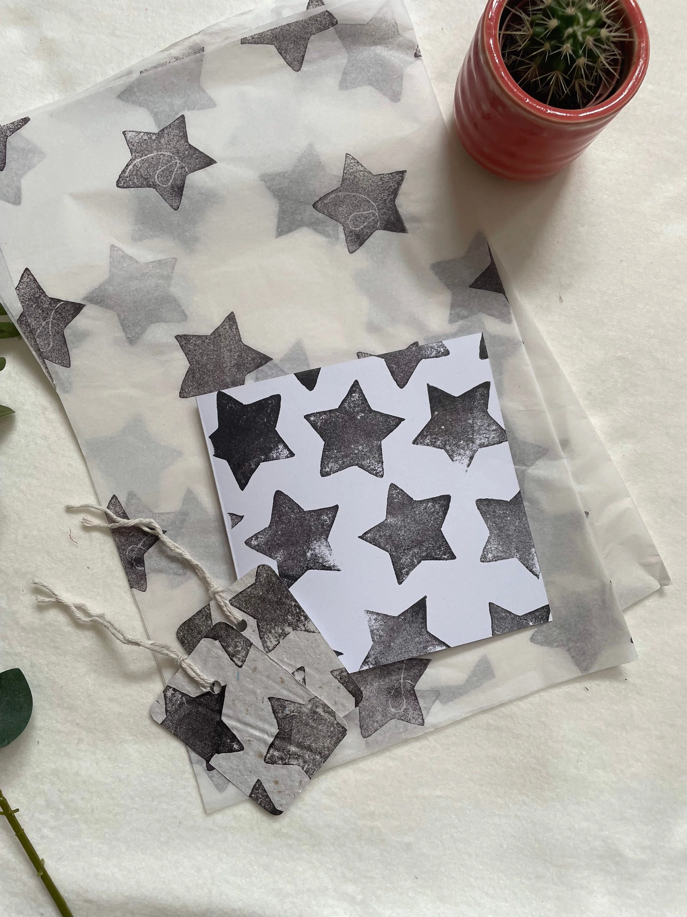 All printed on recycled and compostable materials, printed with eco inks in a repeat pattern.