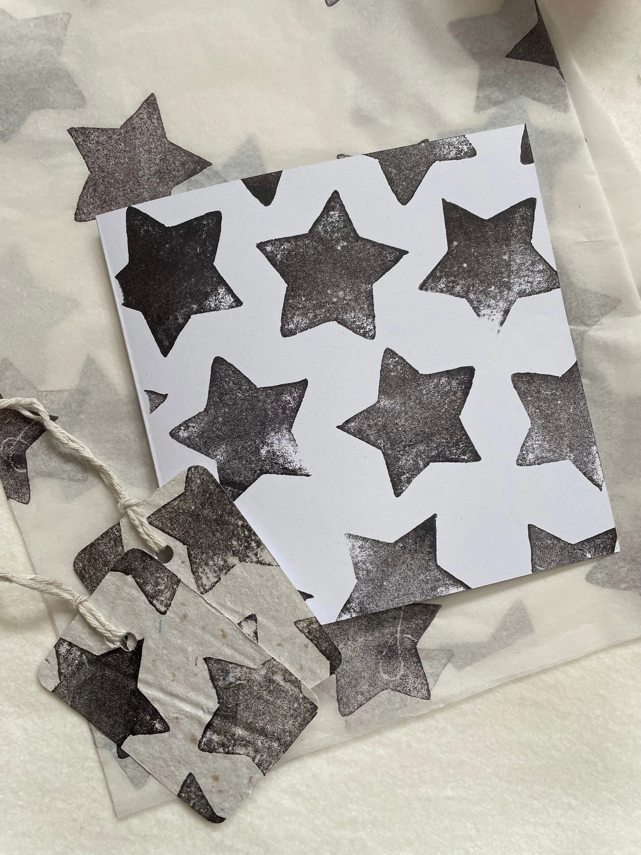 All printed on recycled and compostable materials, printed with eco inks in a repeat pattern.