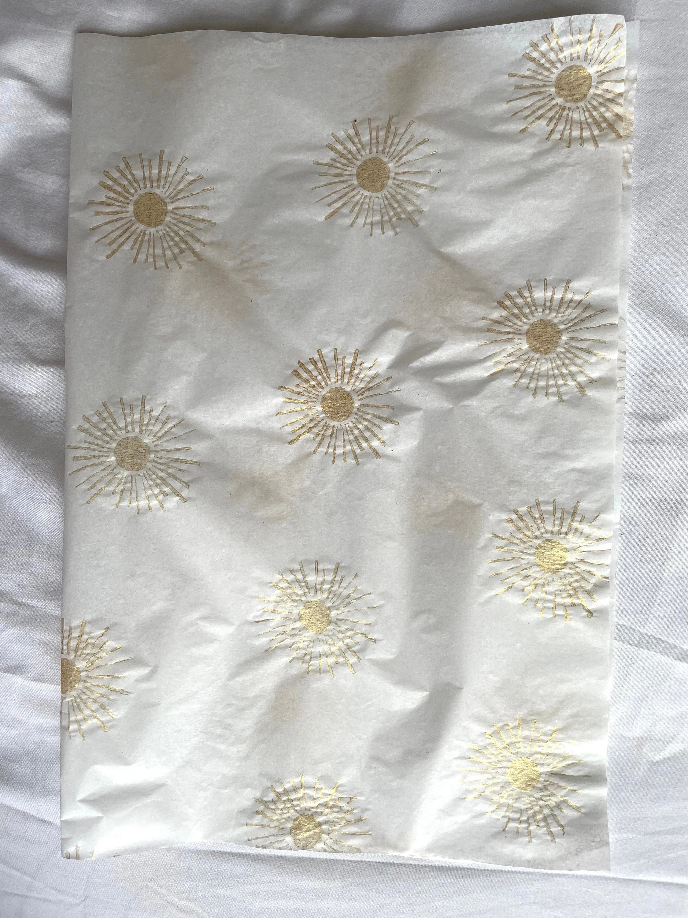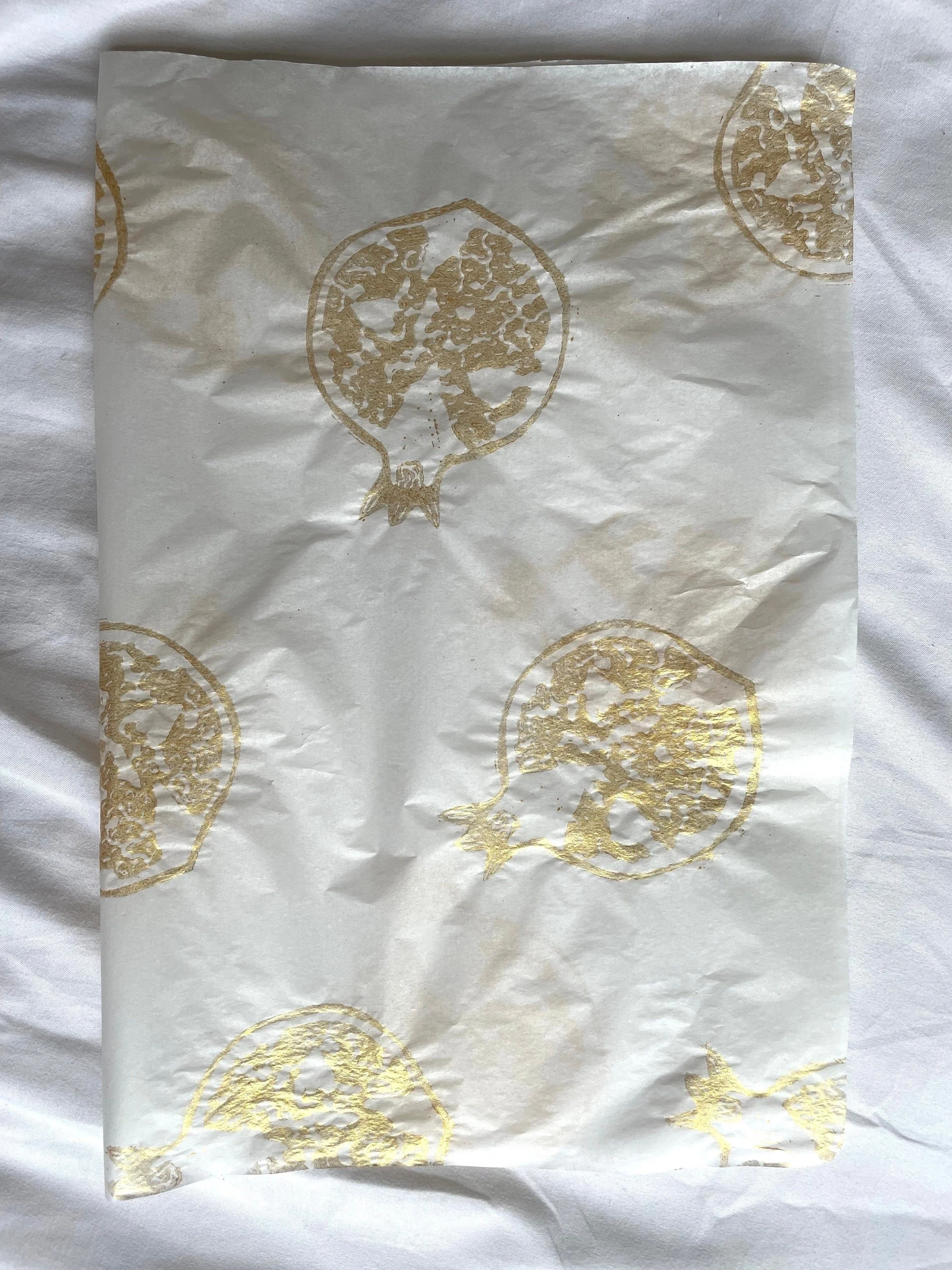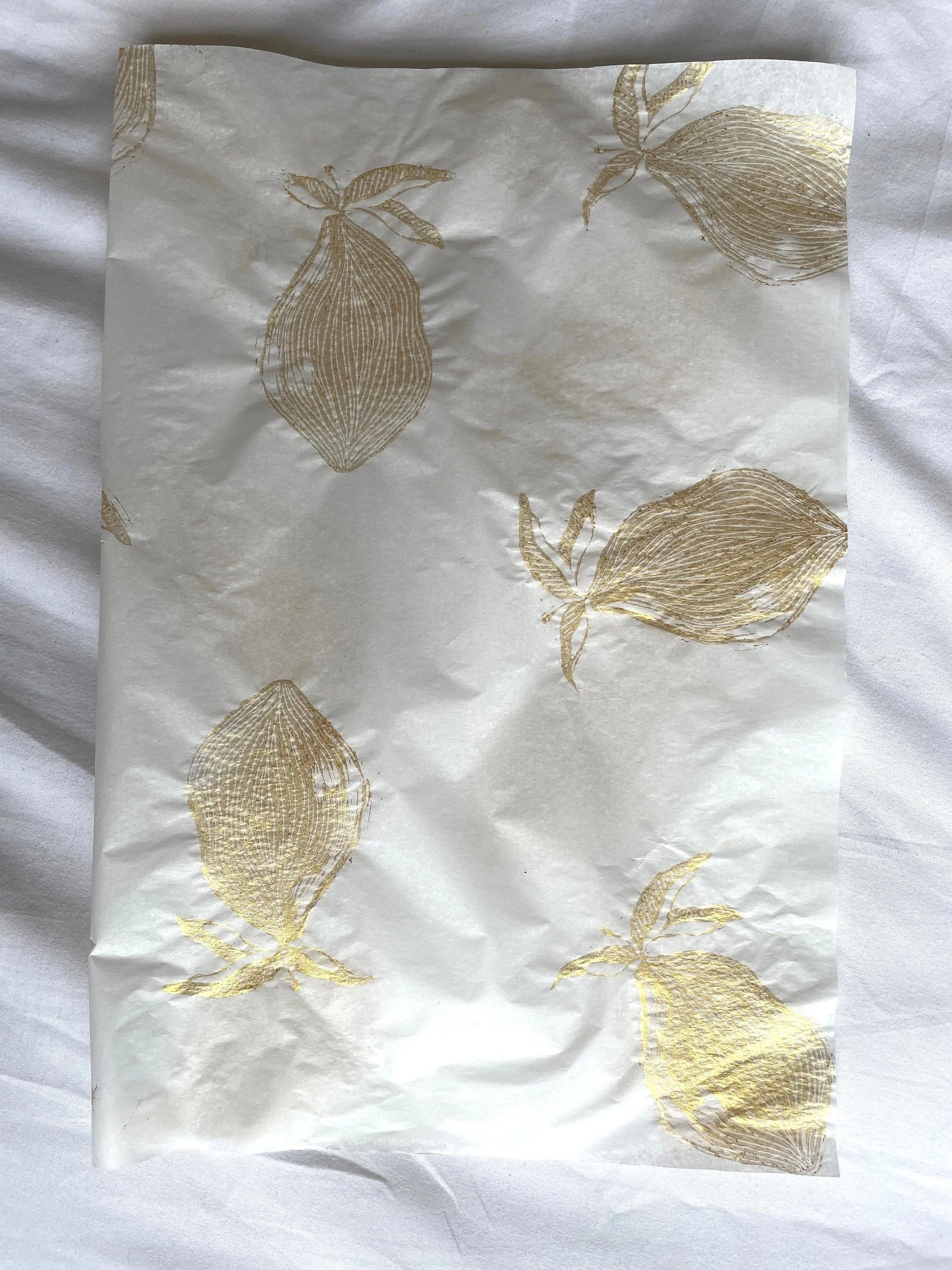 Golden tissue paper | Handprinted Eco Tissue paper, tissue paper, gift wrap, packaging, pretty packaging.