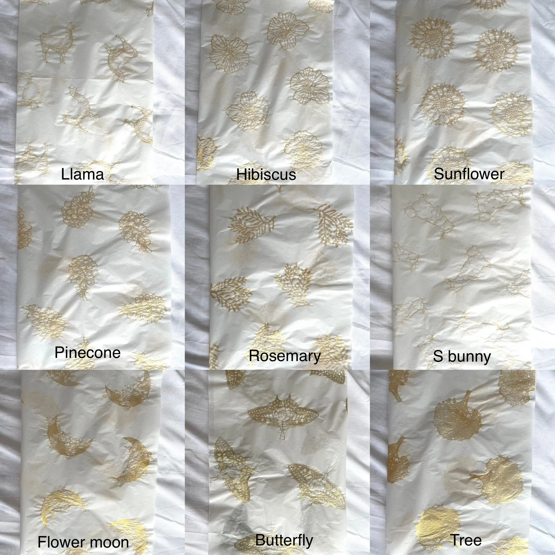 Due to the handmade nature of our tissue paper each piece will be unique in it pattern placement. The overall look will remain the same.
