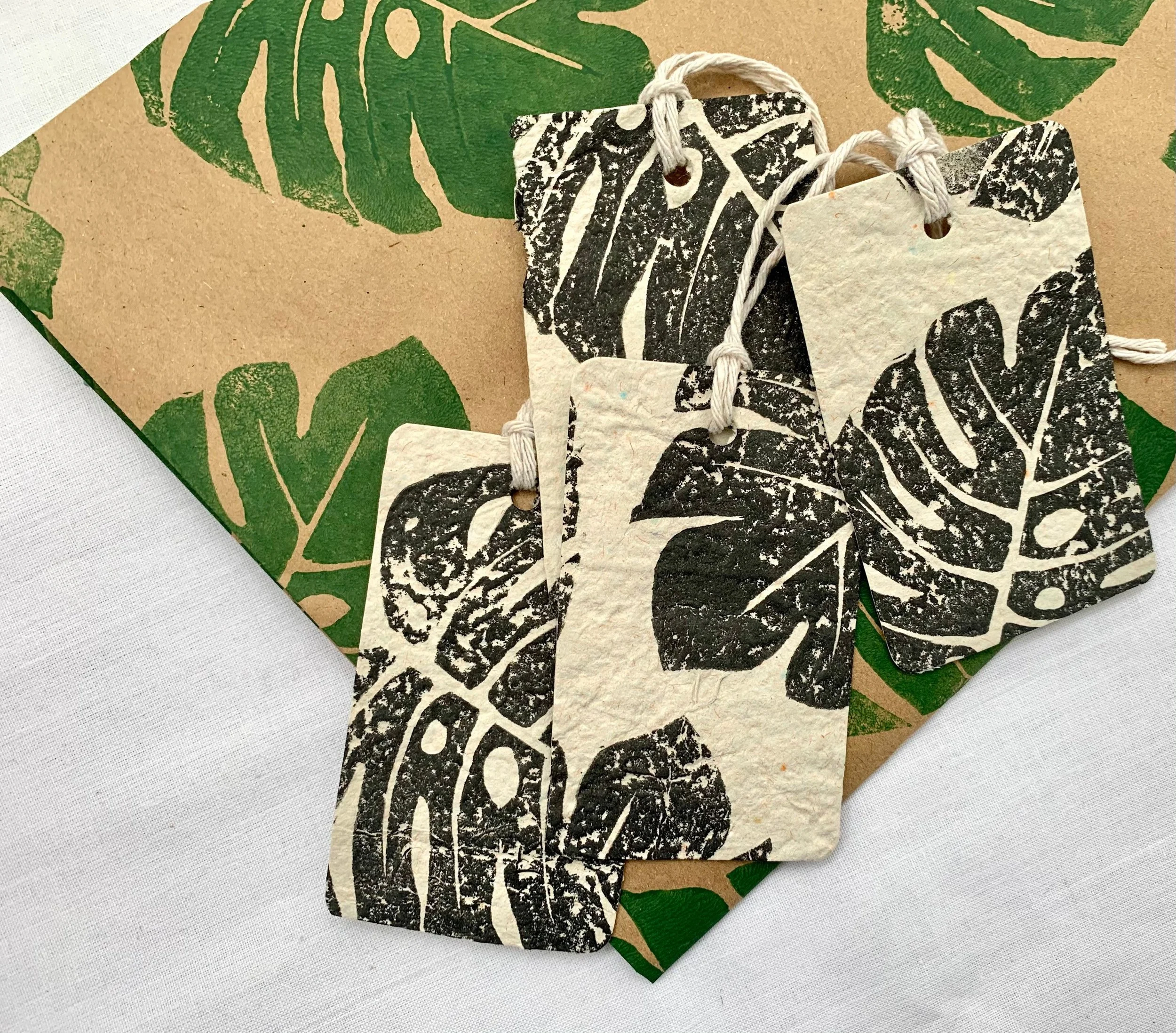 Handmade paper tags, gift tags, swing tags, monstera leaf