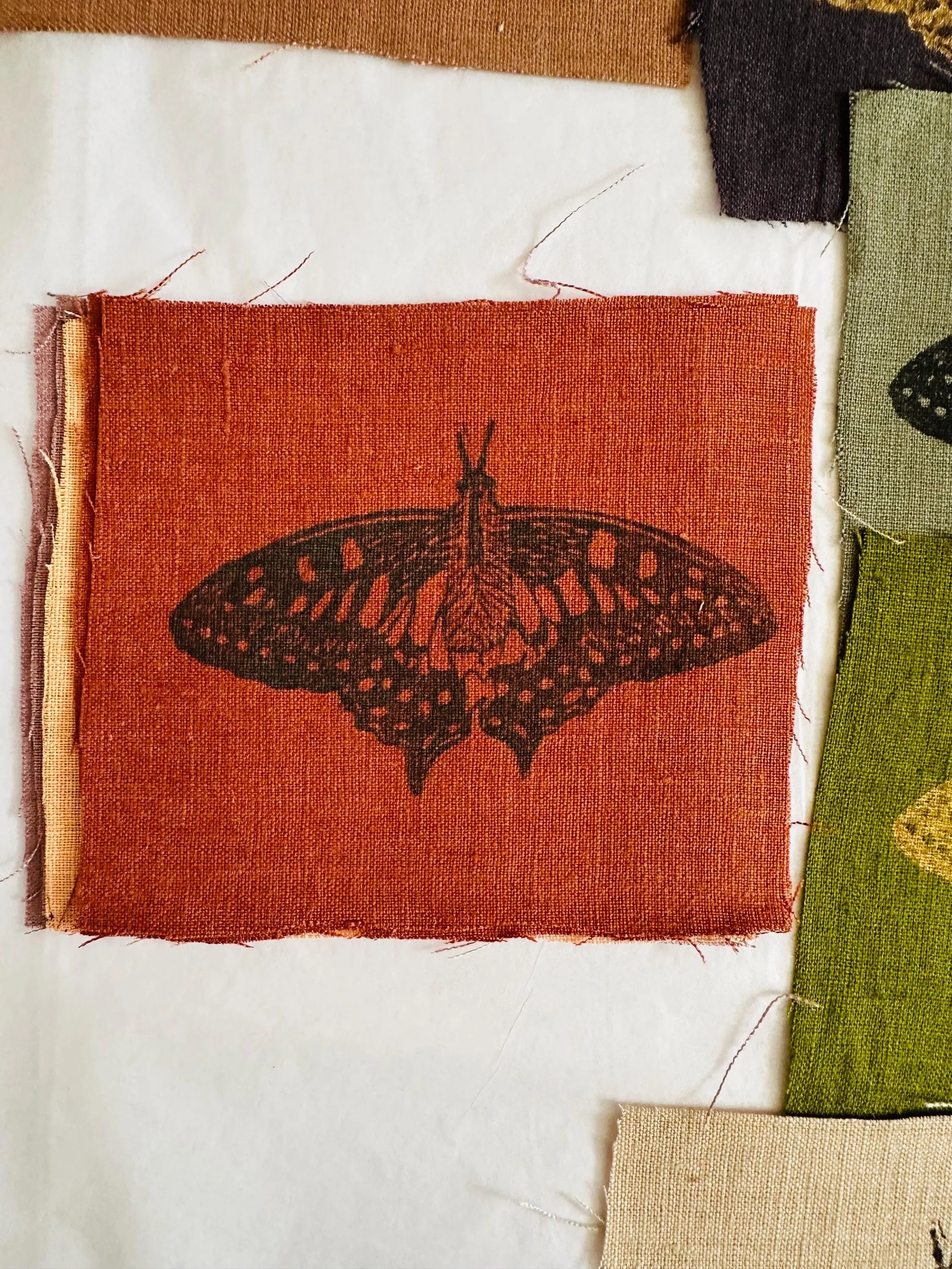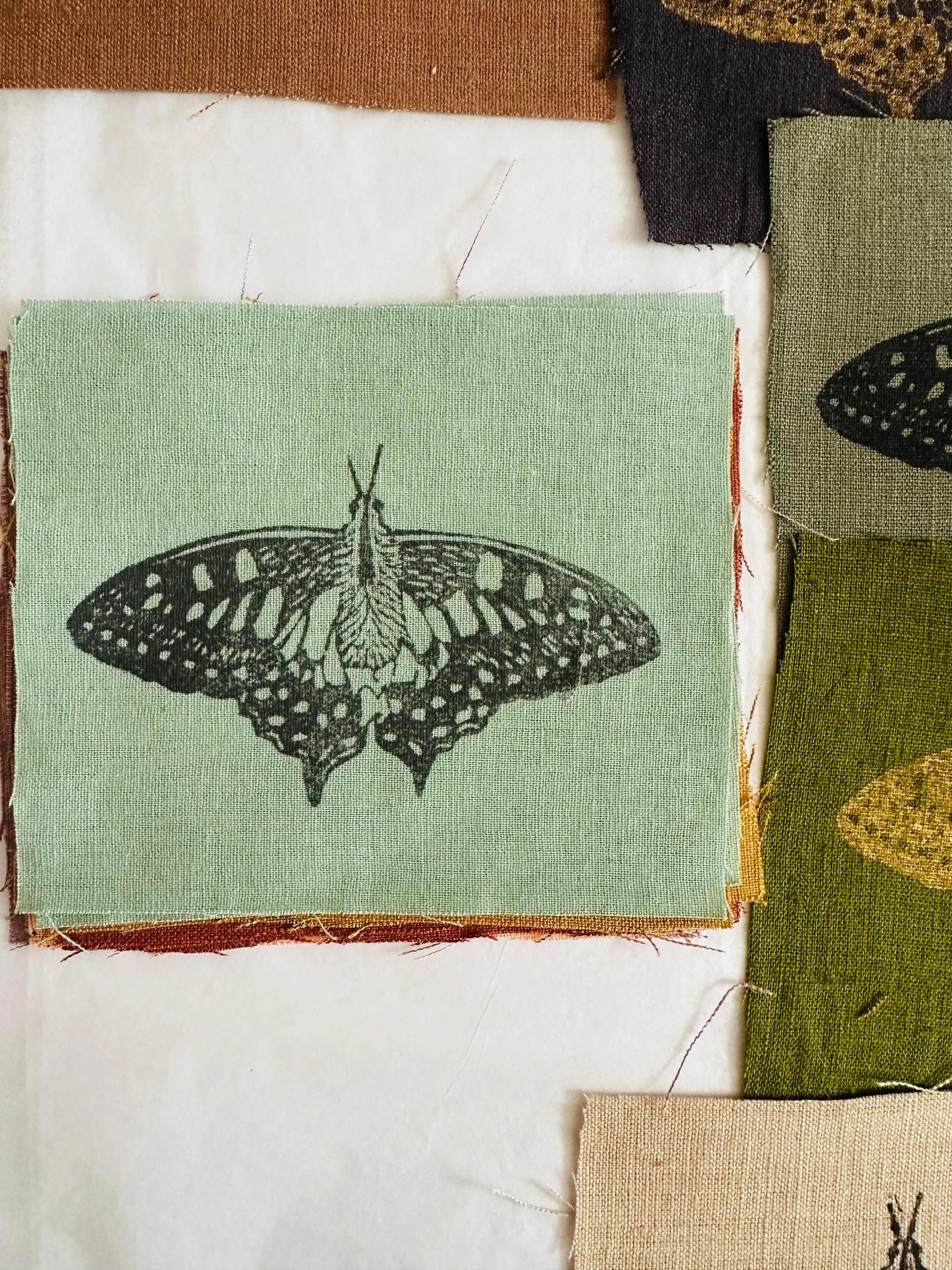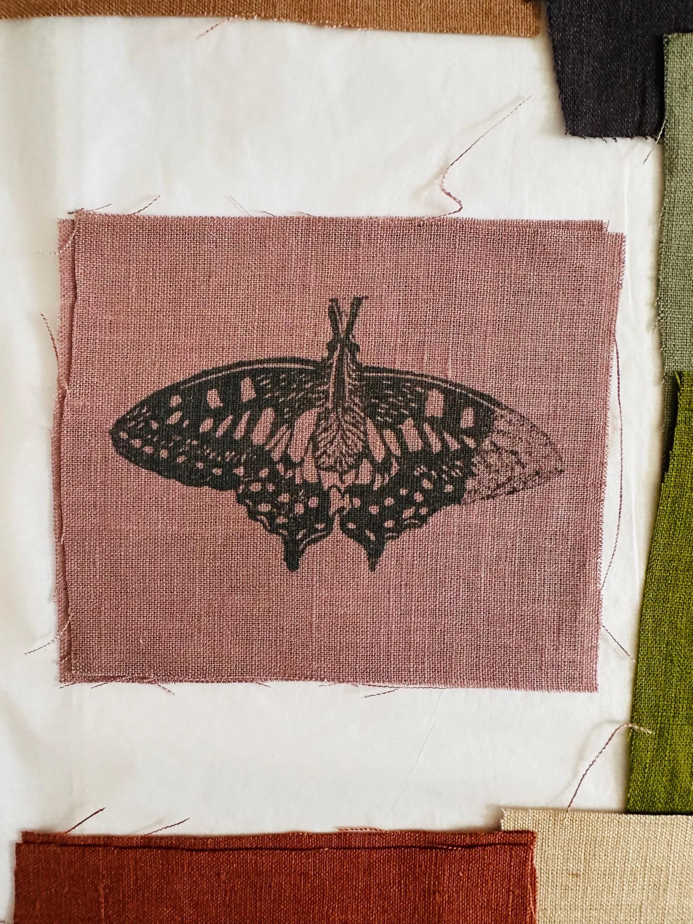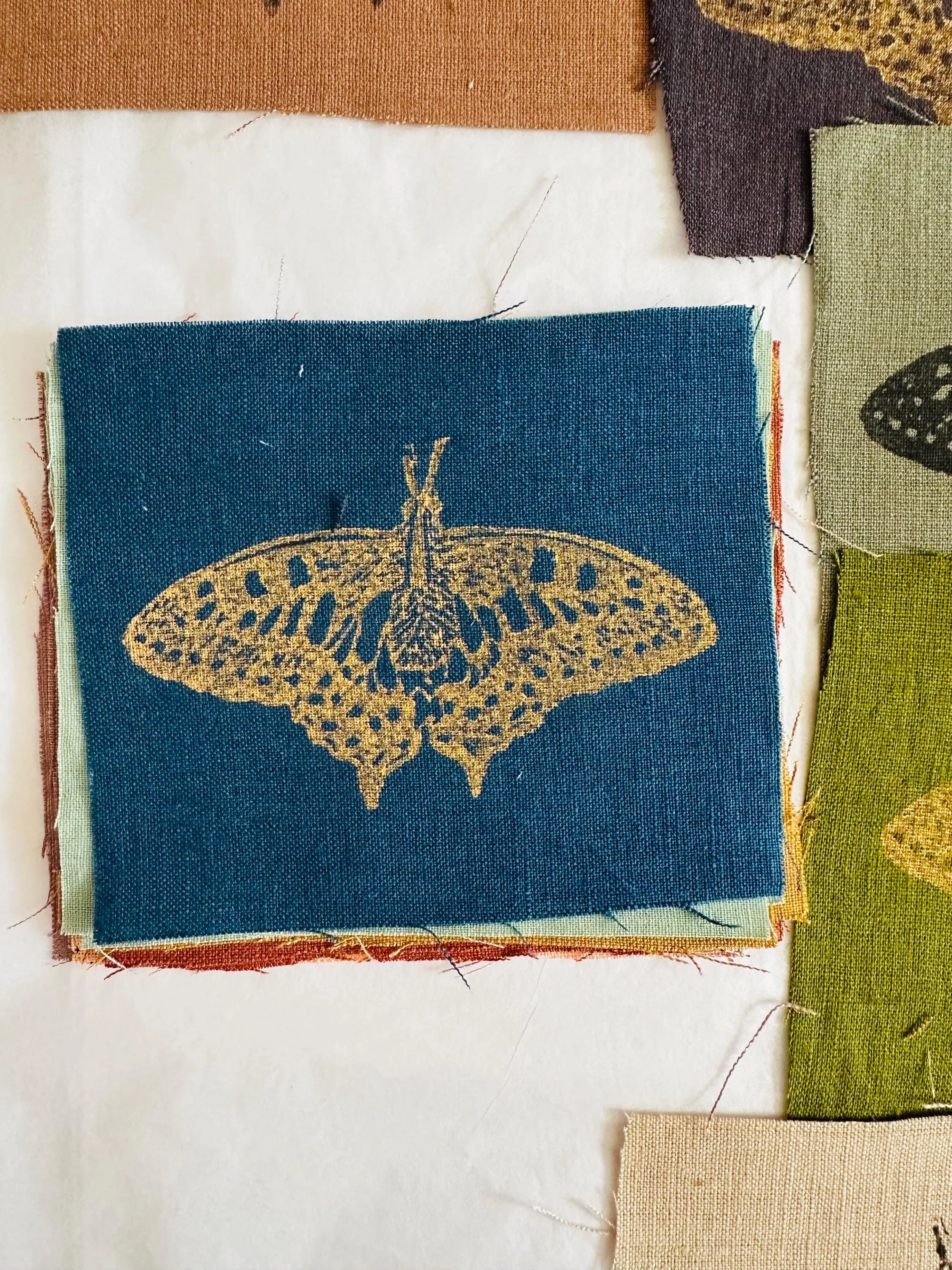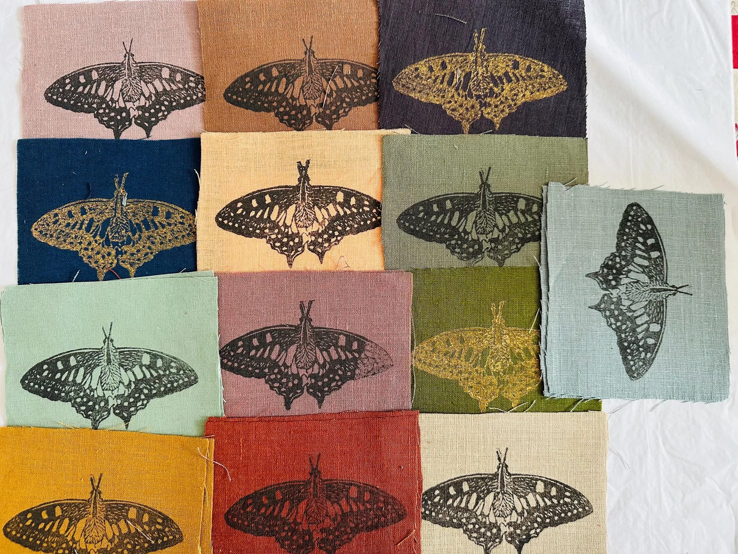 Linen patches, Butterfly,Moth, Lino print patches, fabric patch, clothing patch, quilting, textile crafts, cottage core