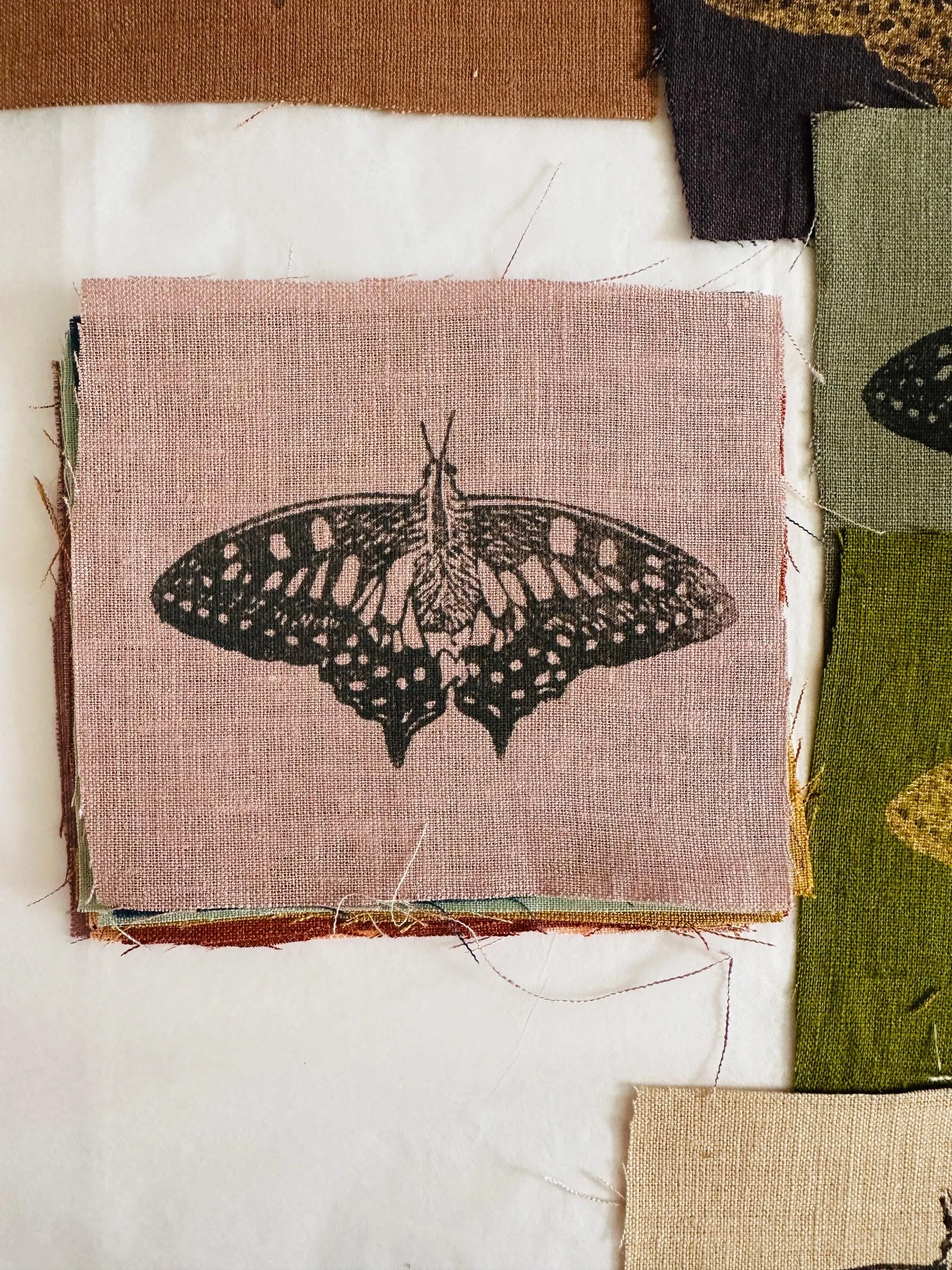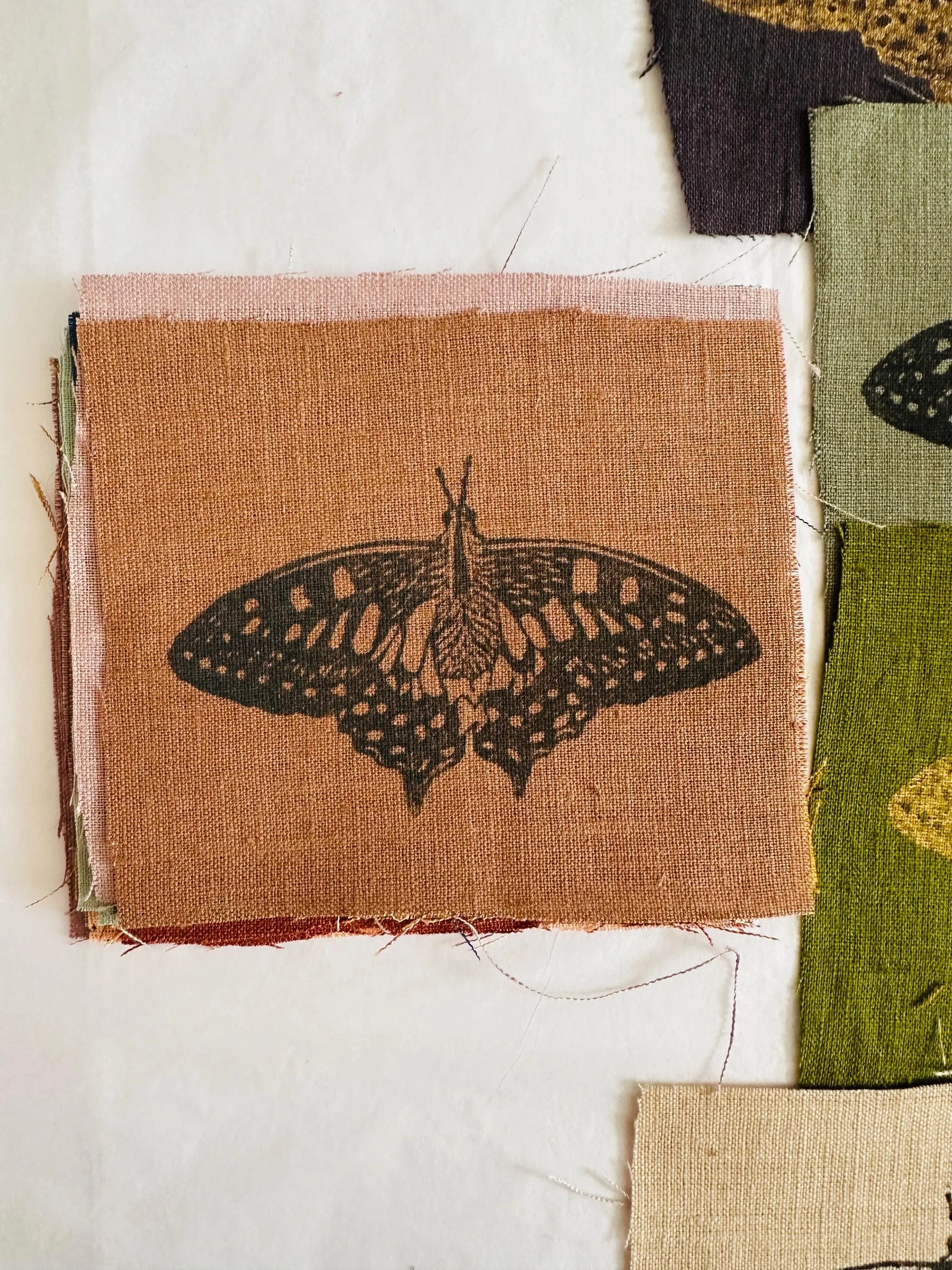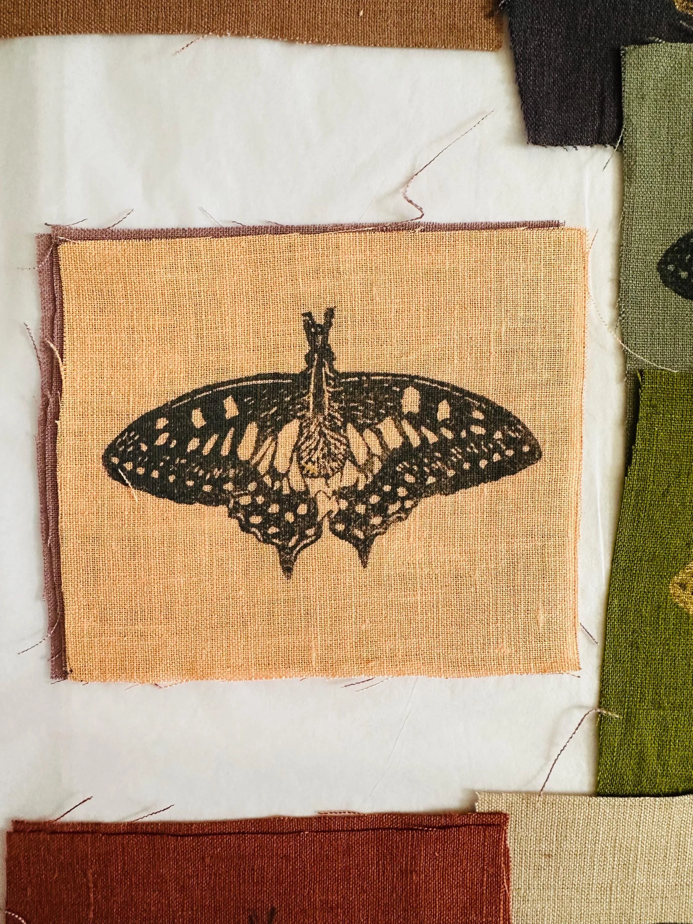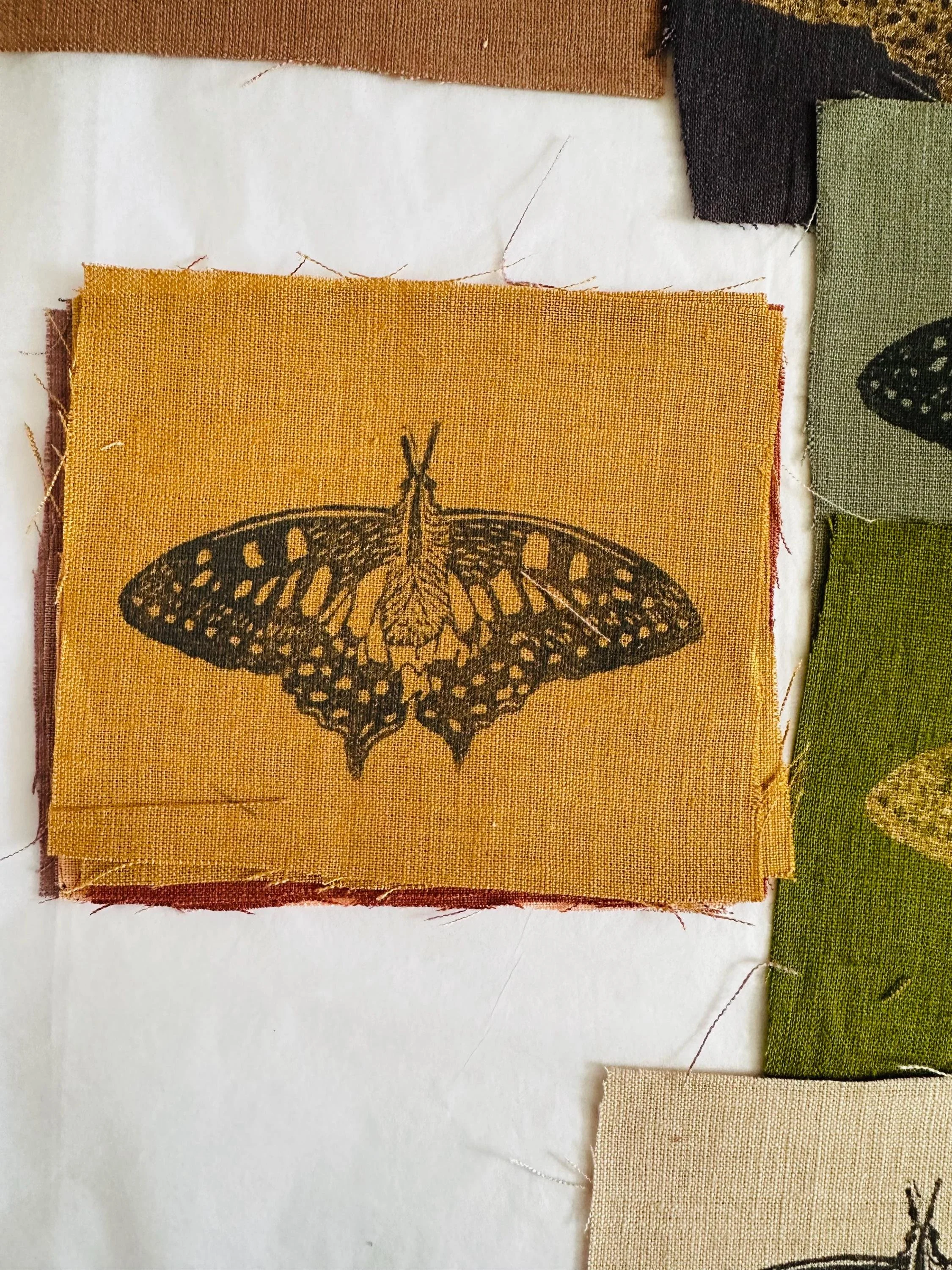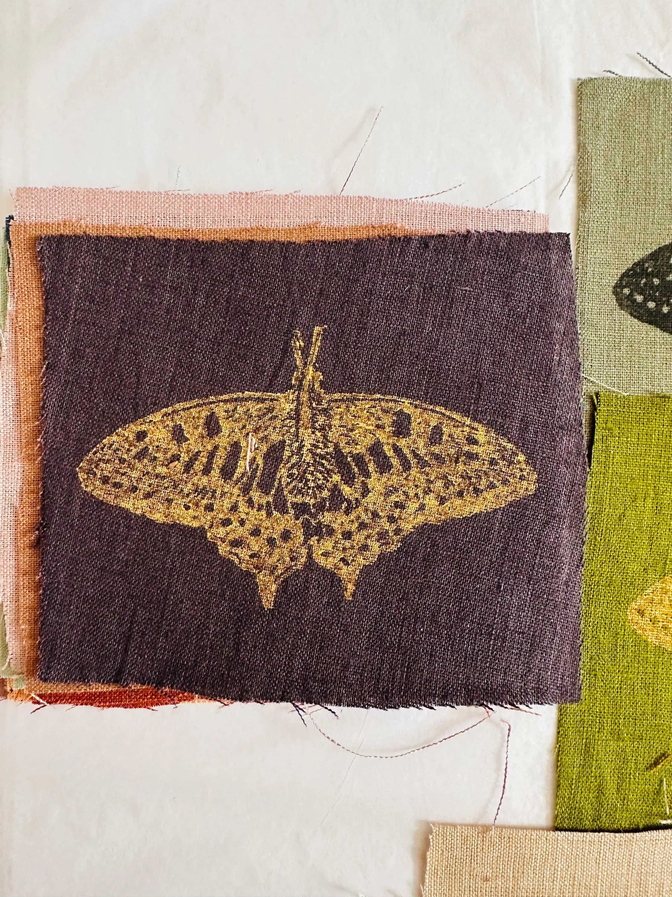 Linen patches, Butterfly,Moth, Lino print patches, fabric patch, clothing patch, quilting, textile crafts, cottage core