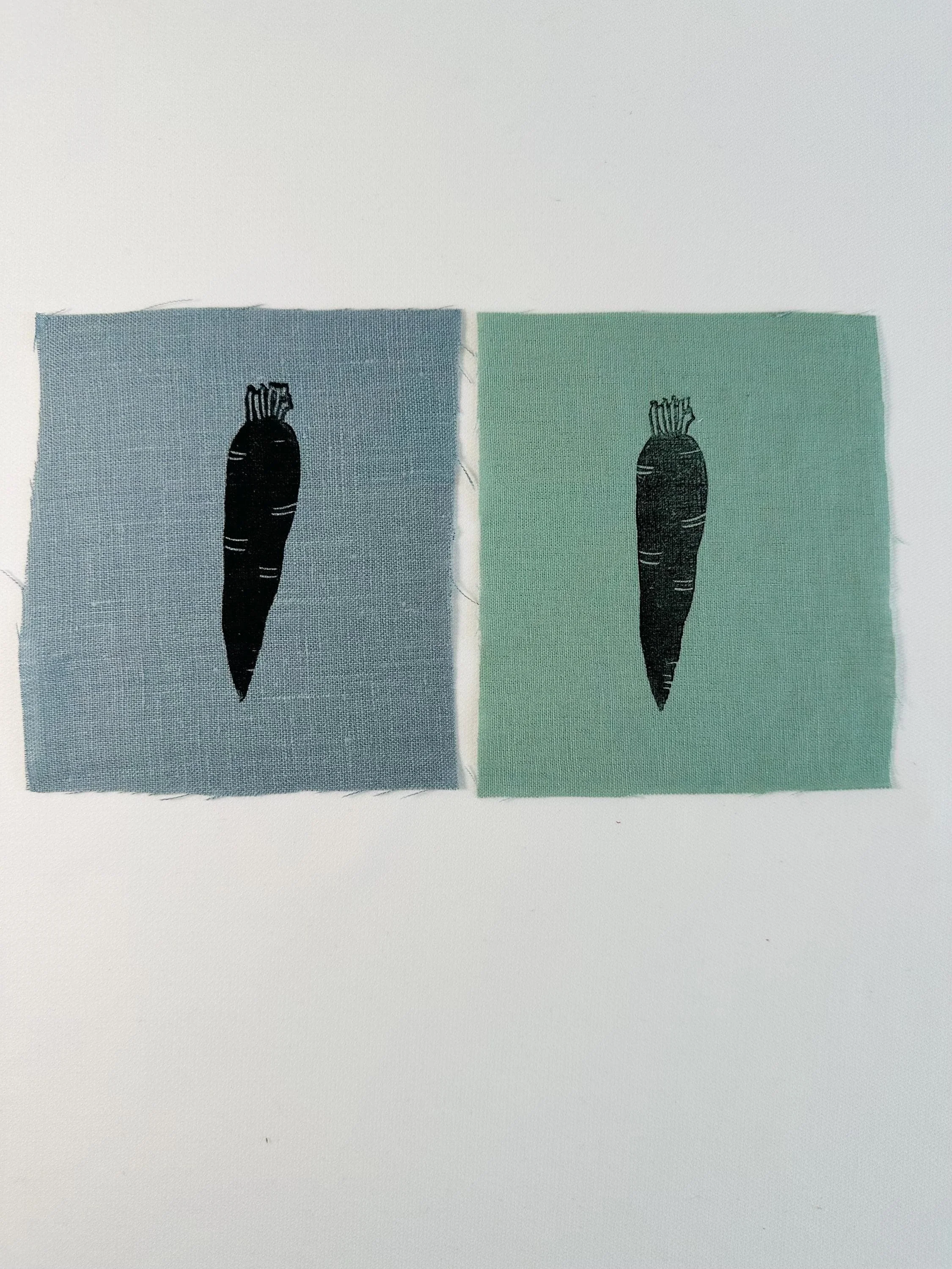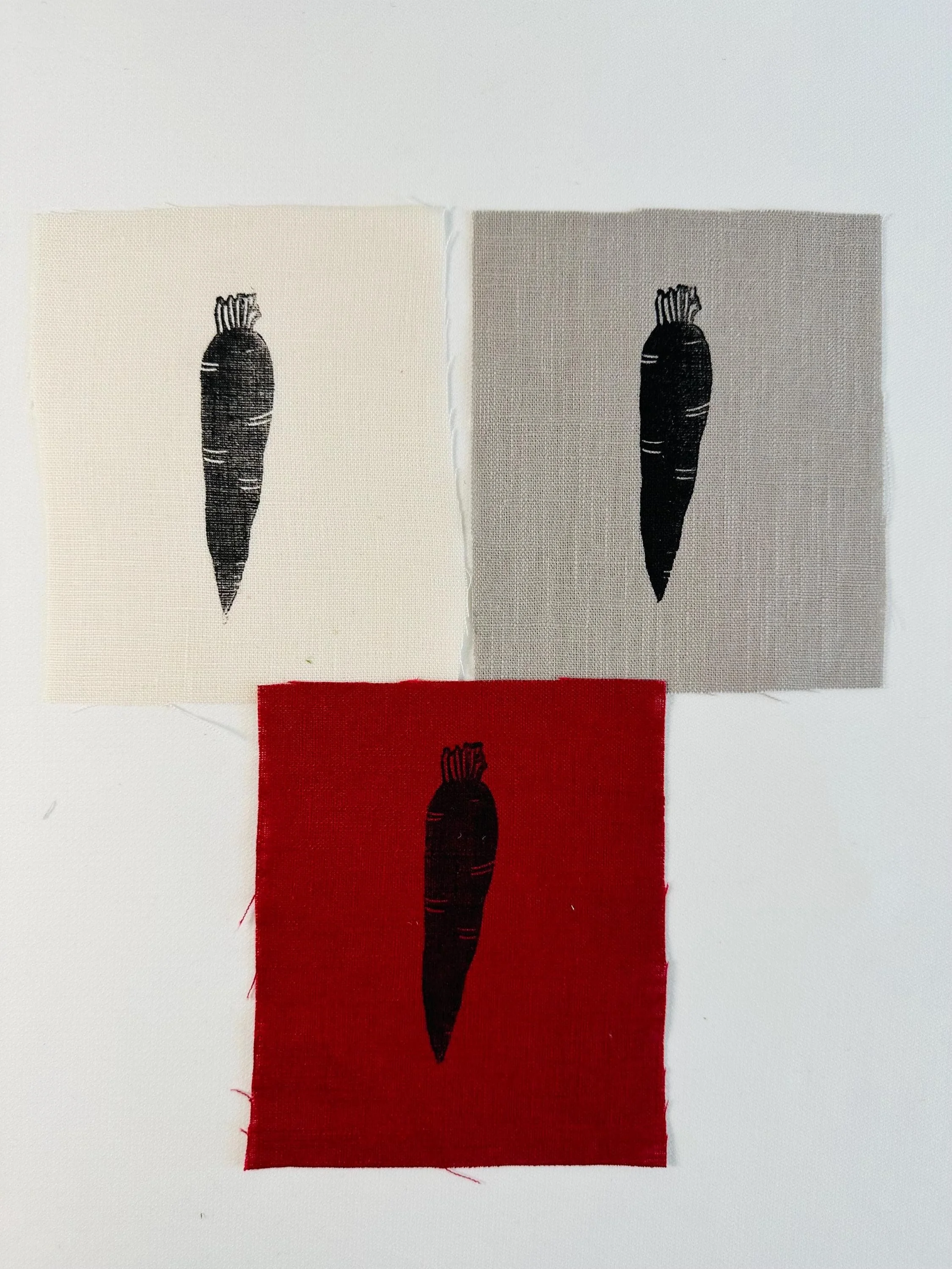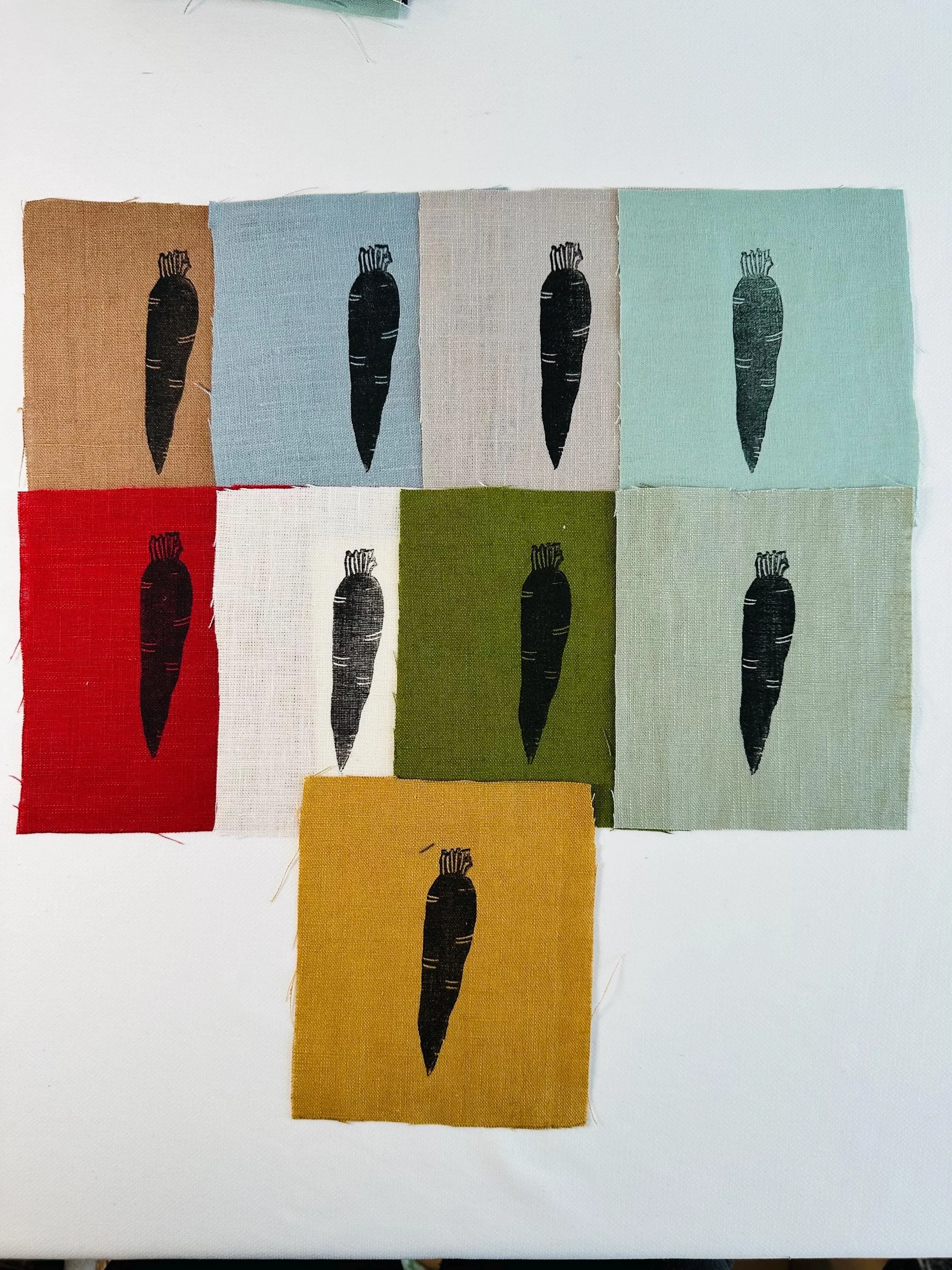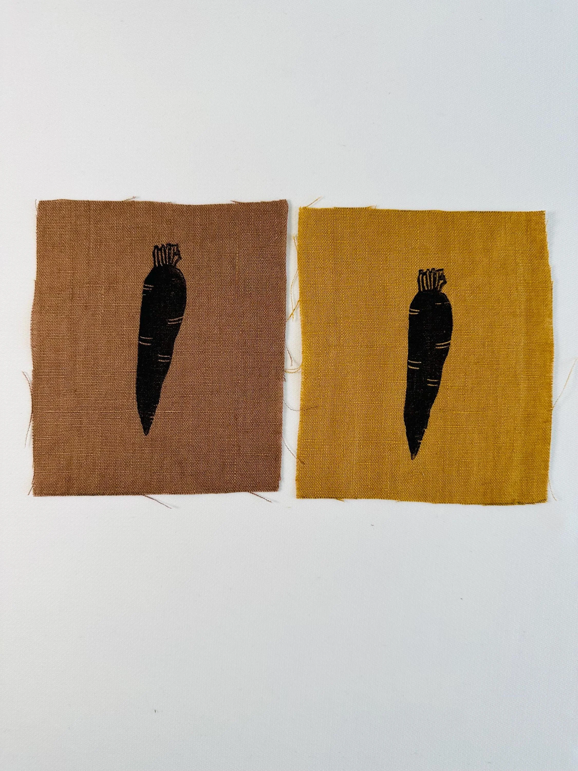 Linen patches, carrot Lino print patches, fabric patch, clothing patch, quilting, textile crafts, cottage core