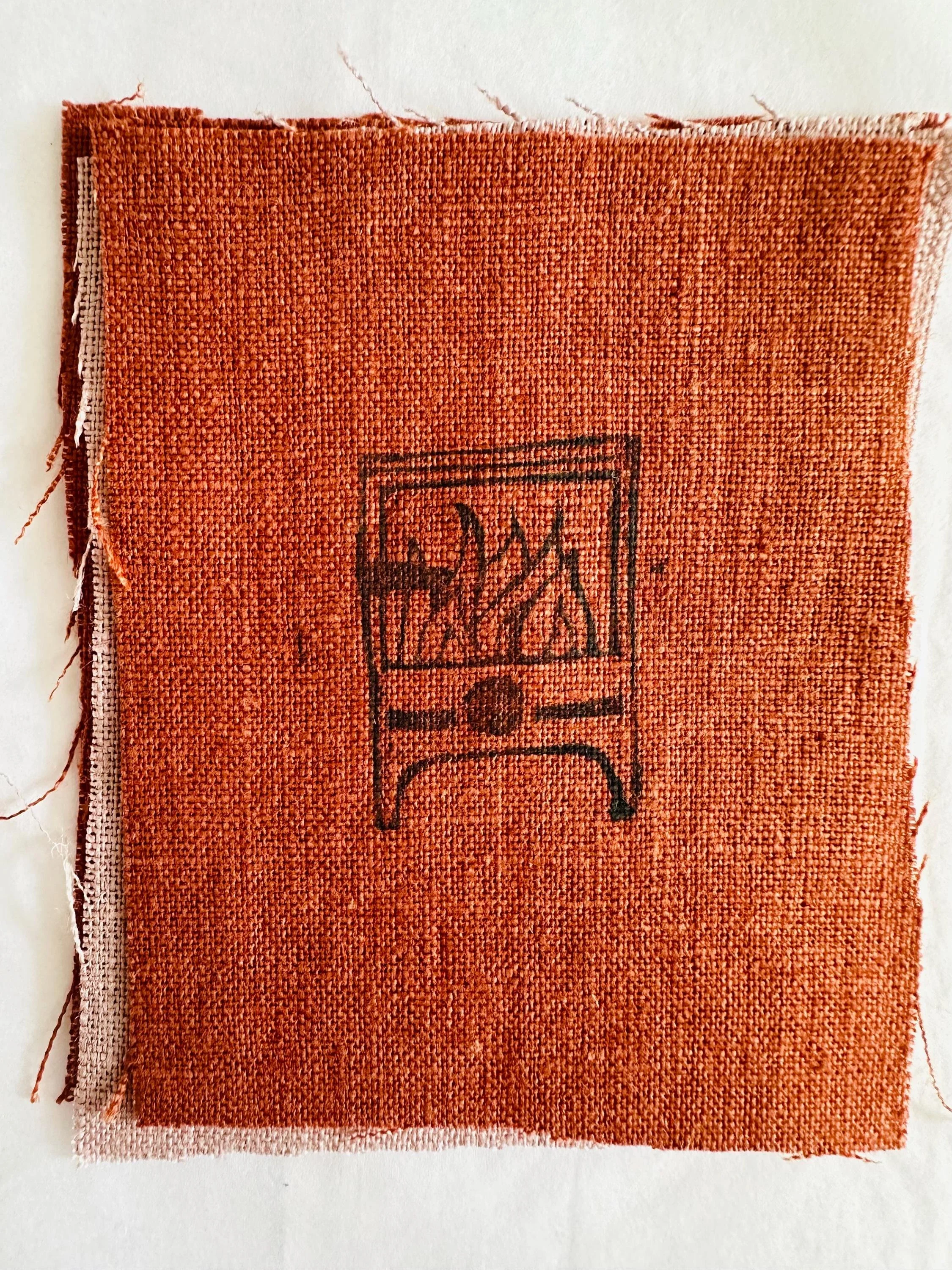 What makes a Lino print patch The design has been carved on lino and then lovingly hand printed by myself onto fabric with fabric ink. I use mainly scraps, which is why the colours are limited with each round of printing.