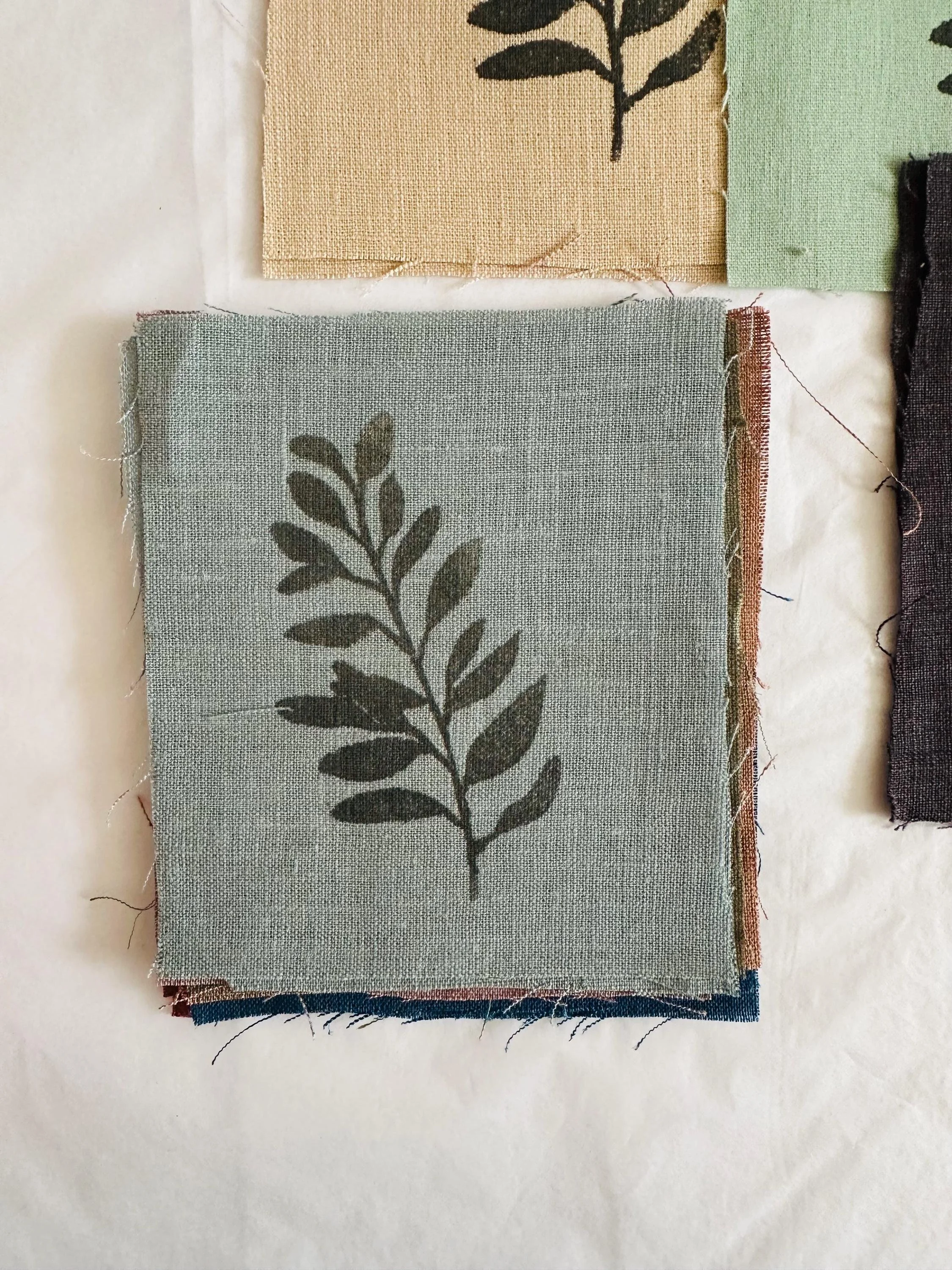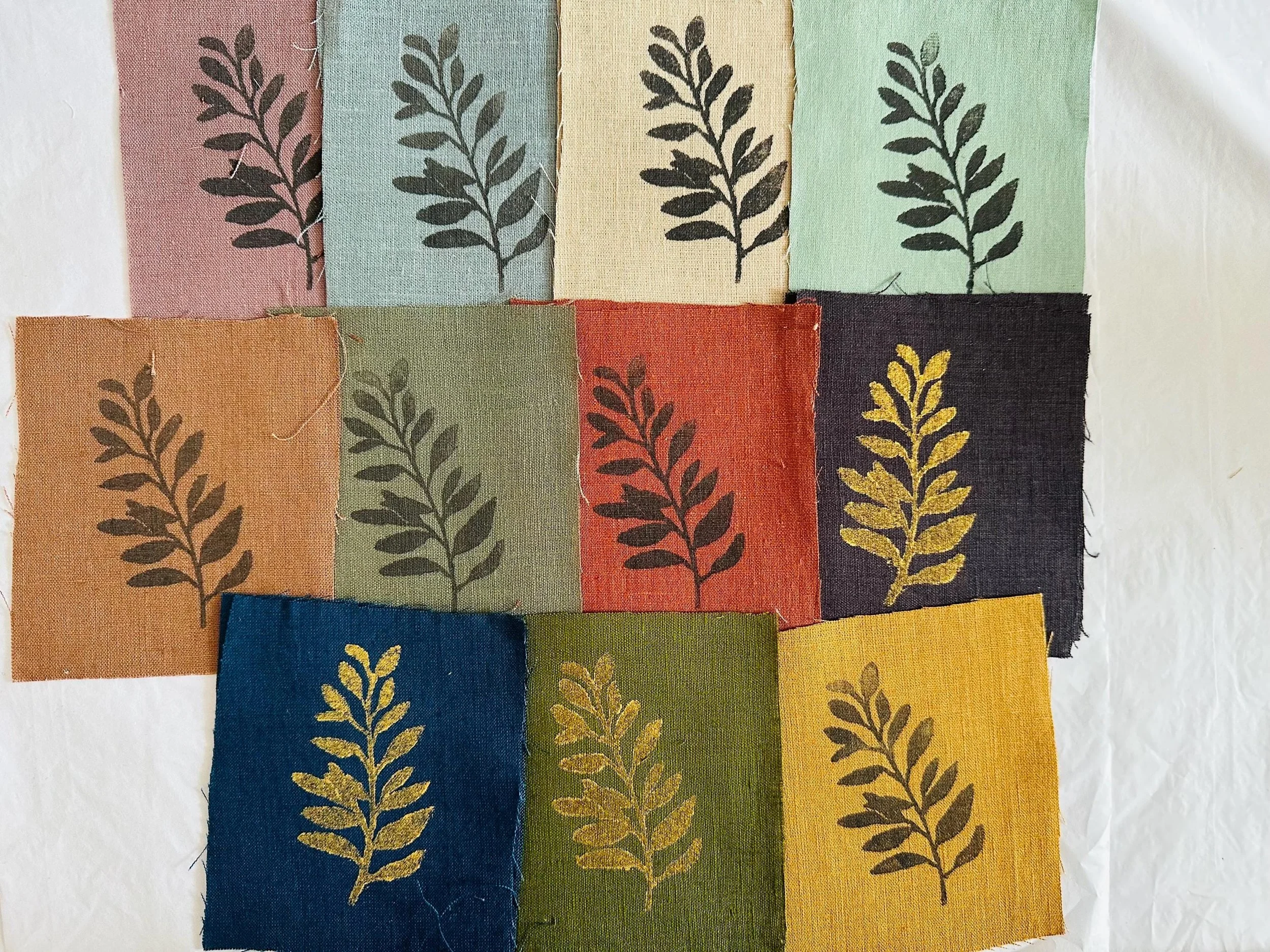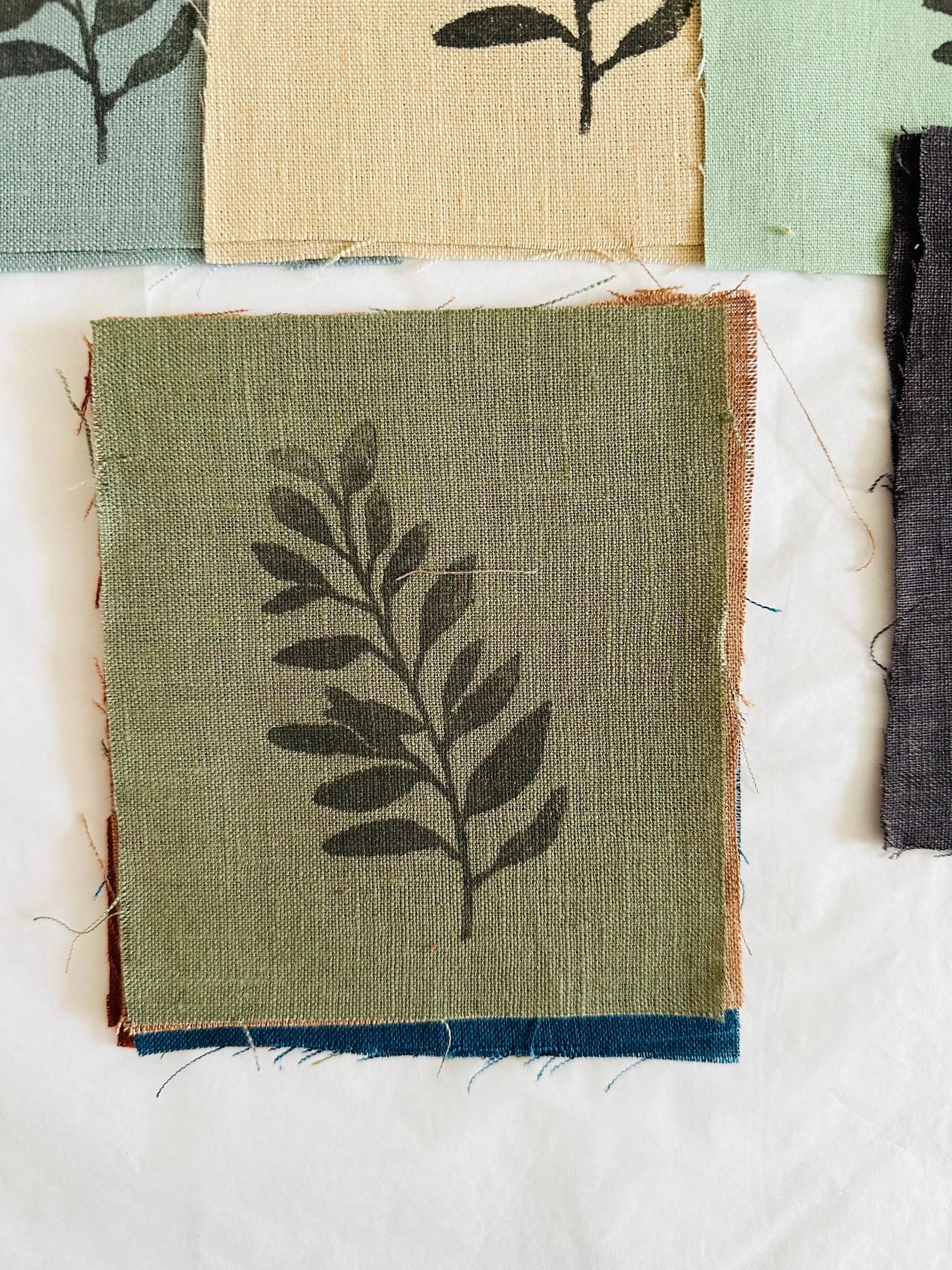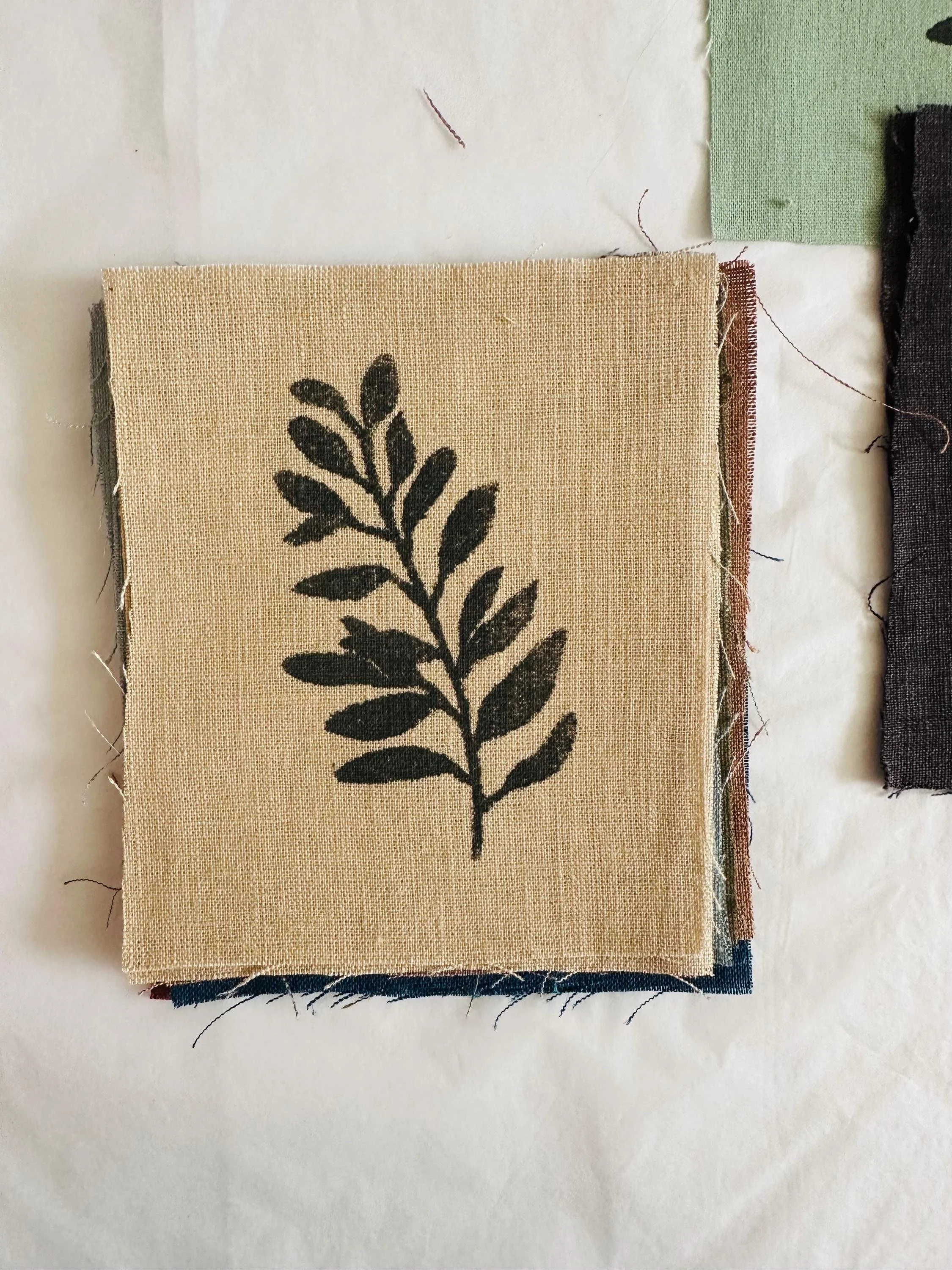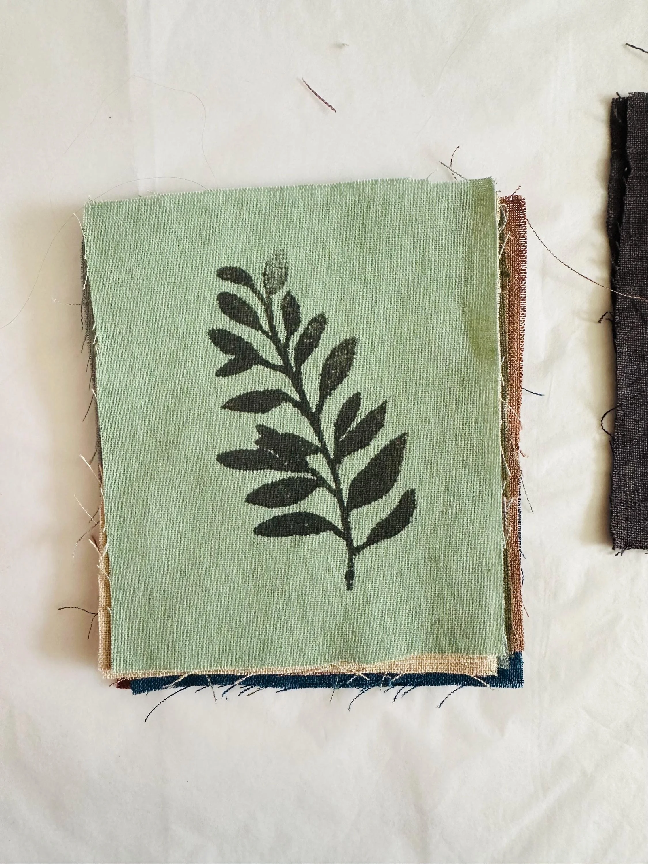 Linen patches, olive branch, Lino print patches, fabric patch, clothing patch, quilting, textile crafts, cottage core