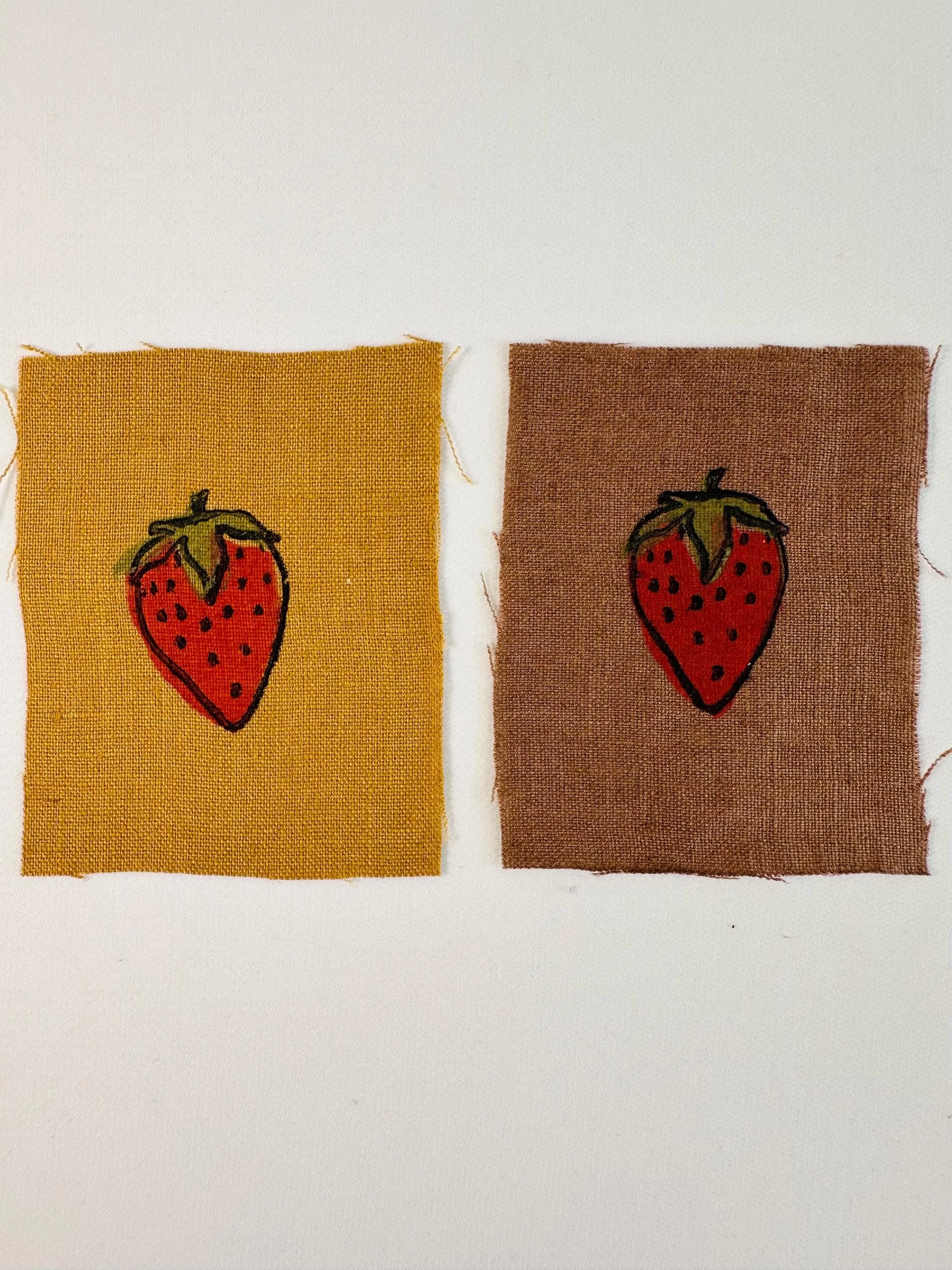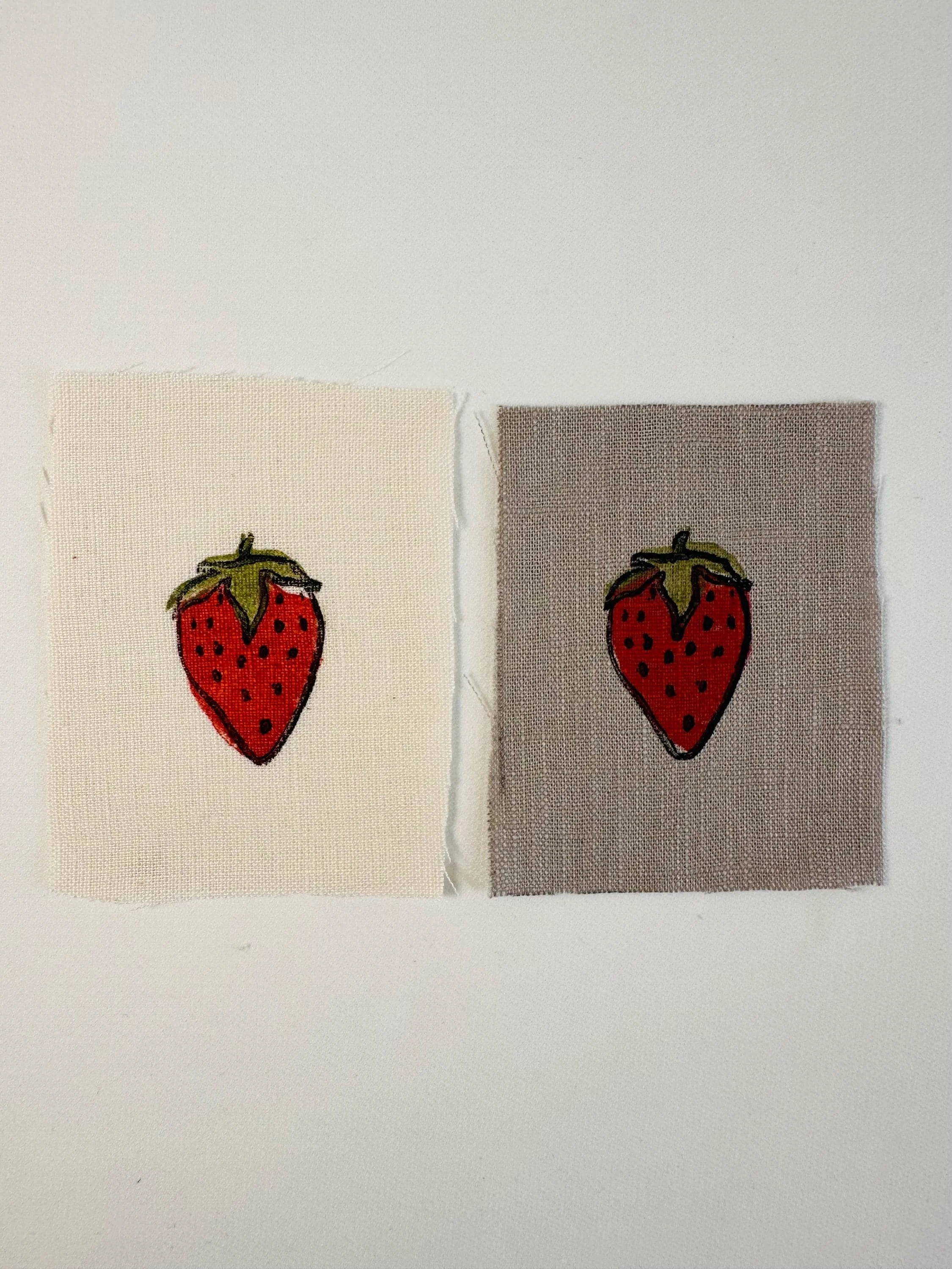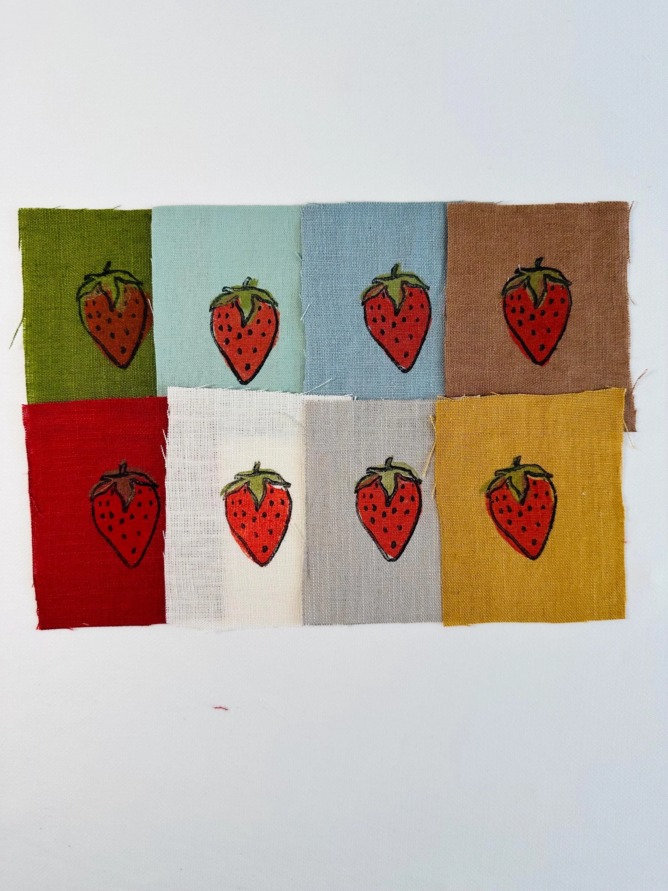 Linen patches, strawberry , Lino print patches, fabric patch, clothing patch, quilting, textile crafts, cottage core