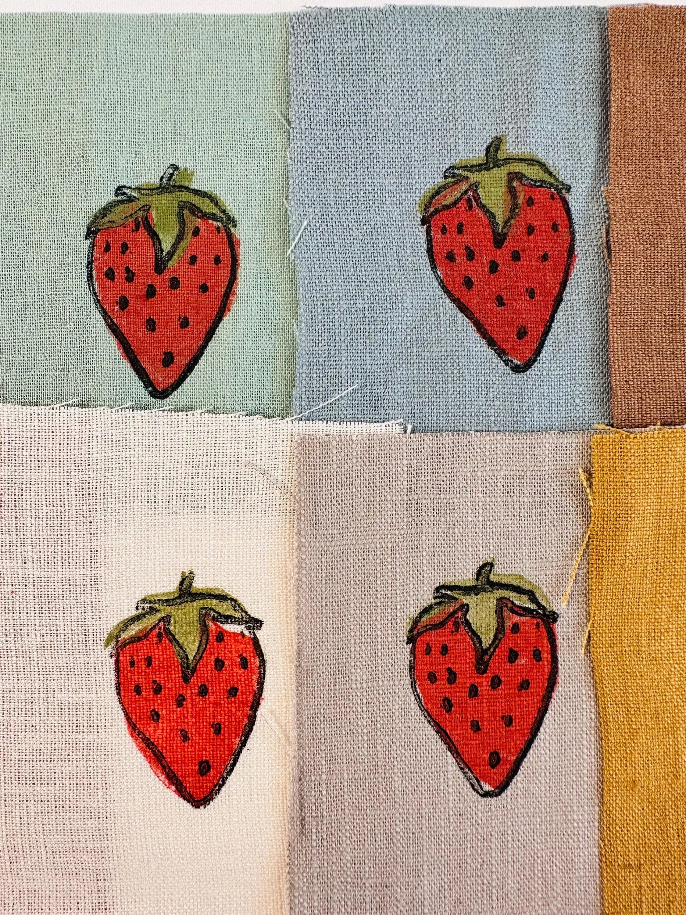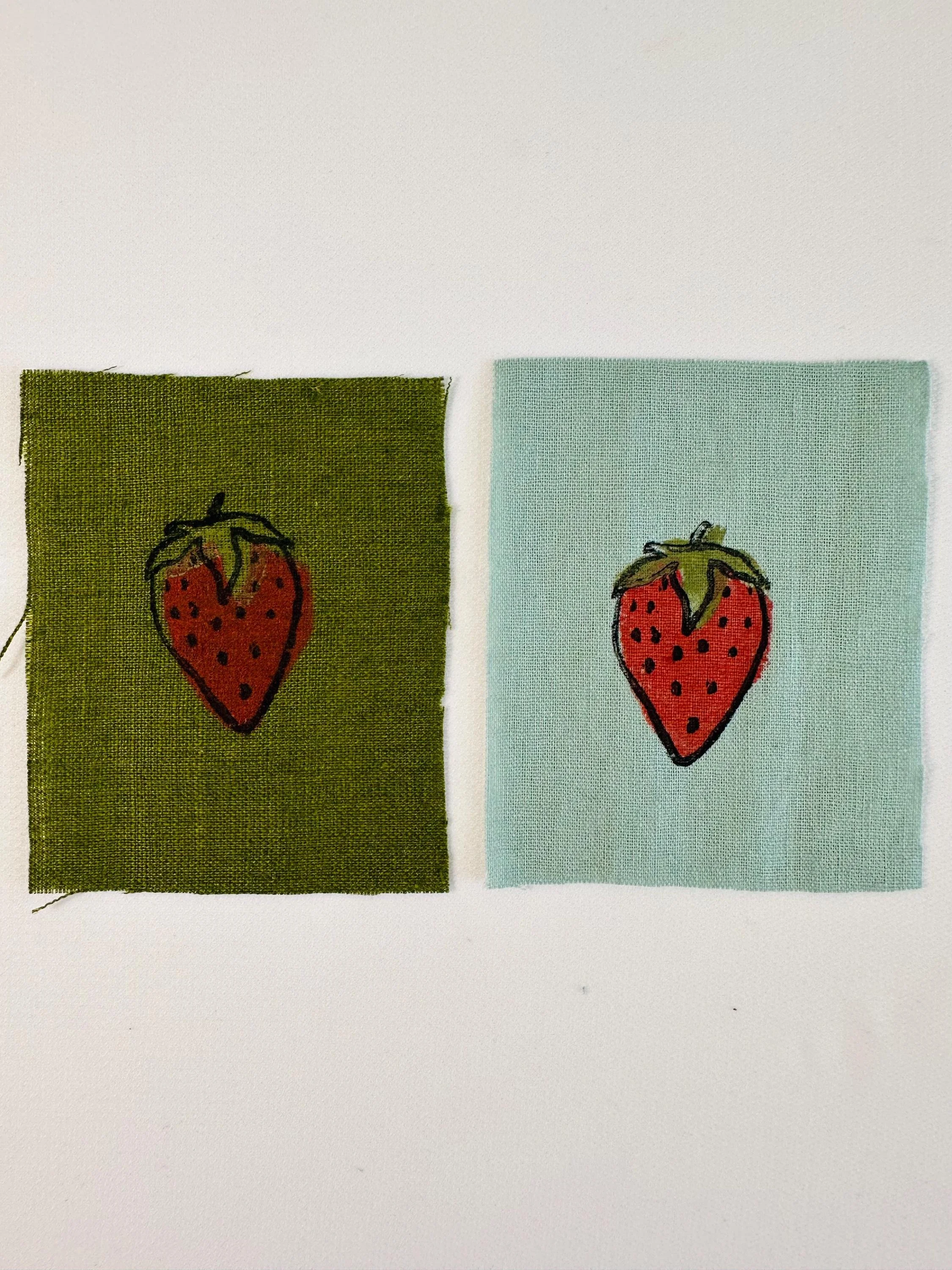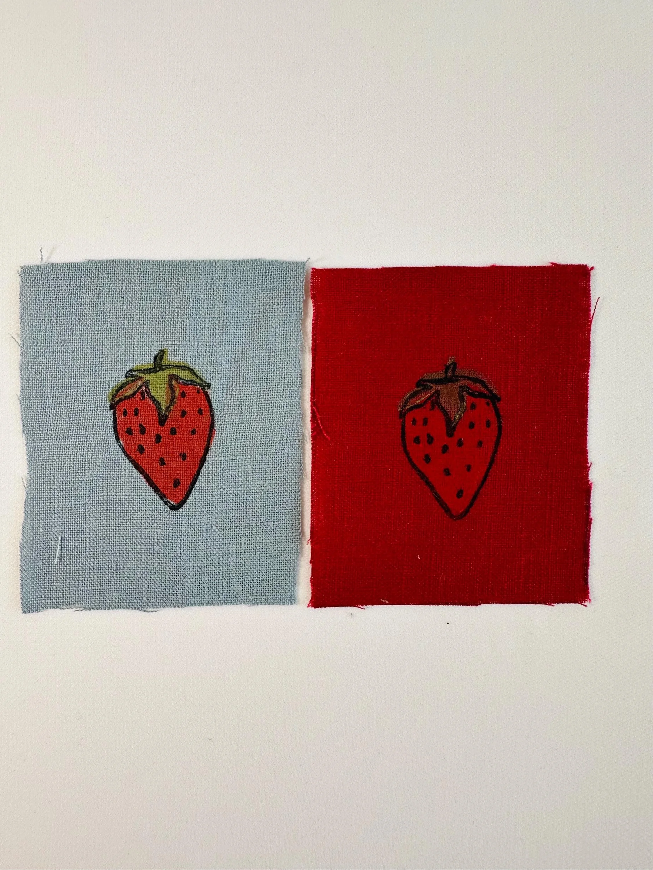 Linen patches, strawberry , Lino print patches, fabric patch, clothing patch, quilting, textile crafts, cottage core