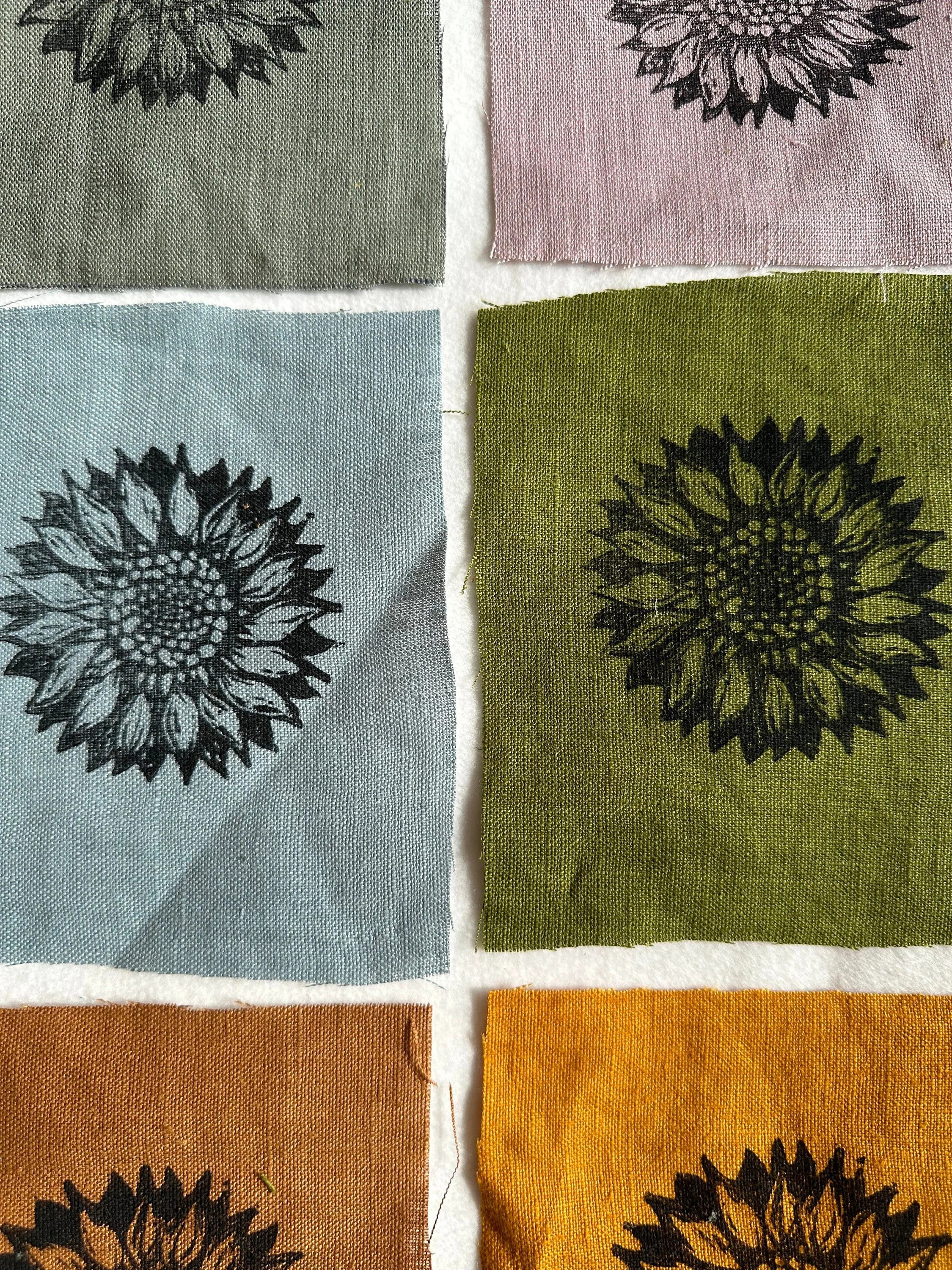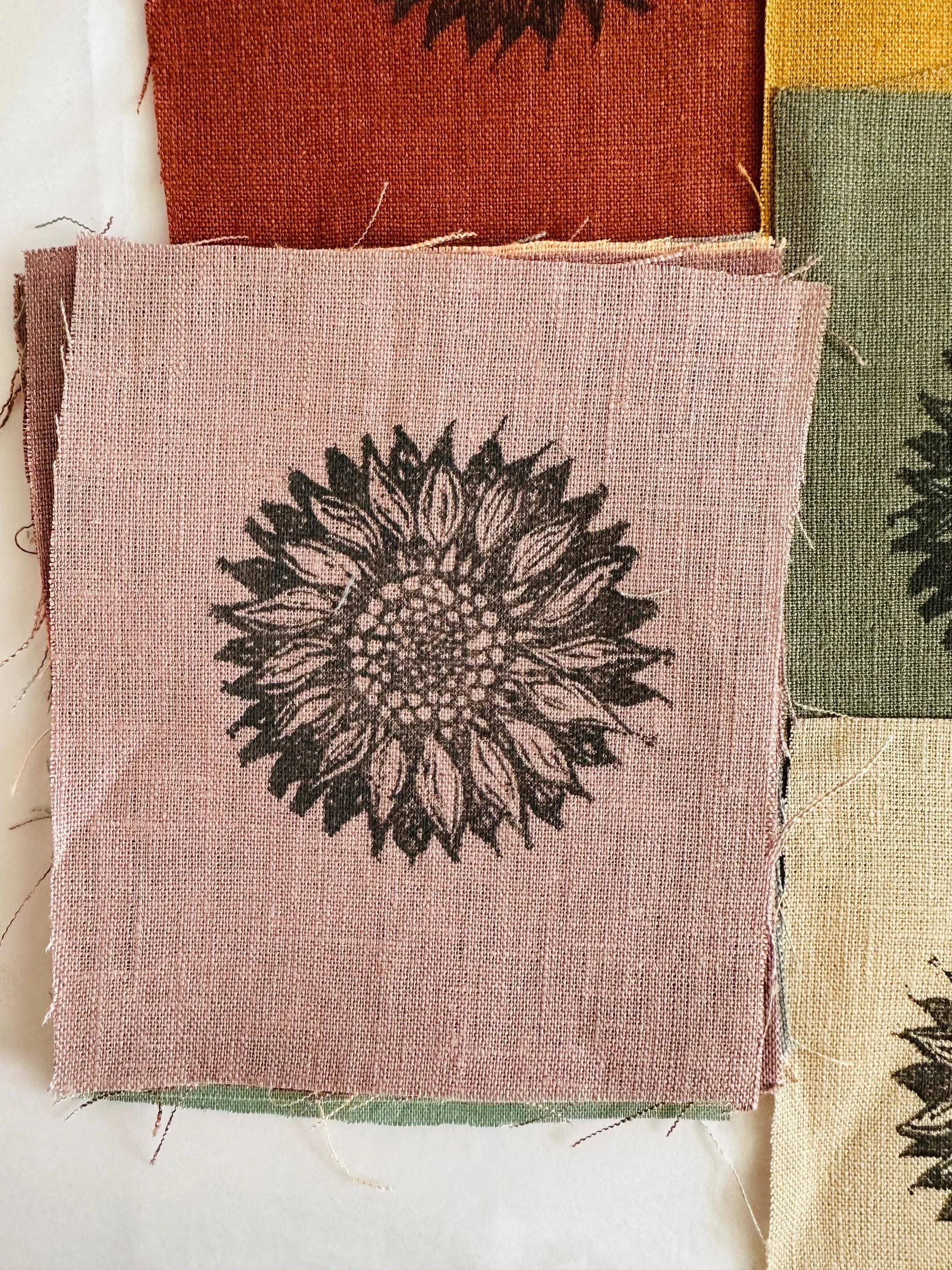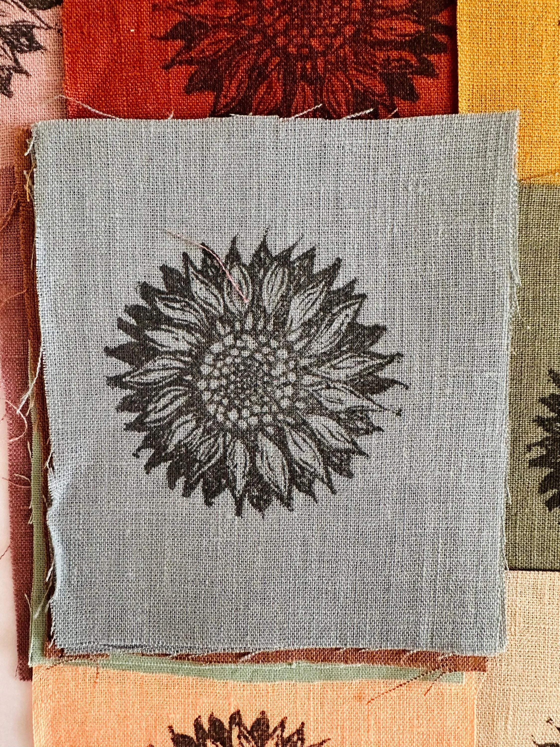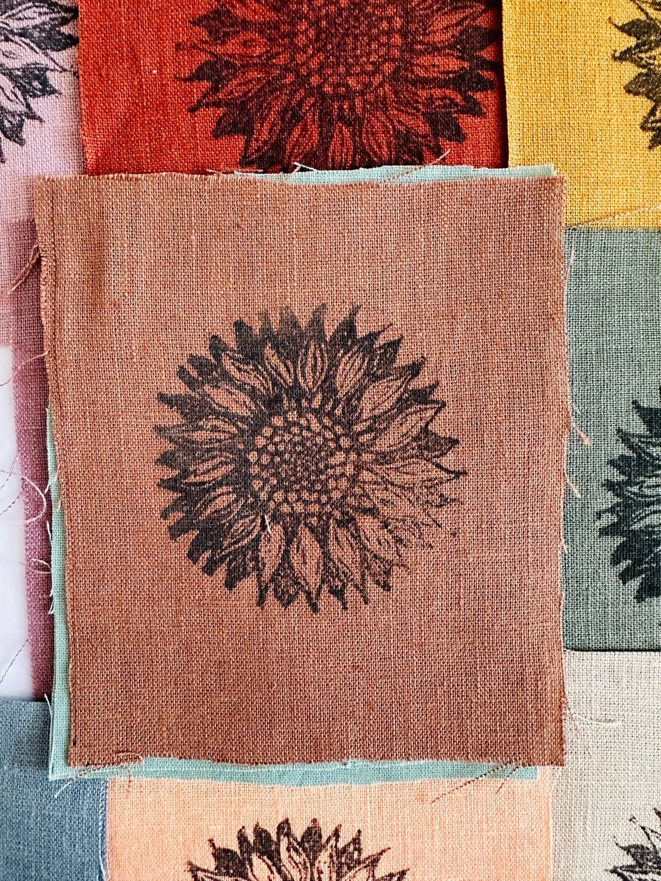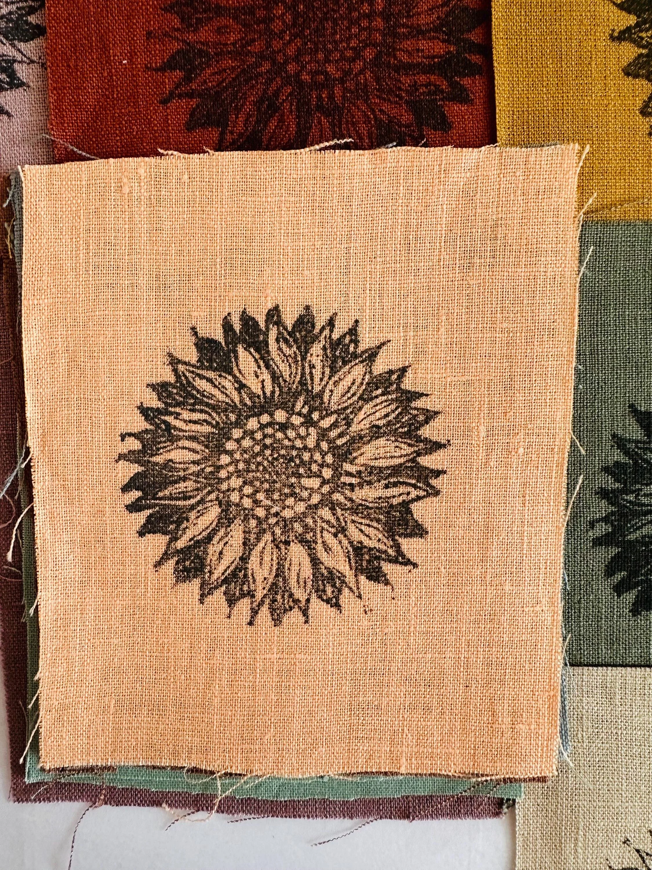 Linen patches, sunflower Lino print patches, fabric patch, clothing patch, quilting, textile crafts, cottage core