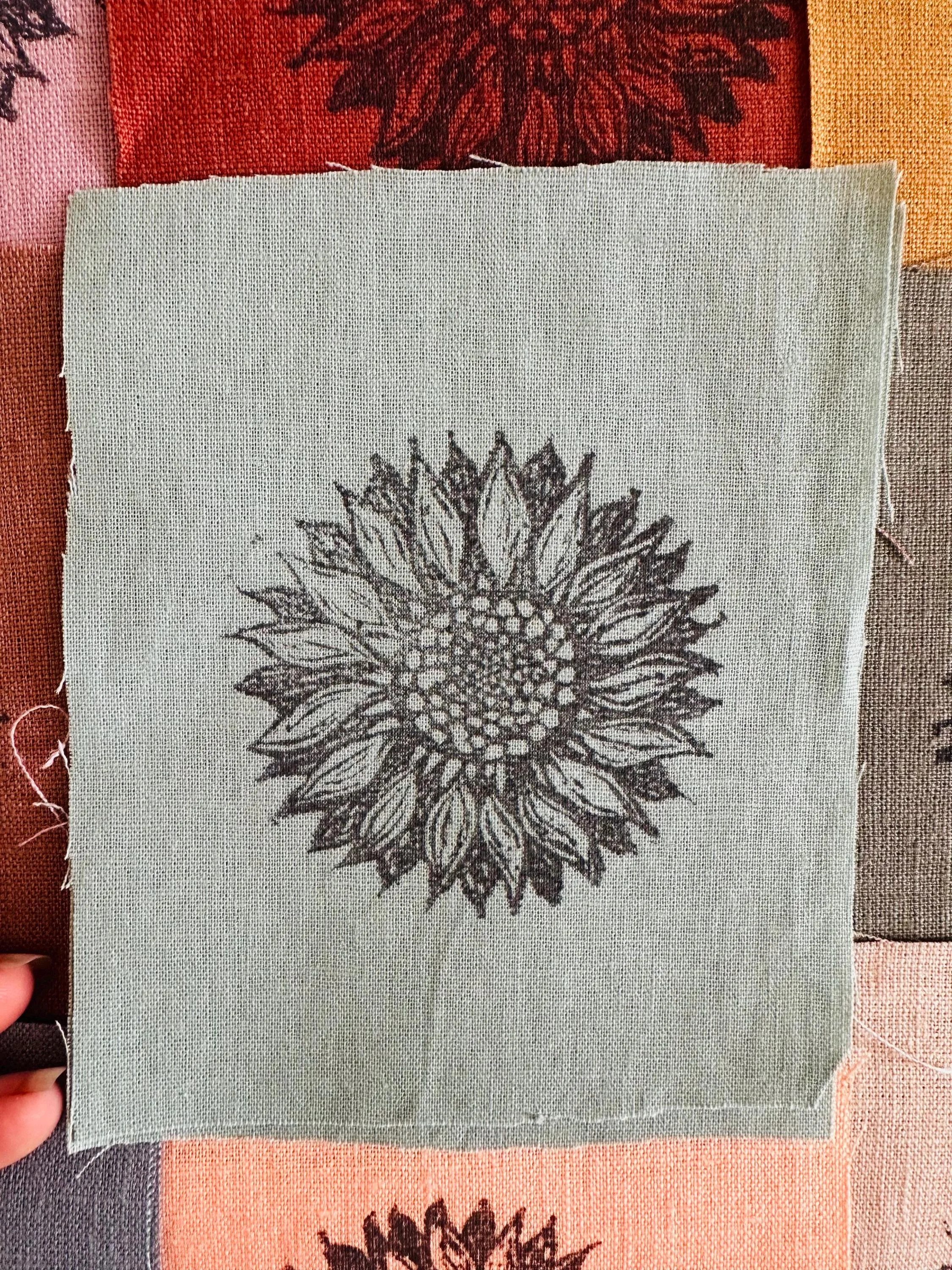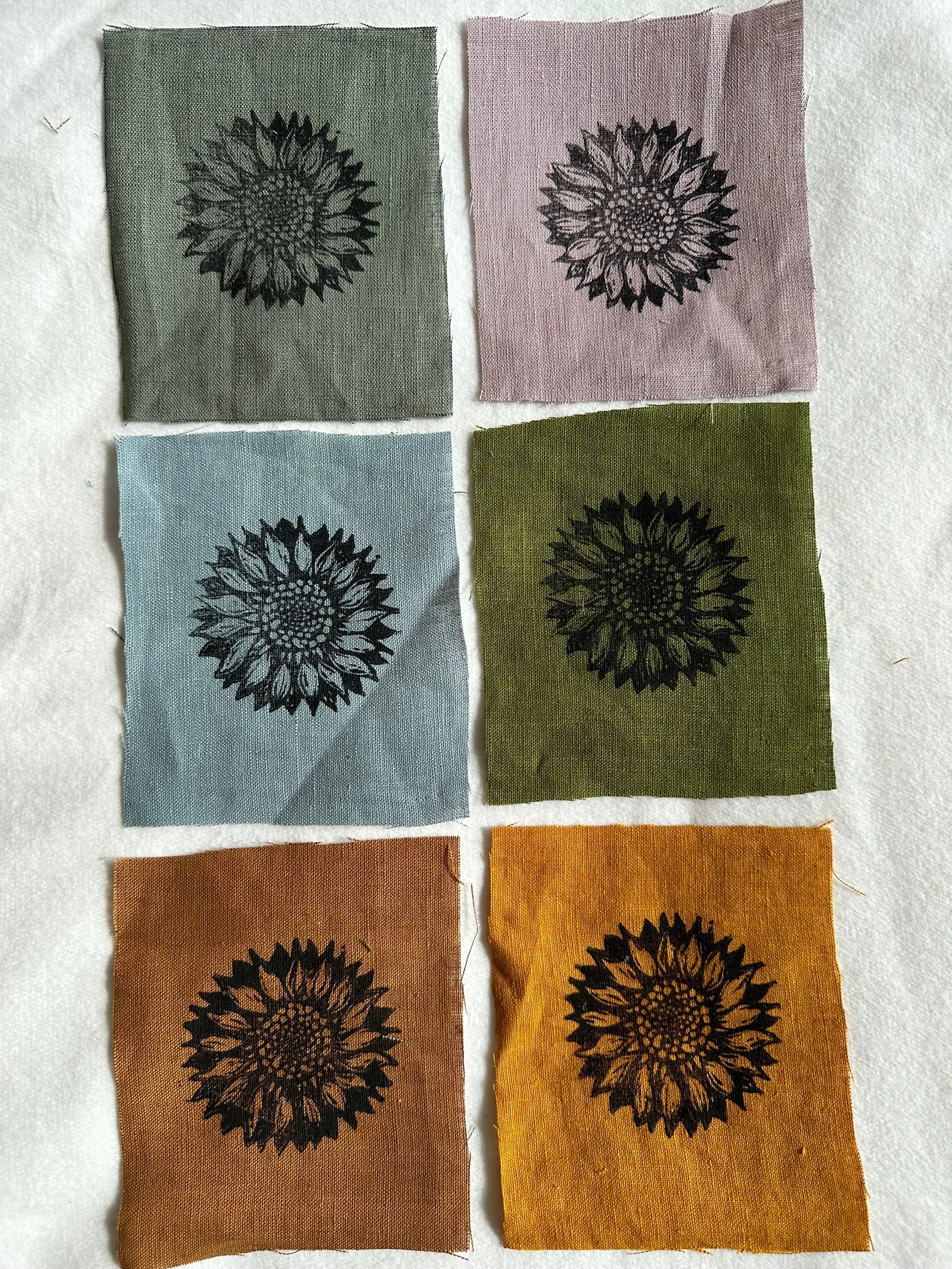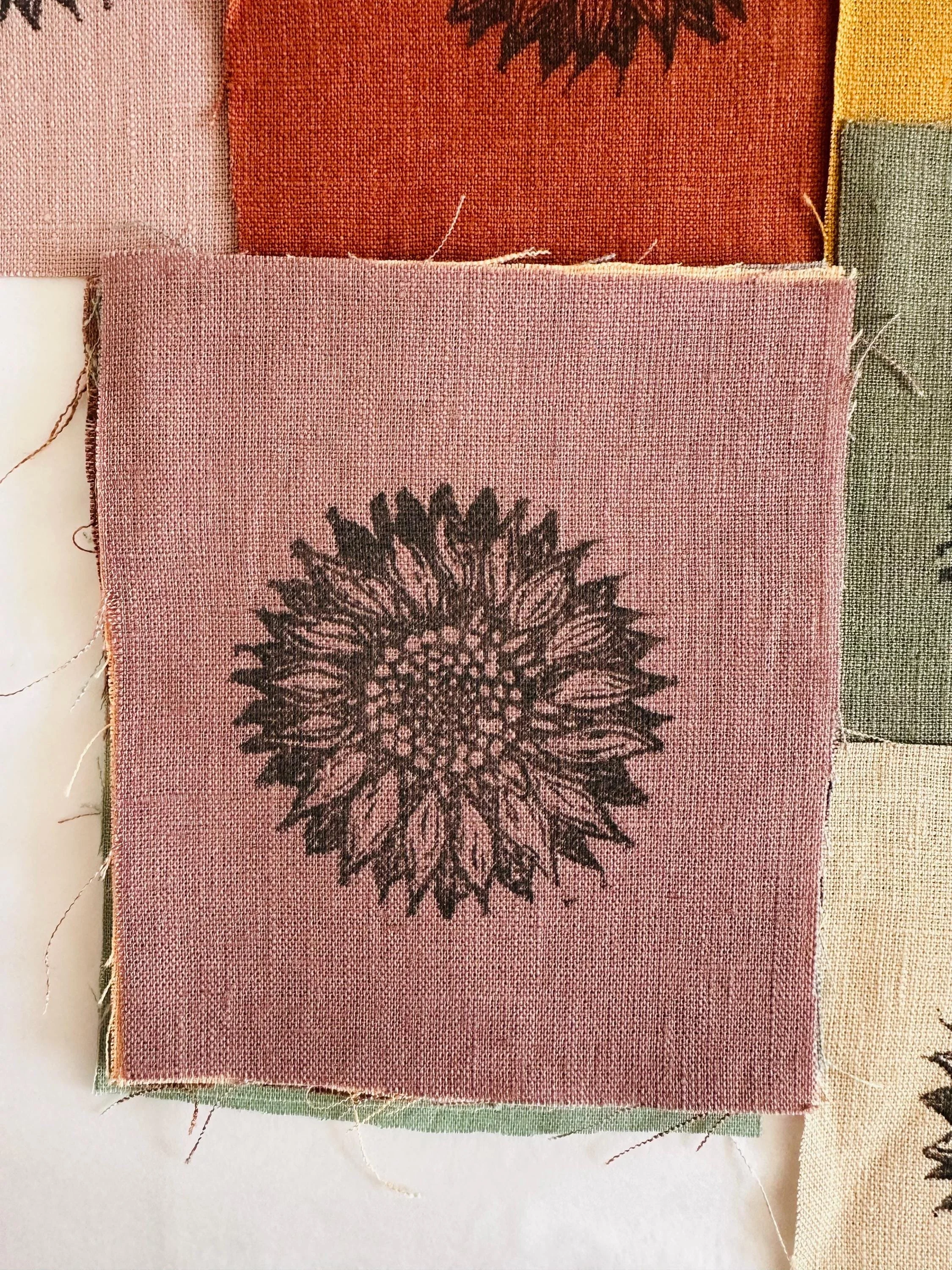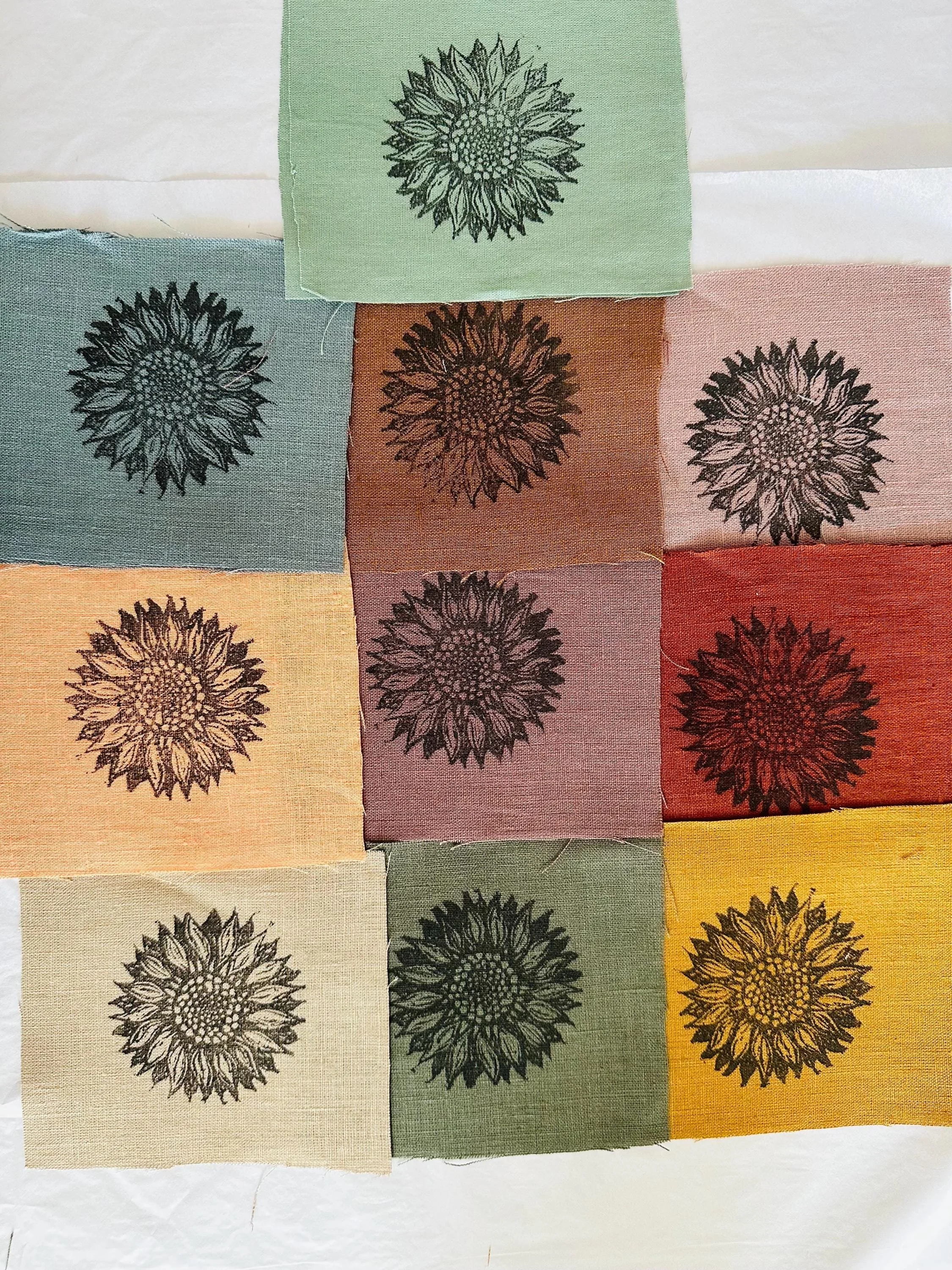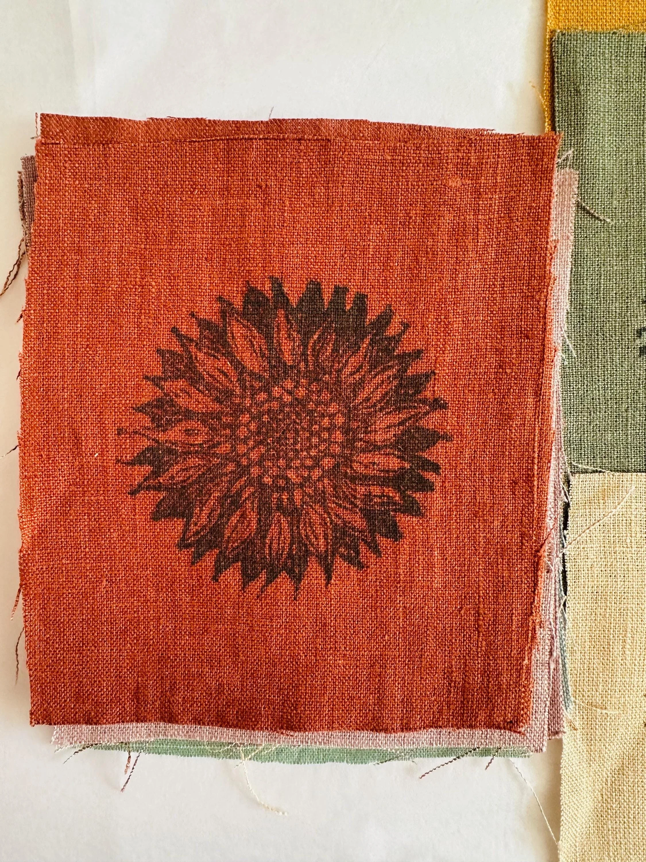 Linen patches, sunflower Lino print patches, fabric patch, clothing patch, quilting, textile crafts, cottage core