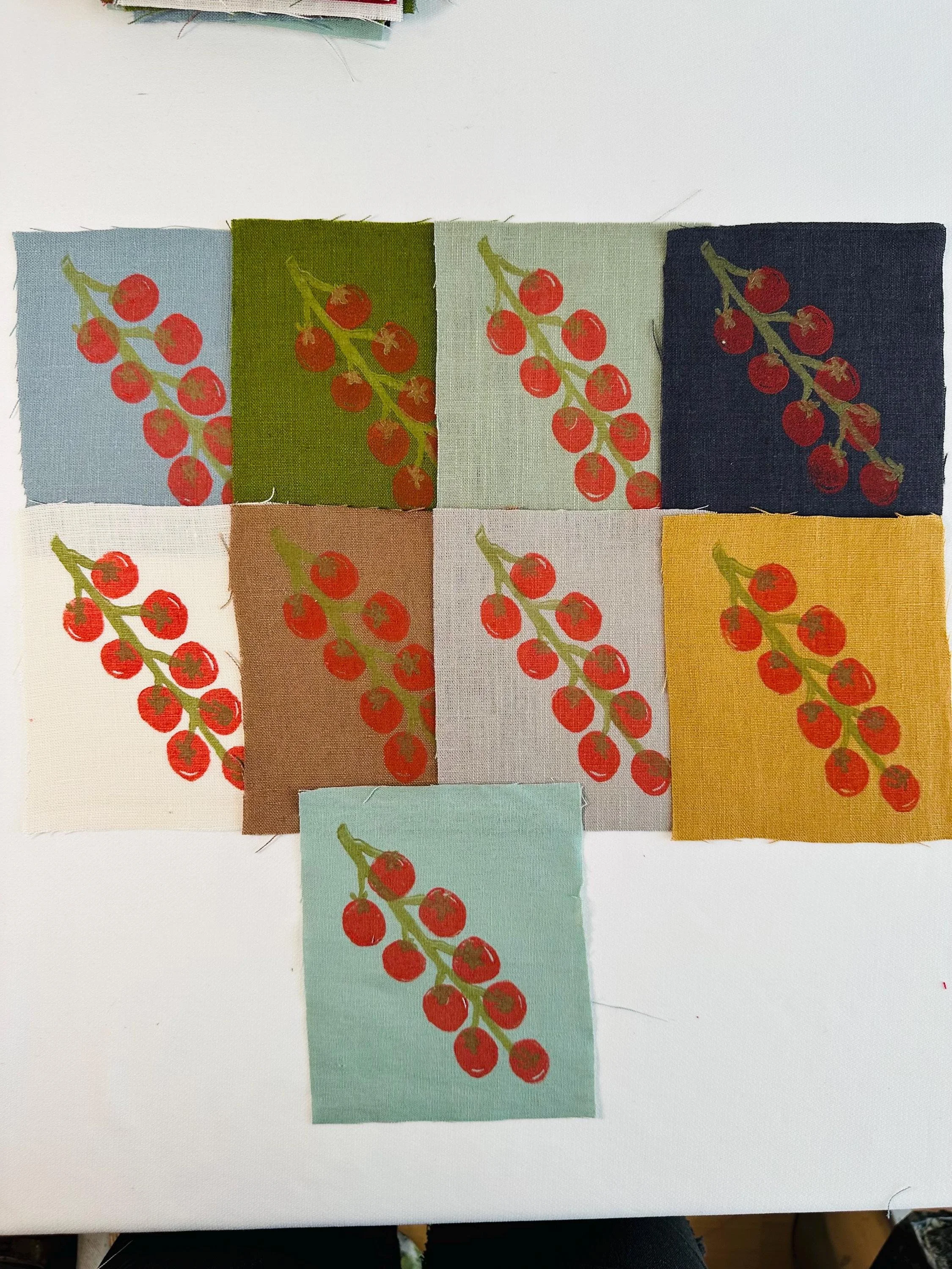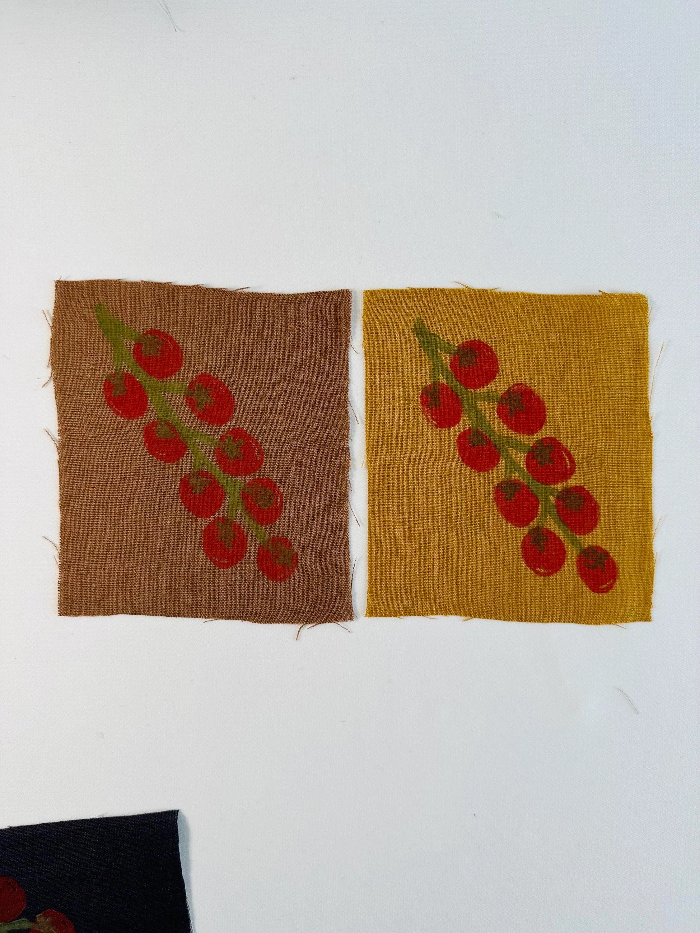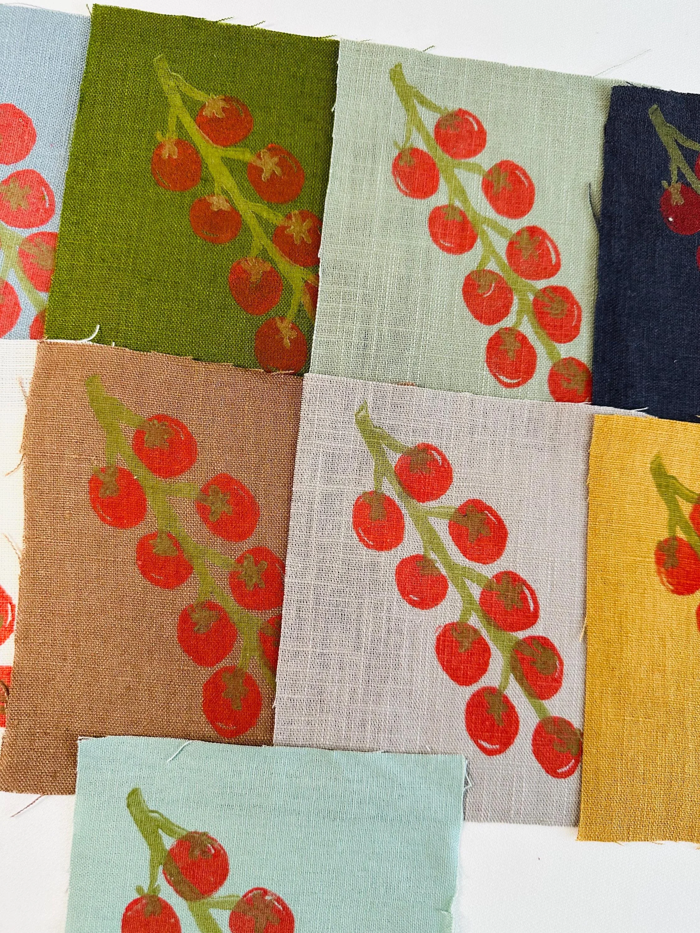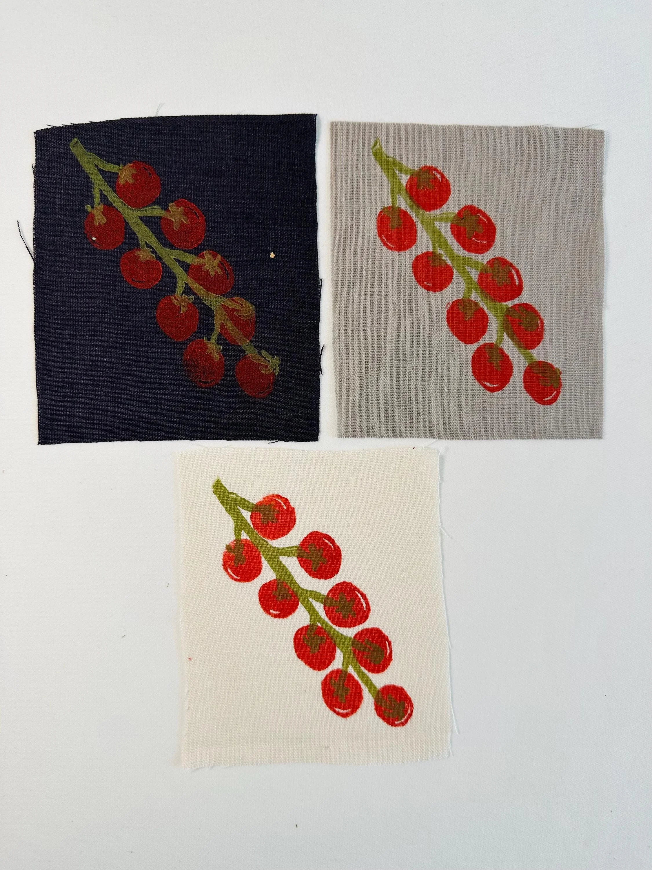 Linen patches, tomato Lino print patches, fabric patch, clothing patch, quilting, textile crafts, cottage core
