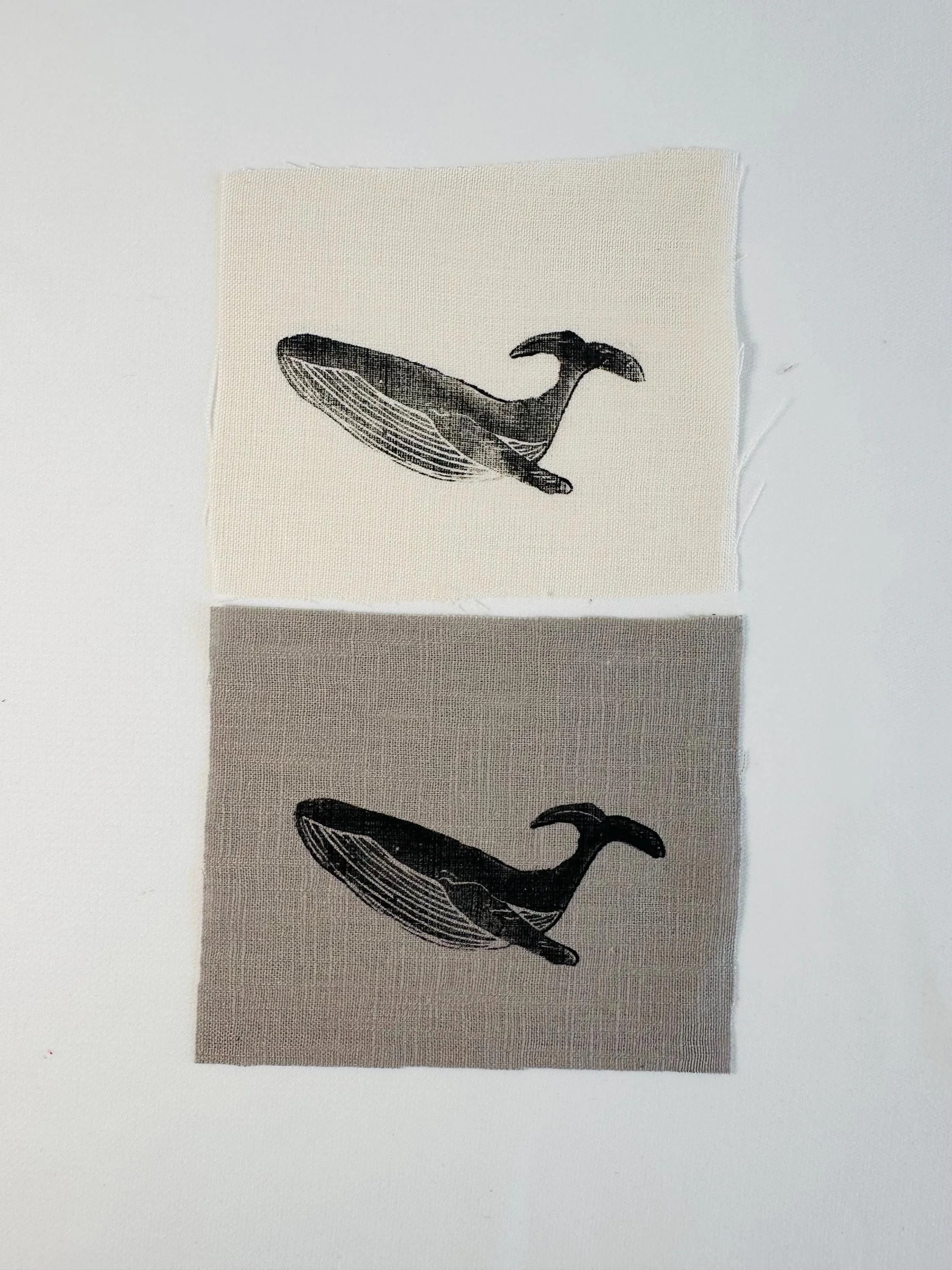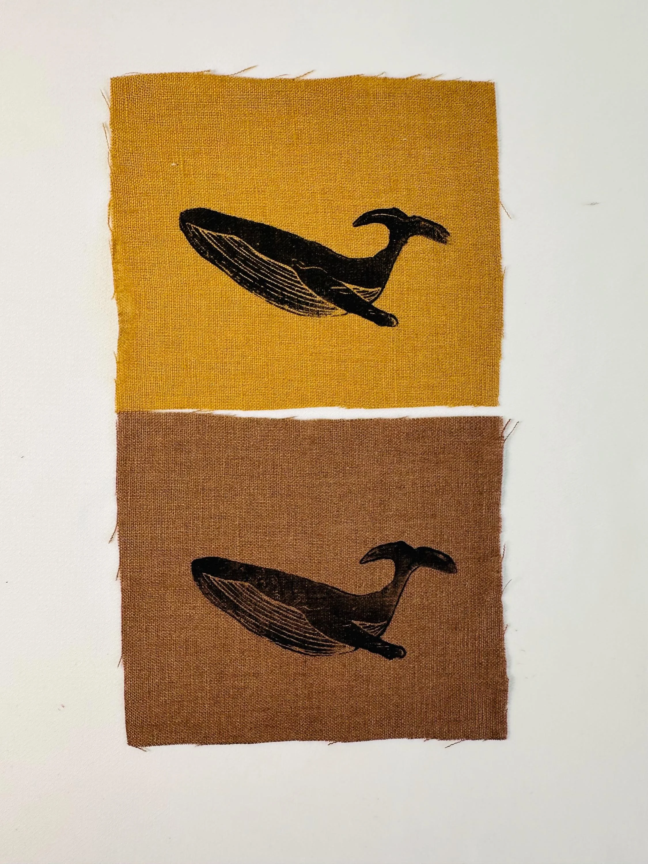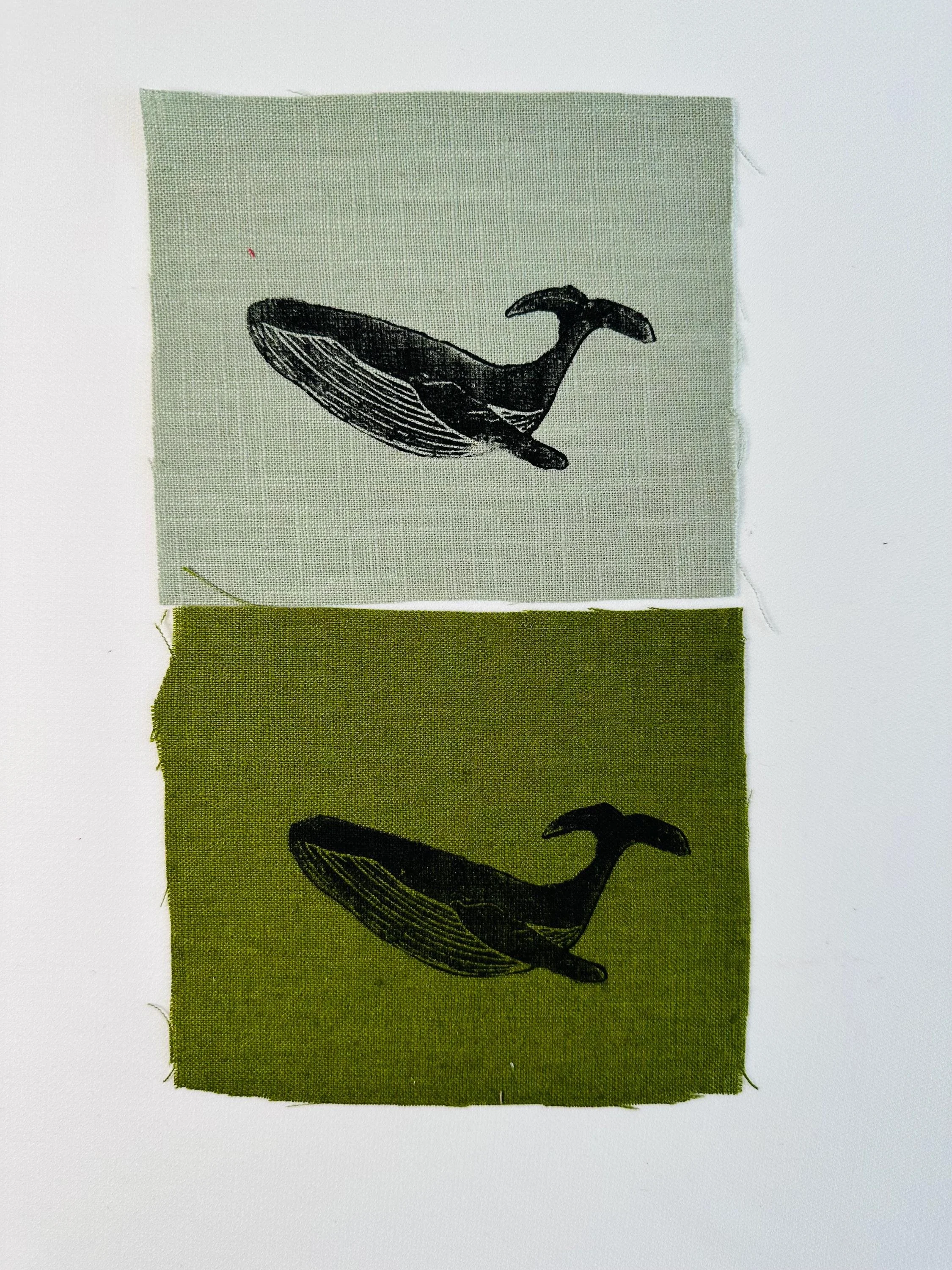 Linen patches, whale Lino print patches, fabric patch, clothing patch, quilting, textile crafts, cottage core