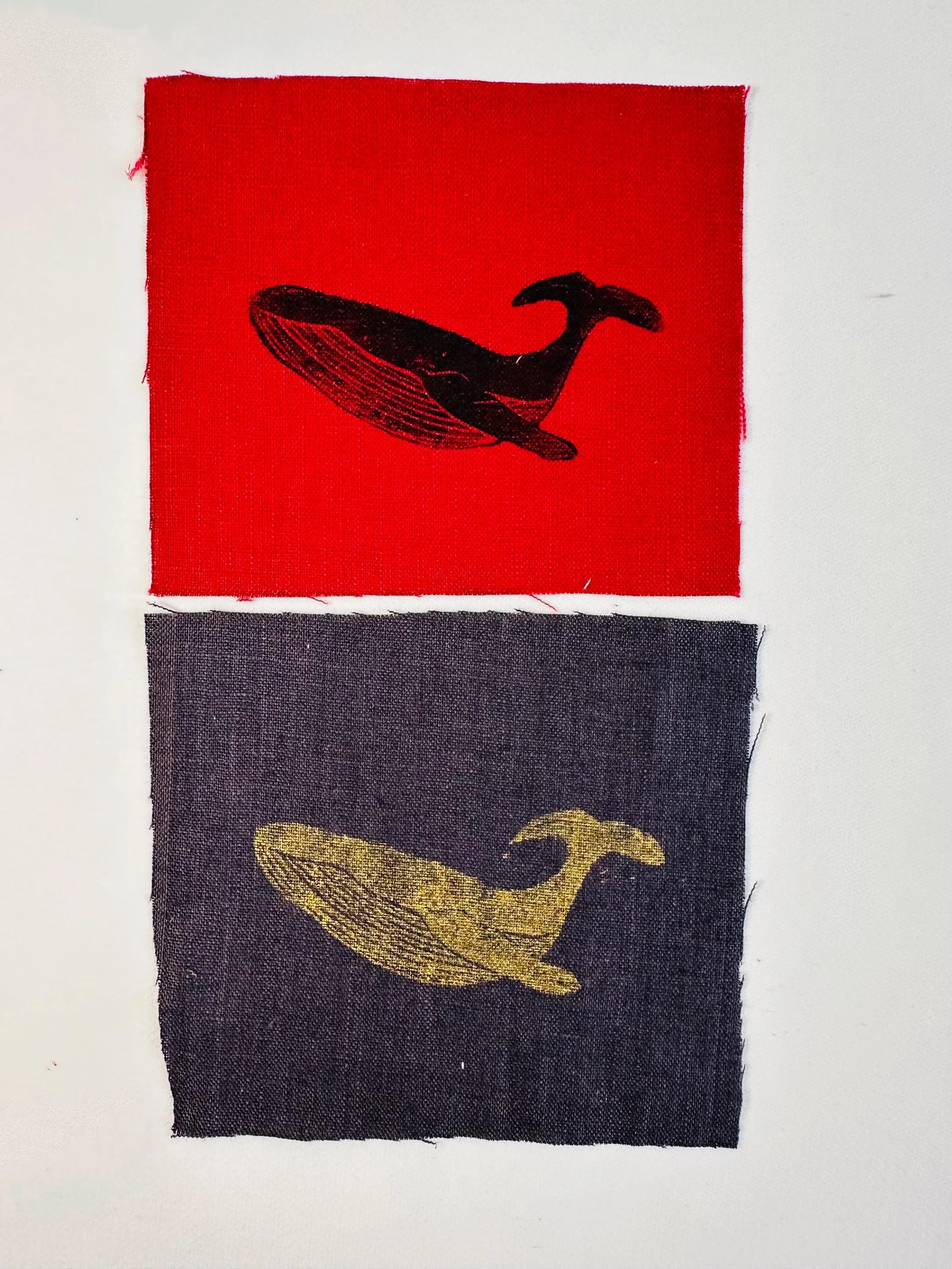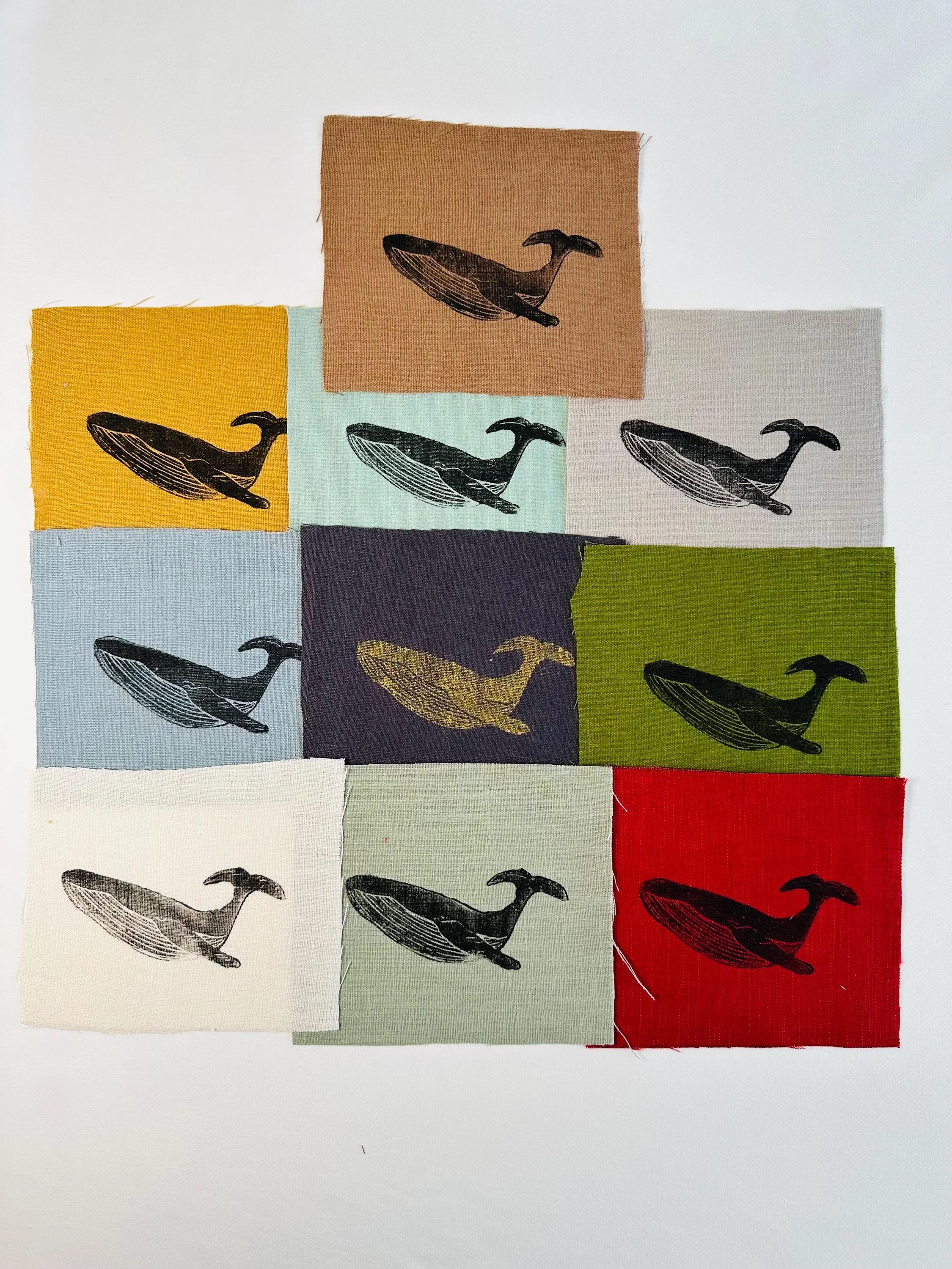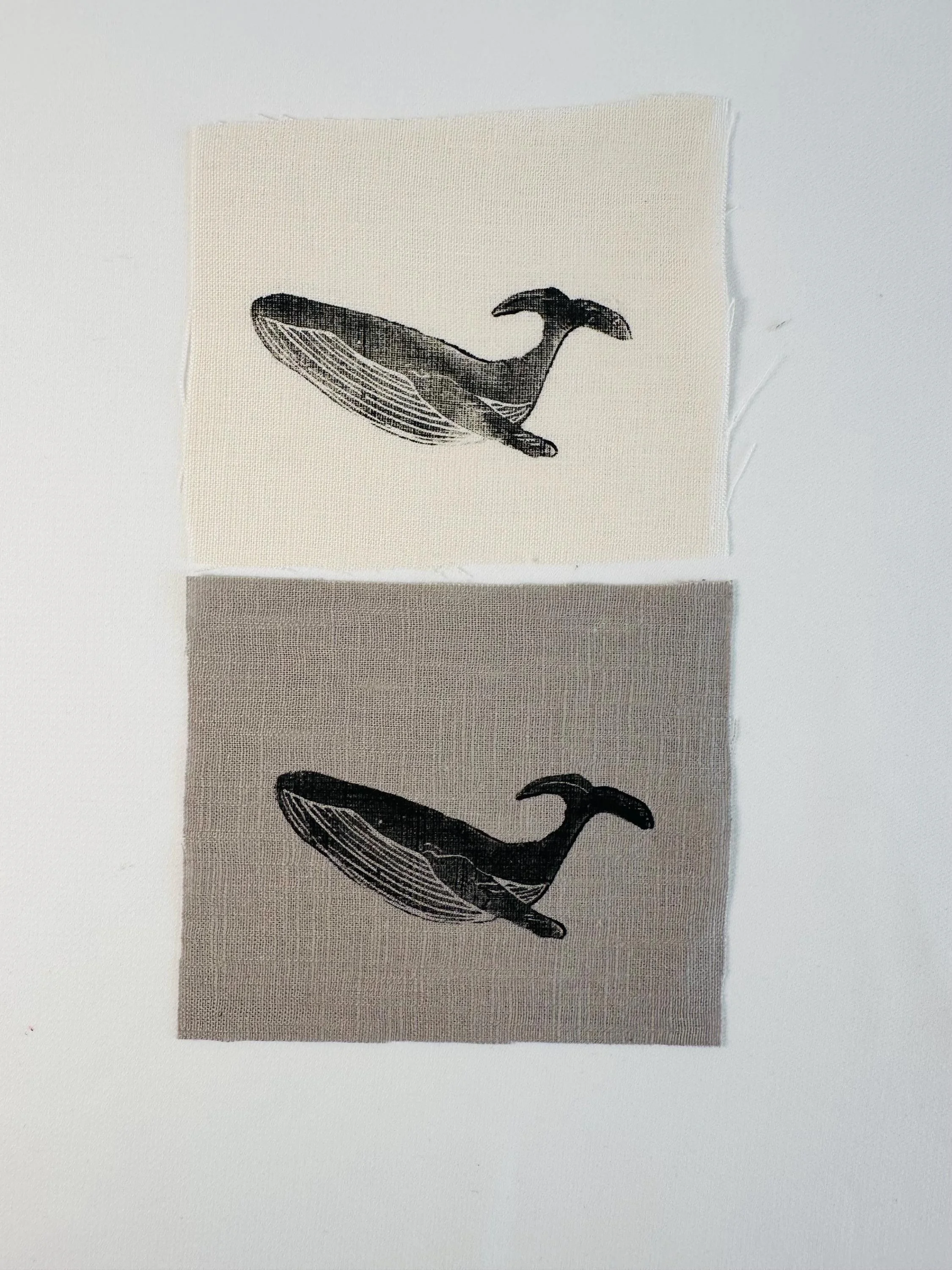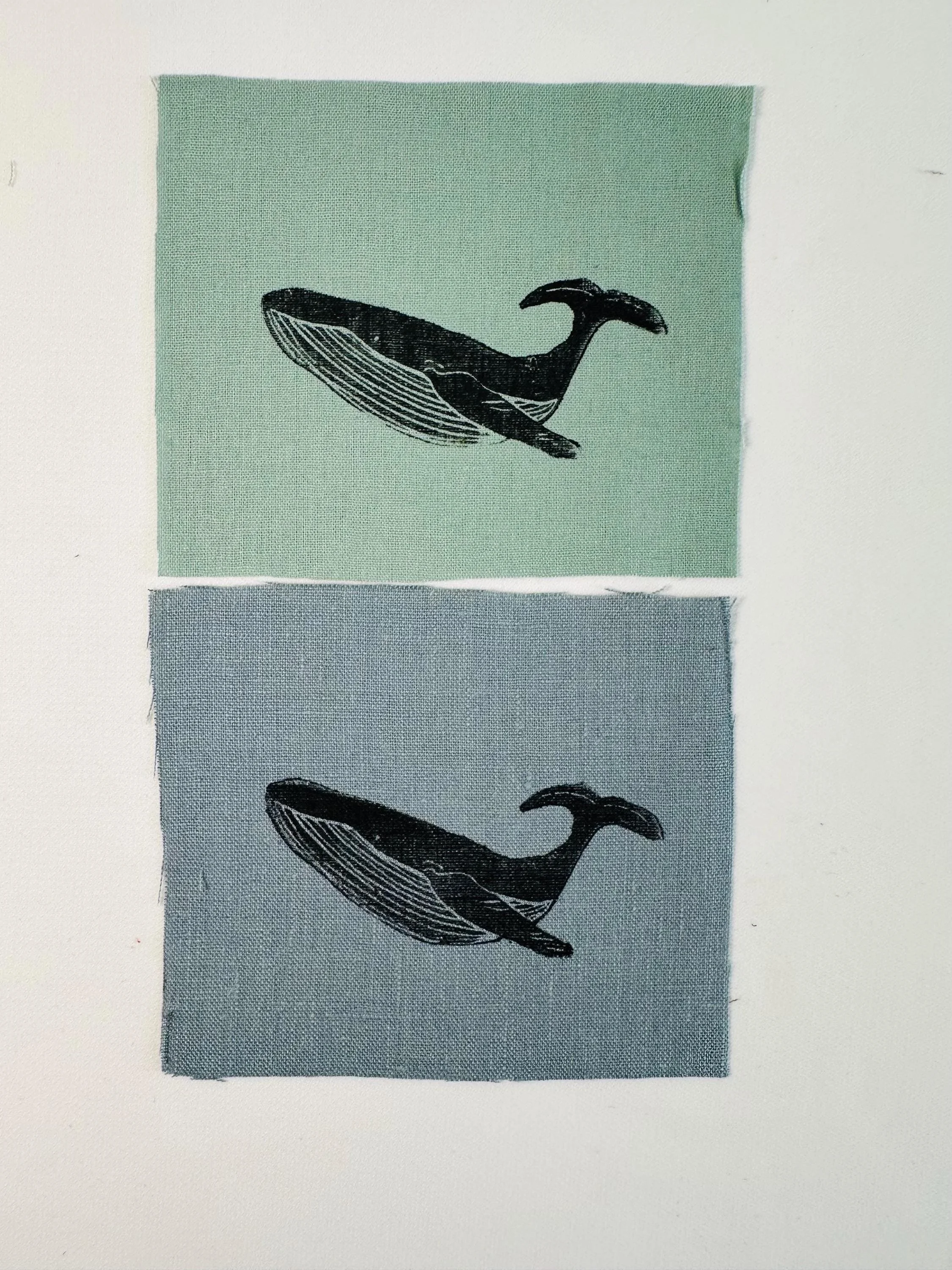 Linen patches, whale Lino print patches, fabric patch, clothing patch, quilting, textile crafts, cottage core