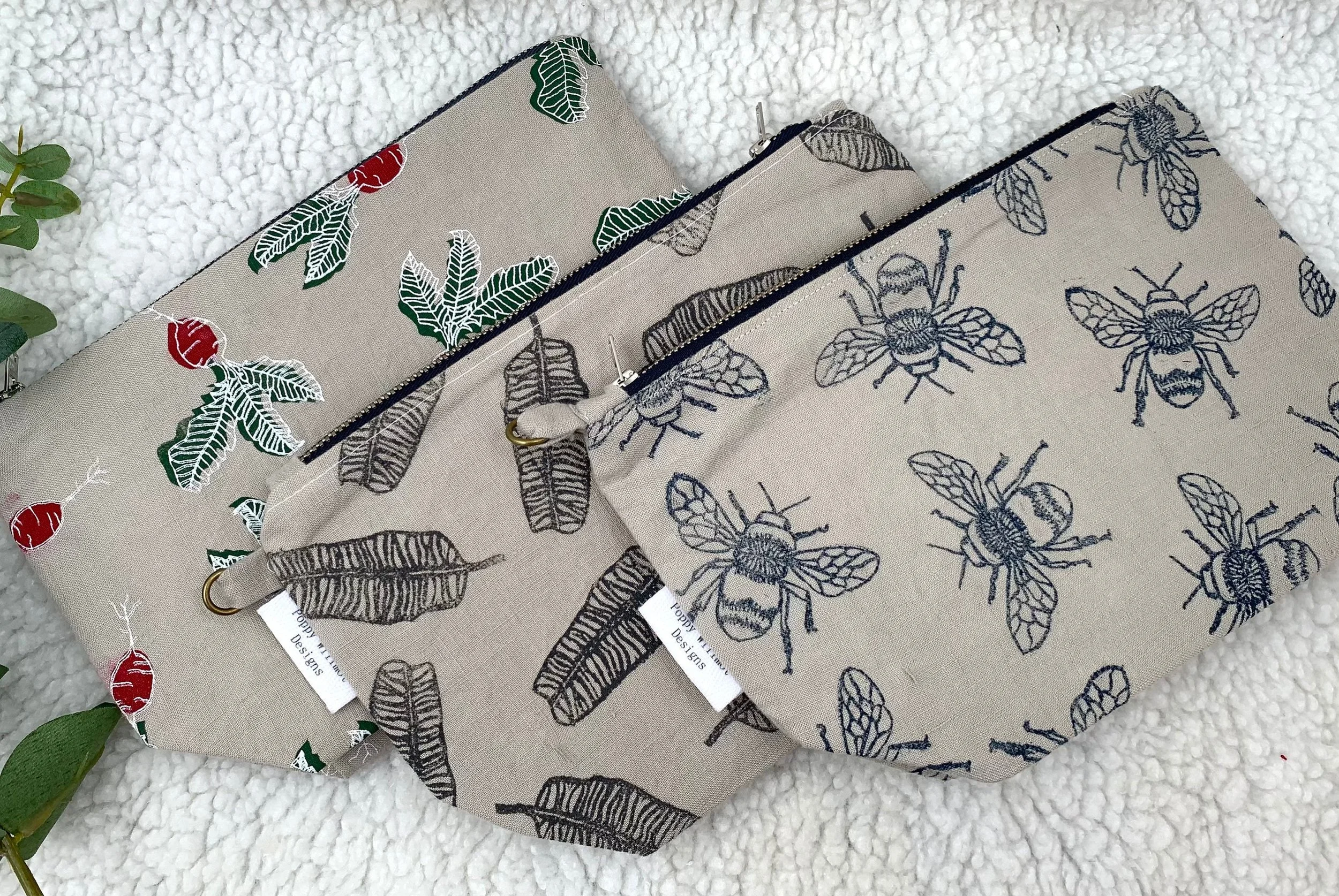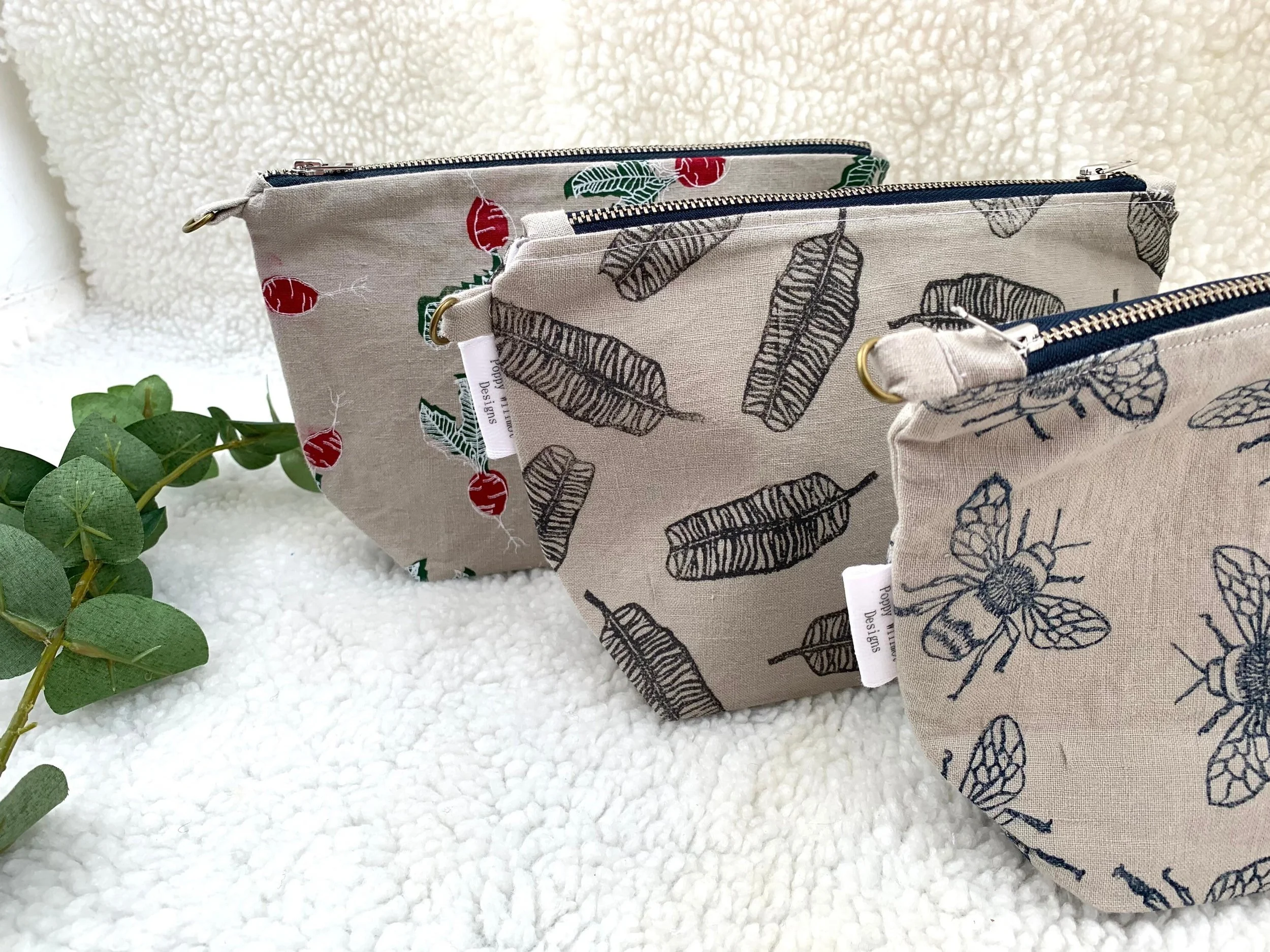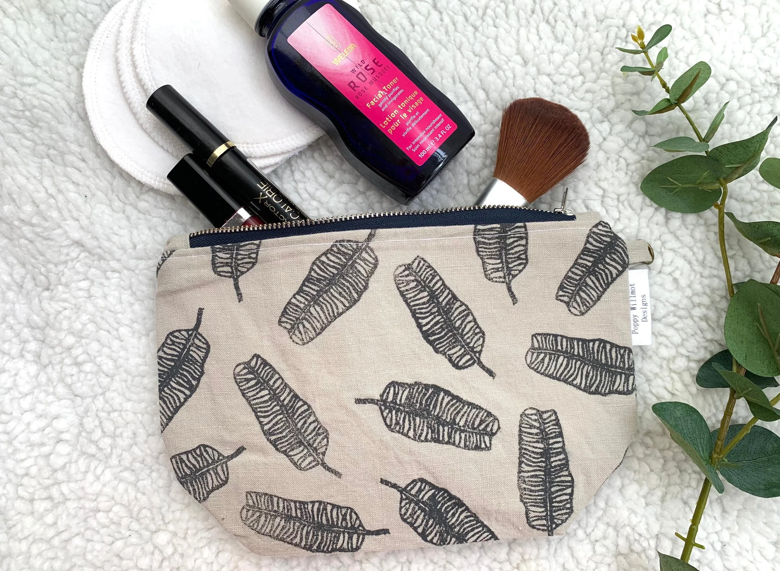 Perfect for organising those all important handbag essentials or for using as a large purse. This useful pouch is made from pure, soft washed linen and features a hand printed design from our collection.